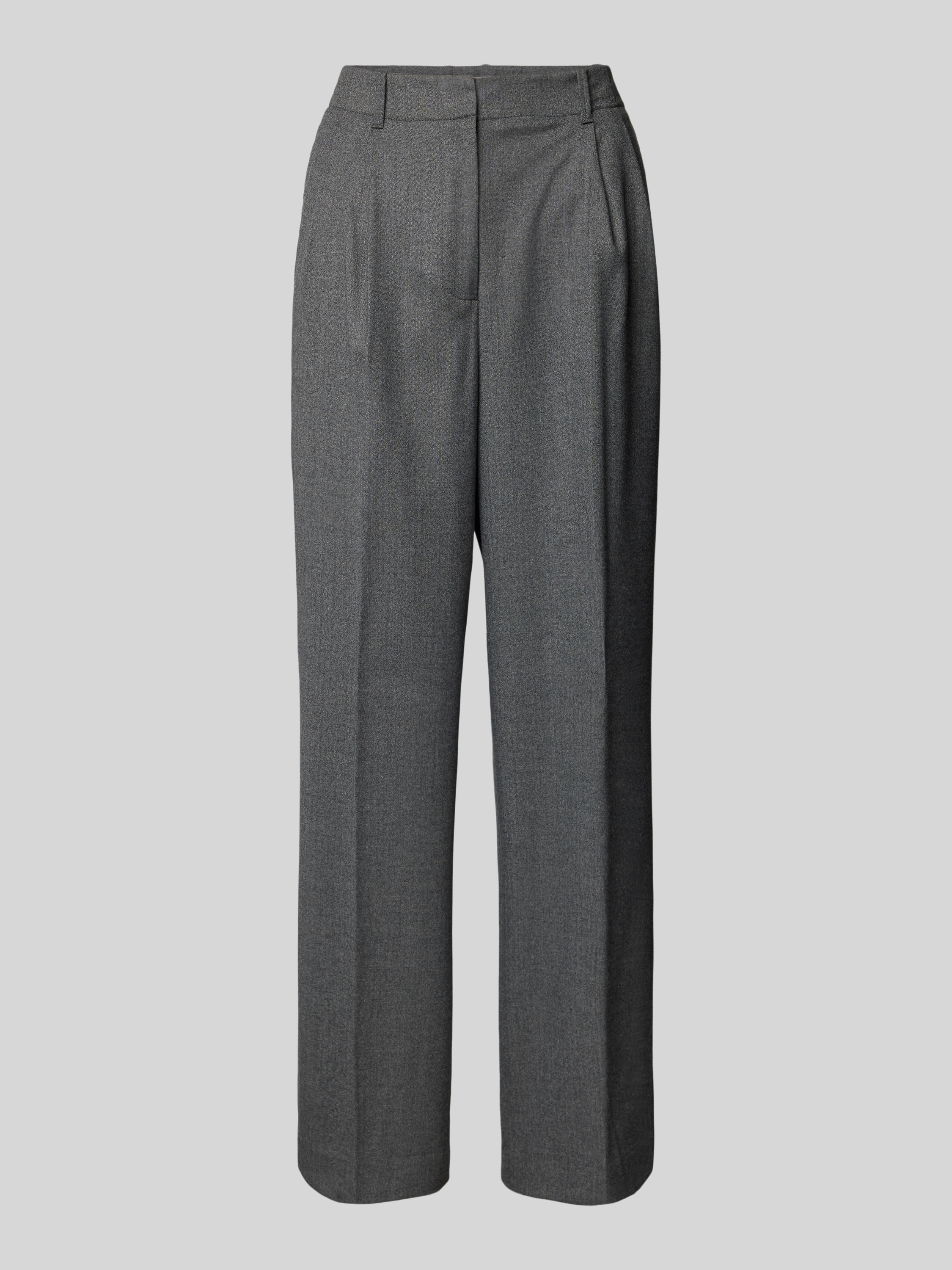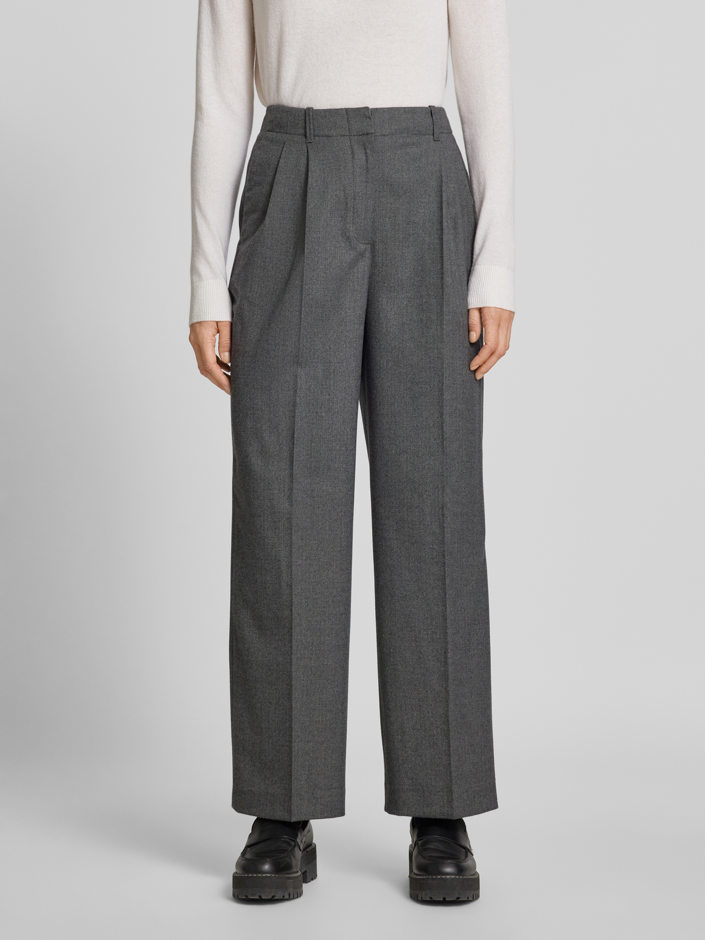 Wide leg wollen broek met bandplooien in lichtgrijs