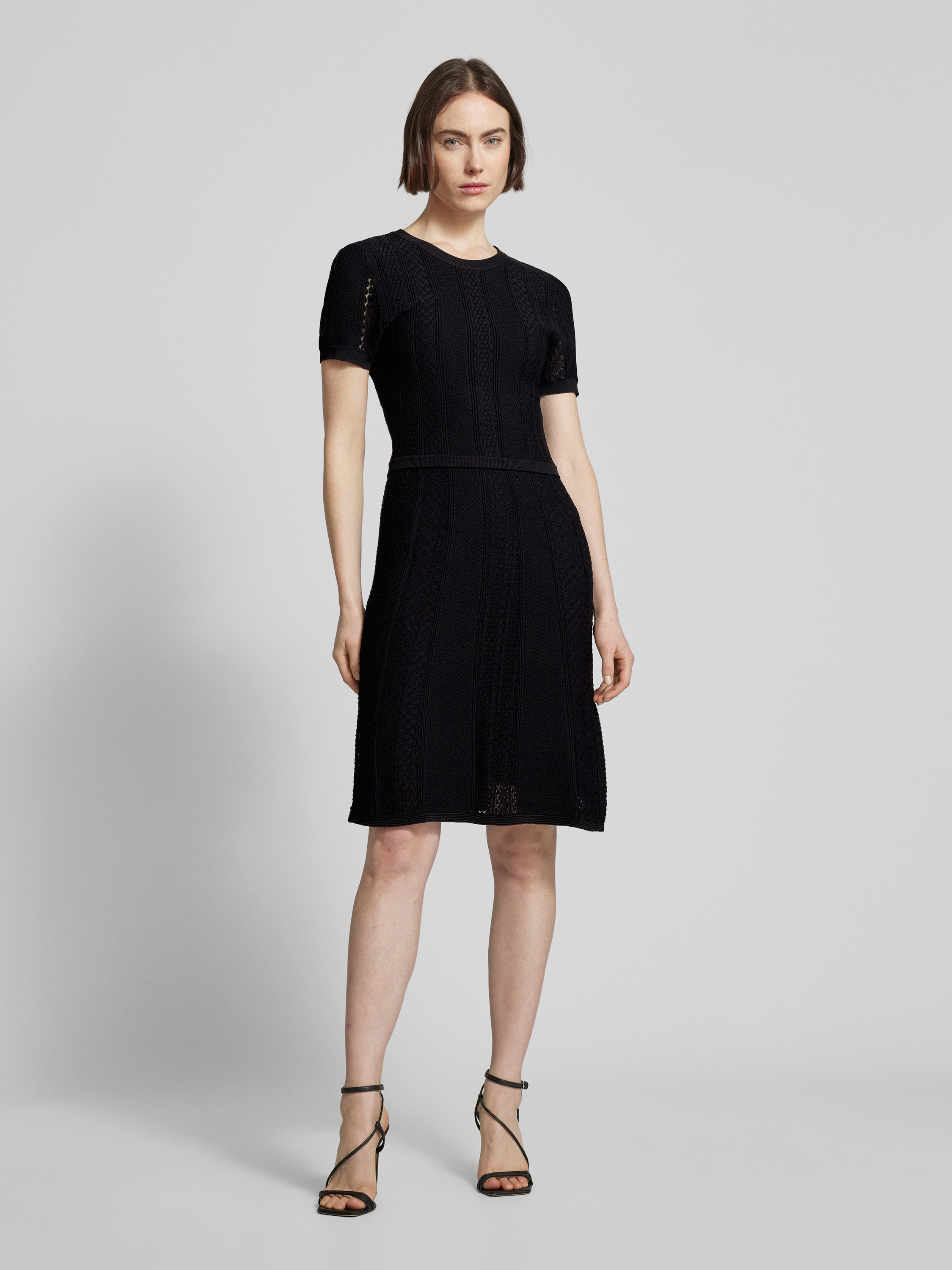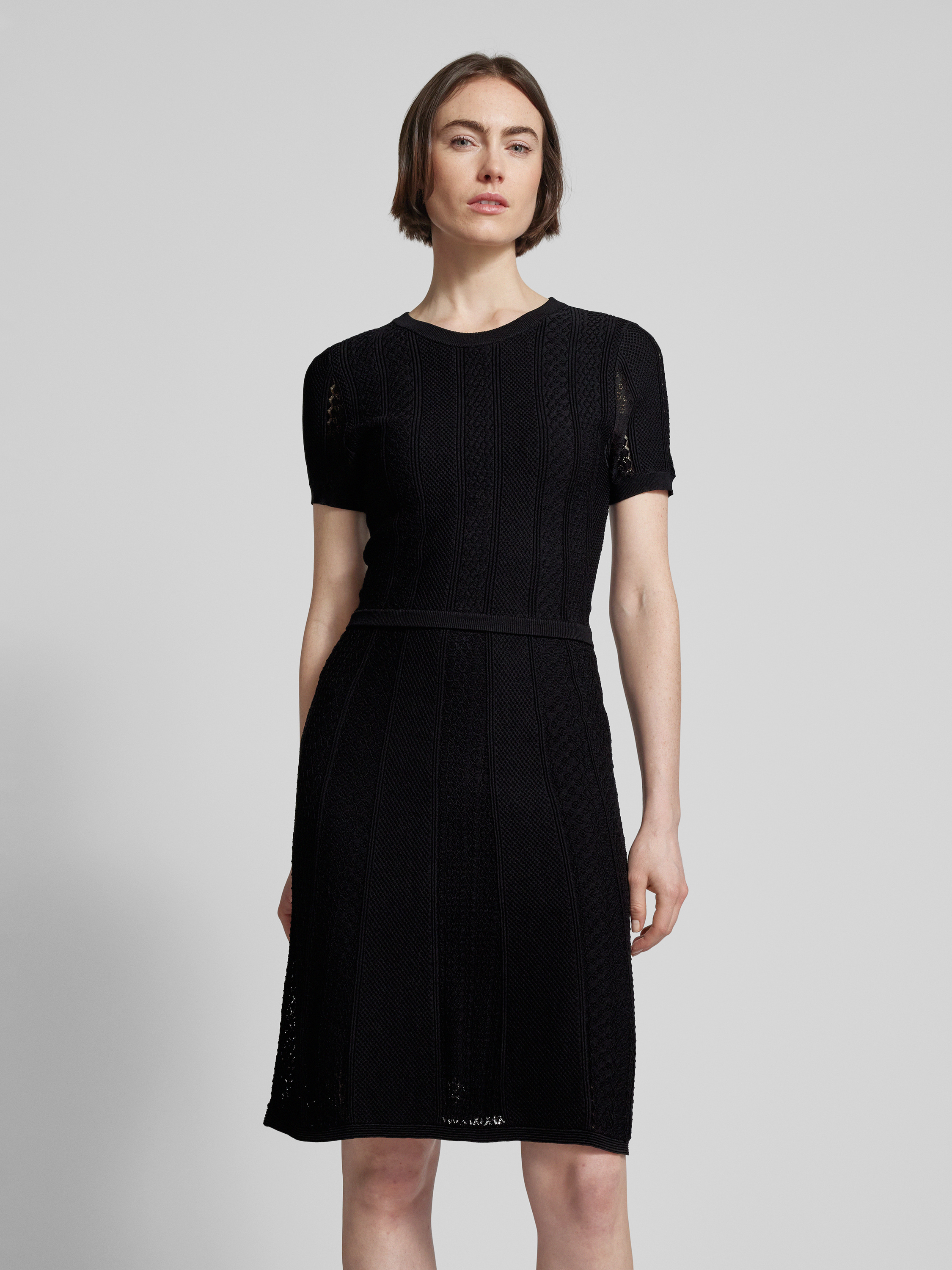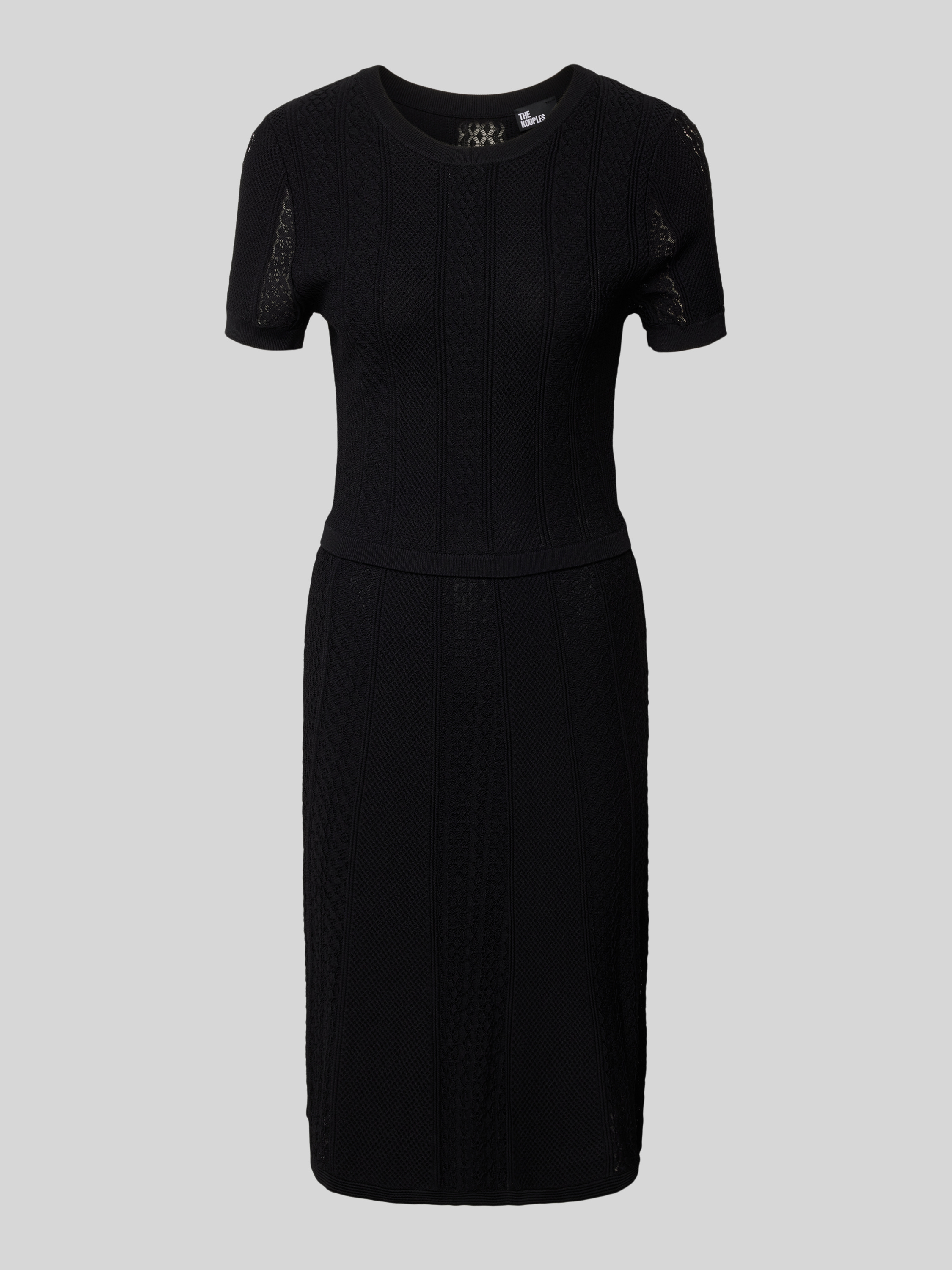 Knielange gebreide jurk met structuurmotief in zwart