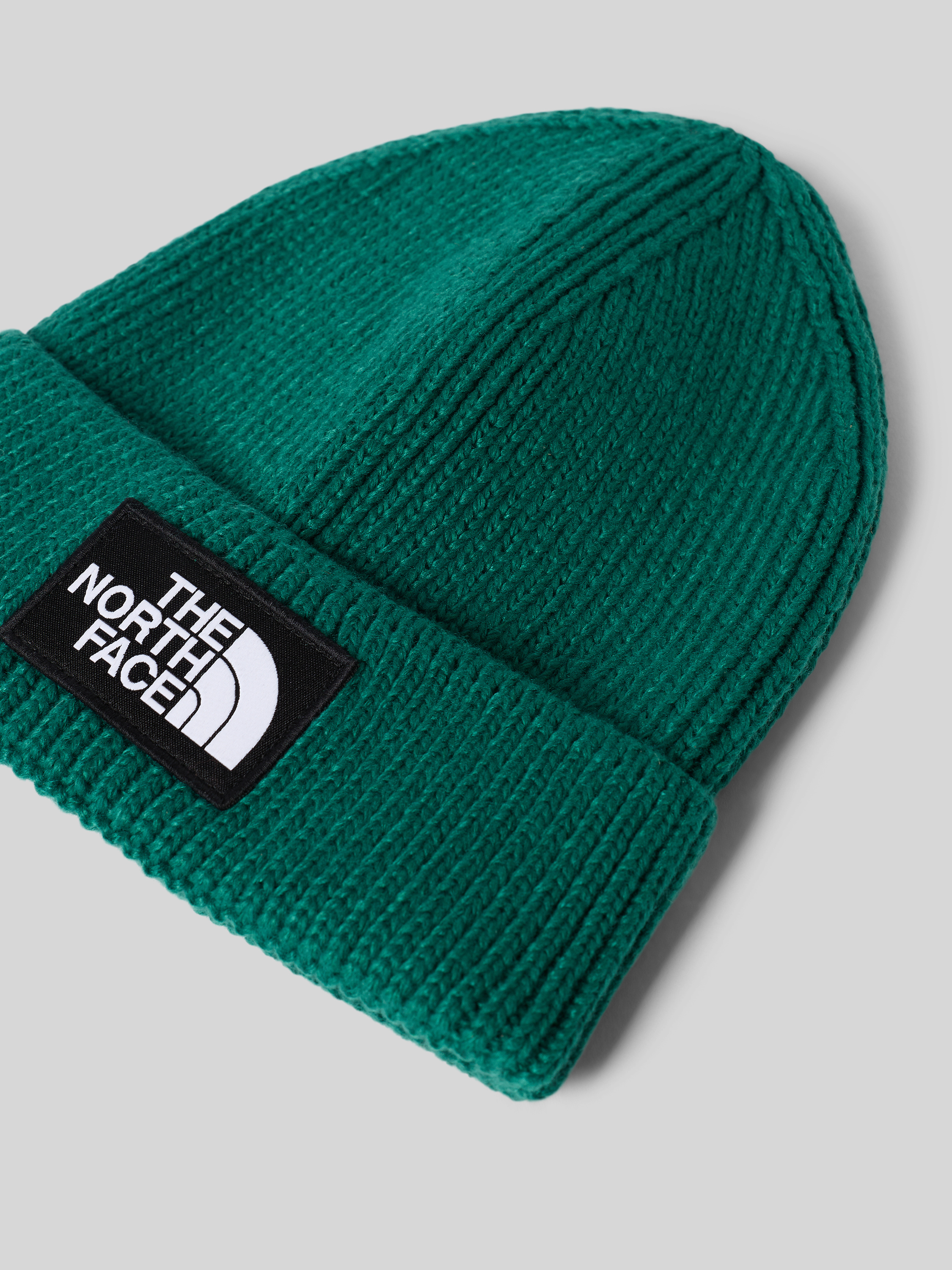 Beanie in gebreide look met logopatch, model 'Box' in donkergroen