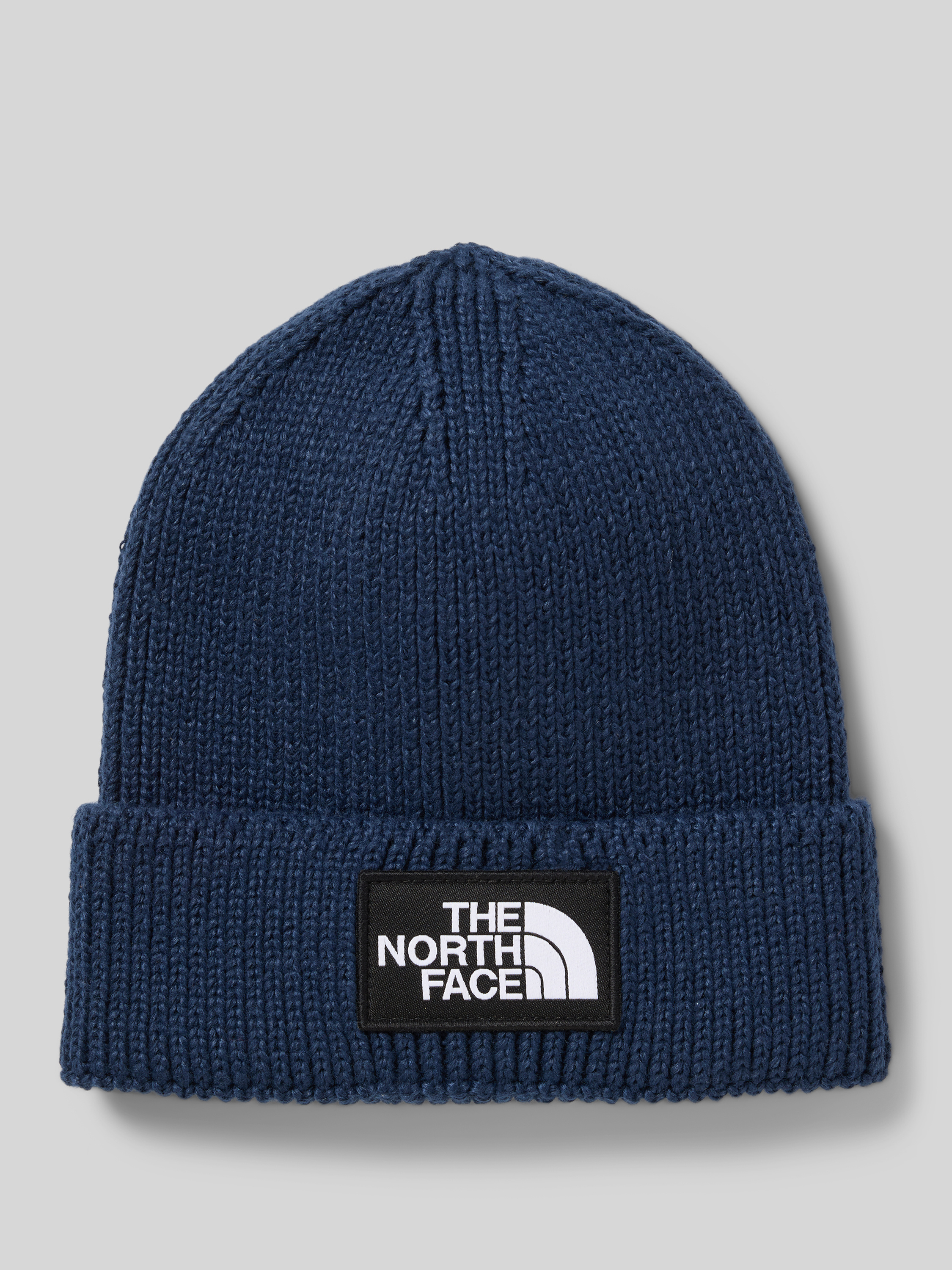 Beanie in gebreide look met logopatch, model 'Box' in marineblauw