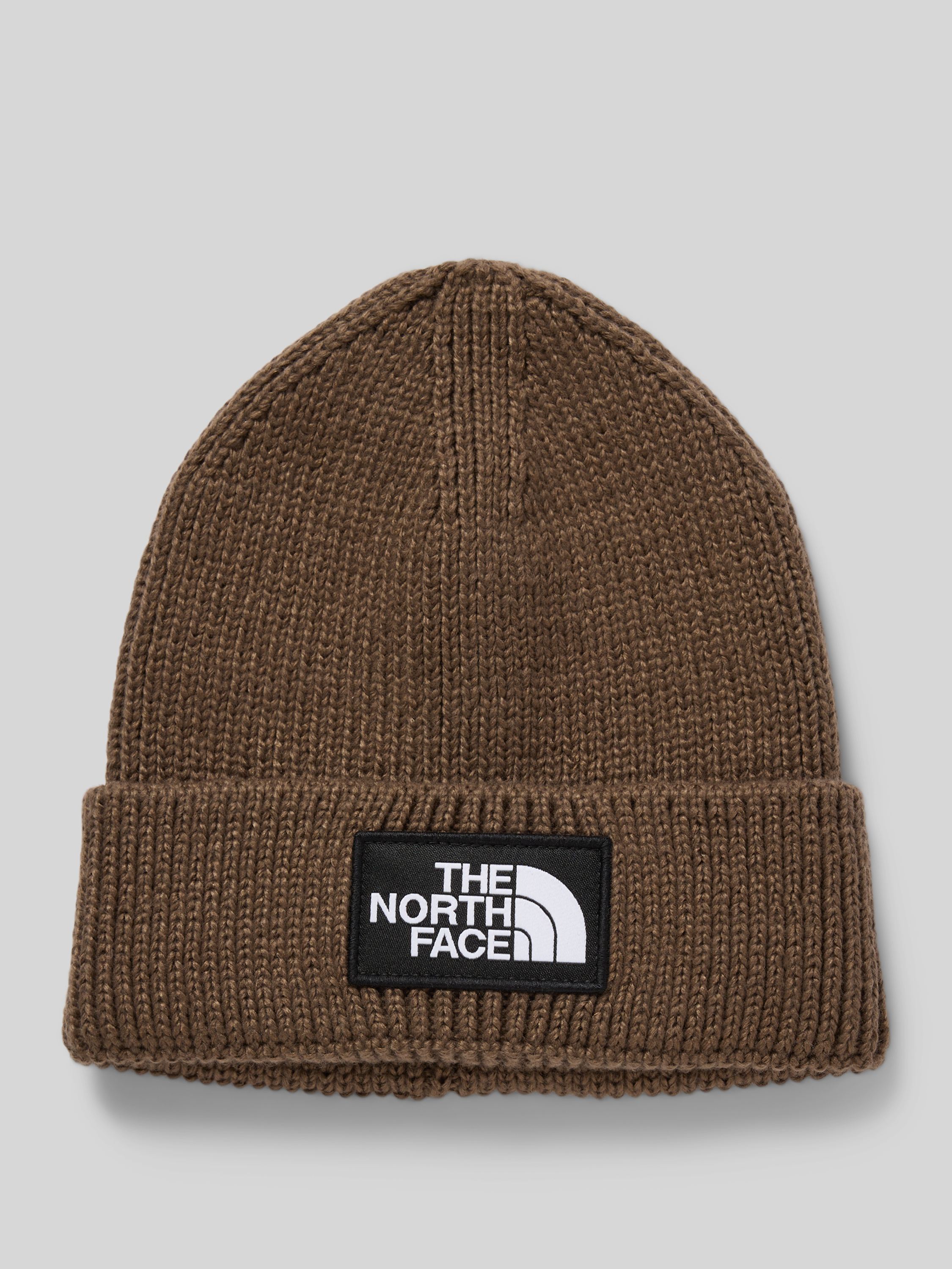 Beanie in gebreide look met logopatch, model 'Box' in middenbruin