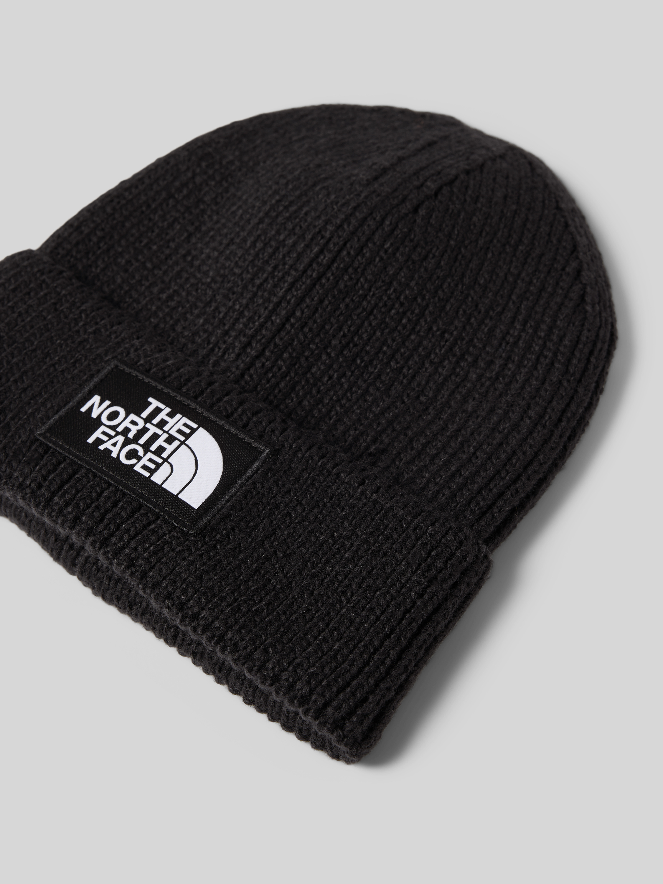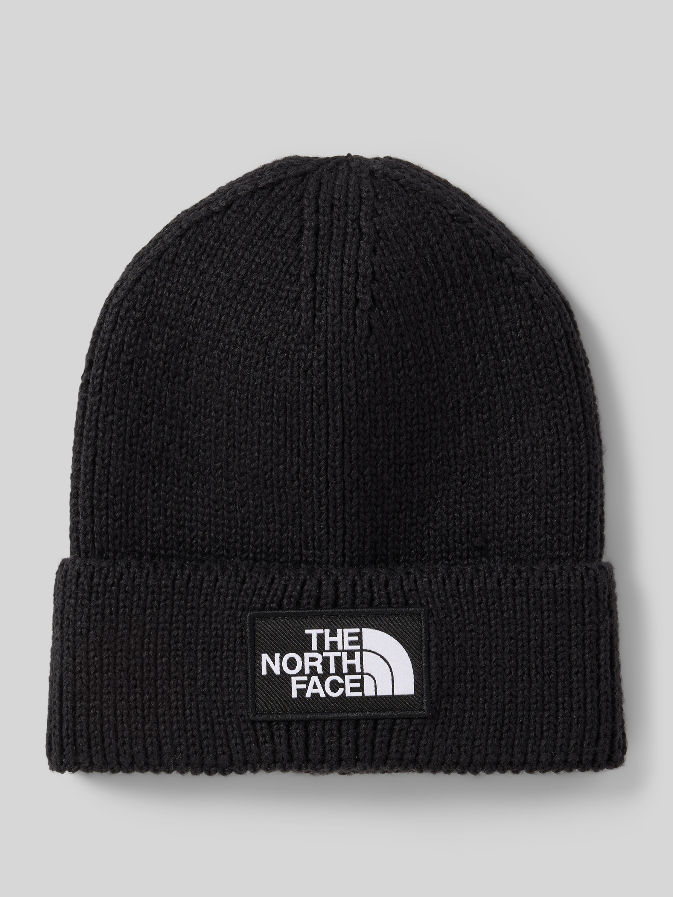Beanie in gebreide look met logopatch, model 'Box' in zwart