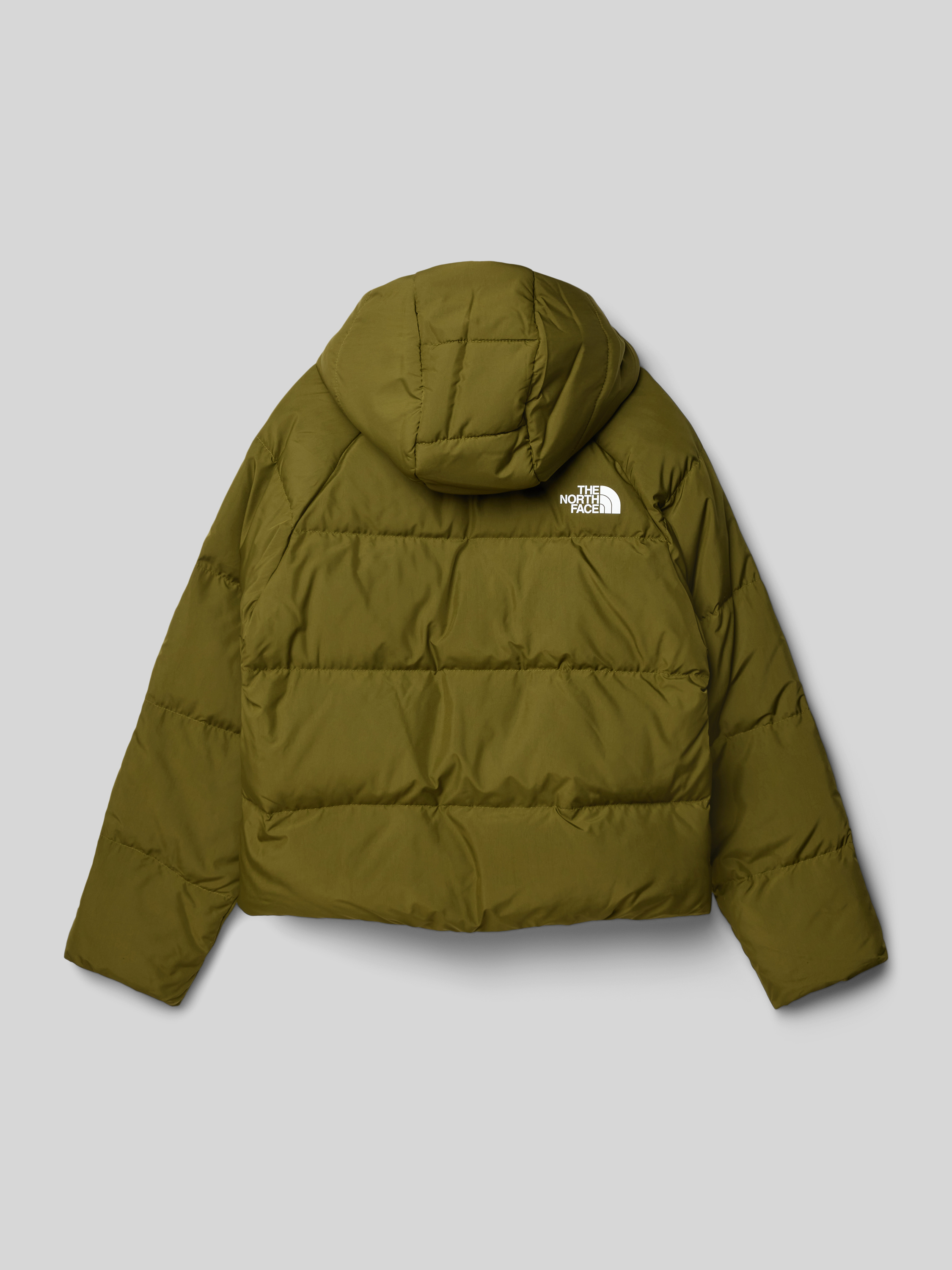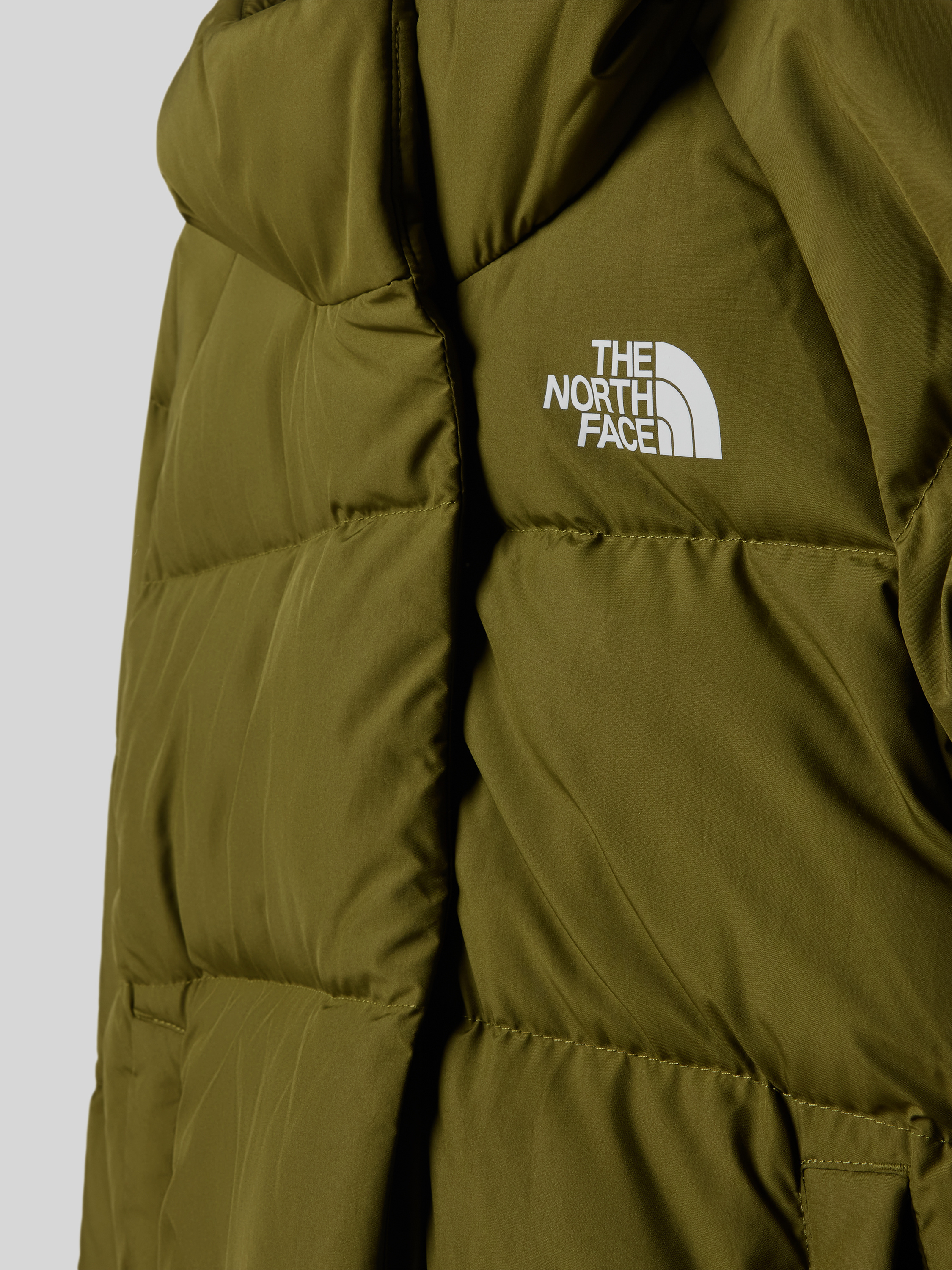 Gewatteerde lange jas met labelprint, model 'NORTH DOWN' in olijfgroen