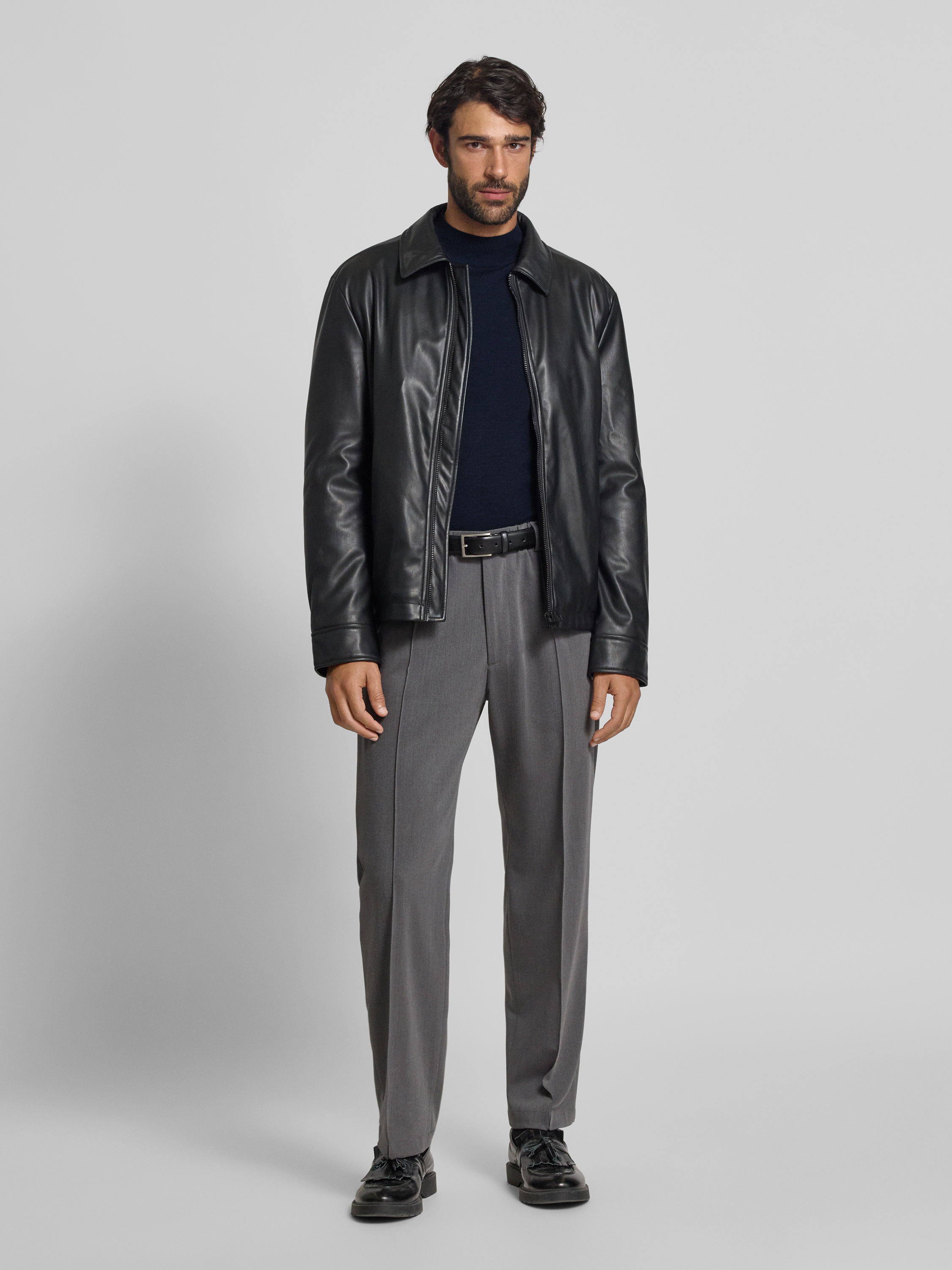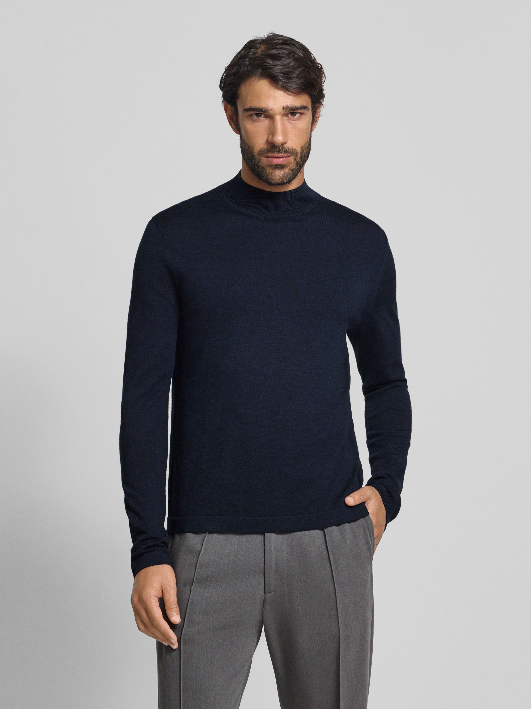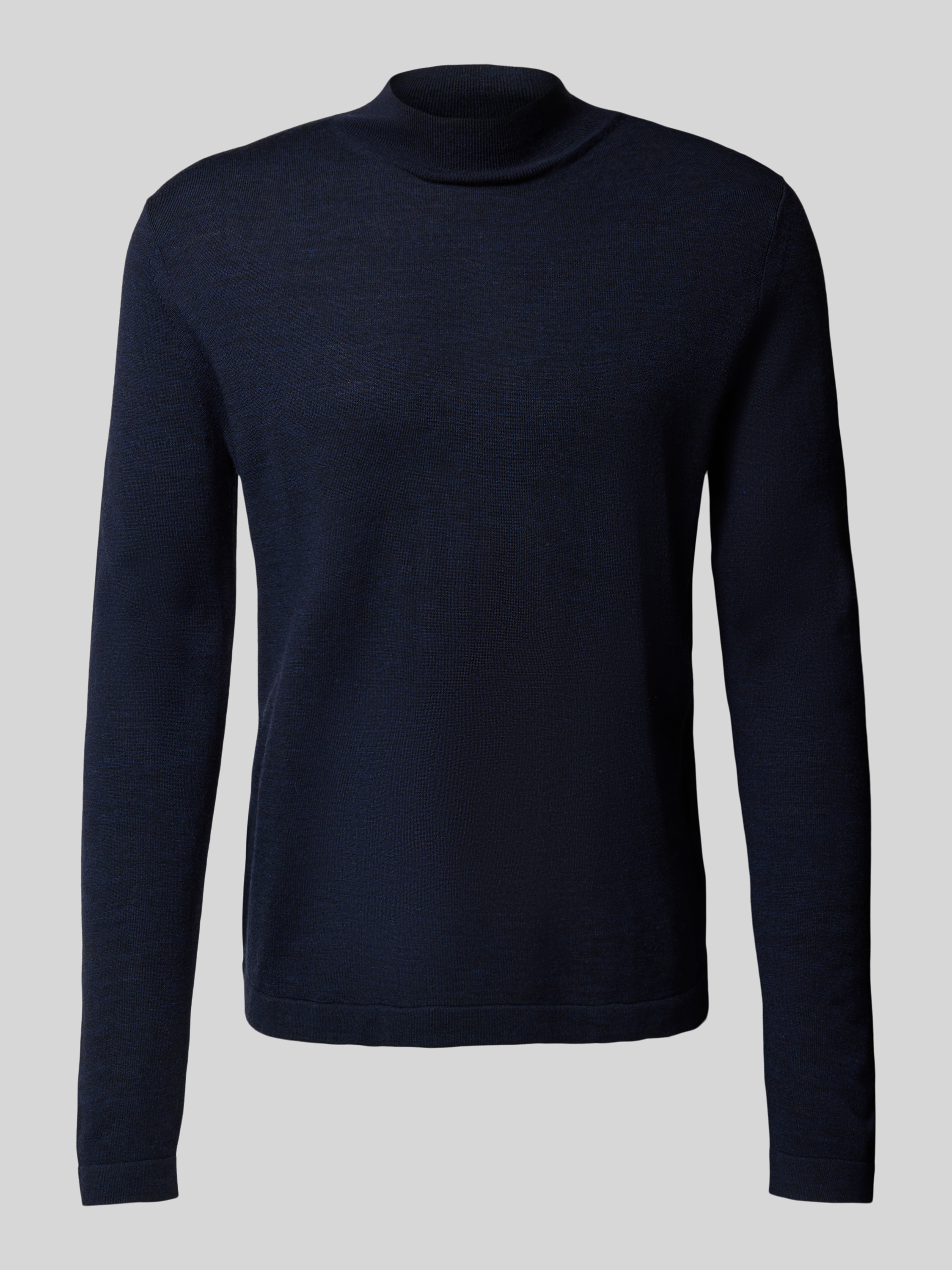 Gebreide pullover van merinowol met opstaande kraag, model 'Tern' in marineblauw
