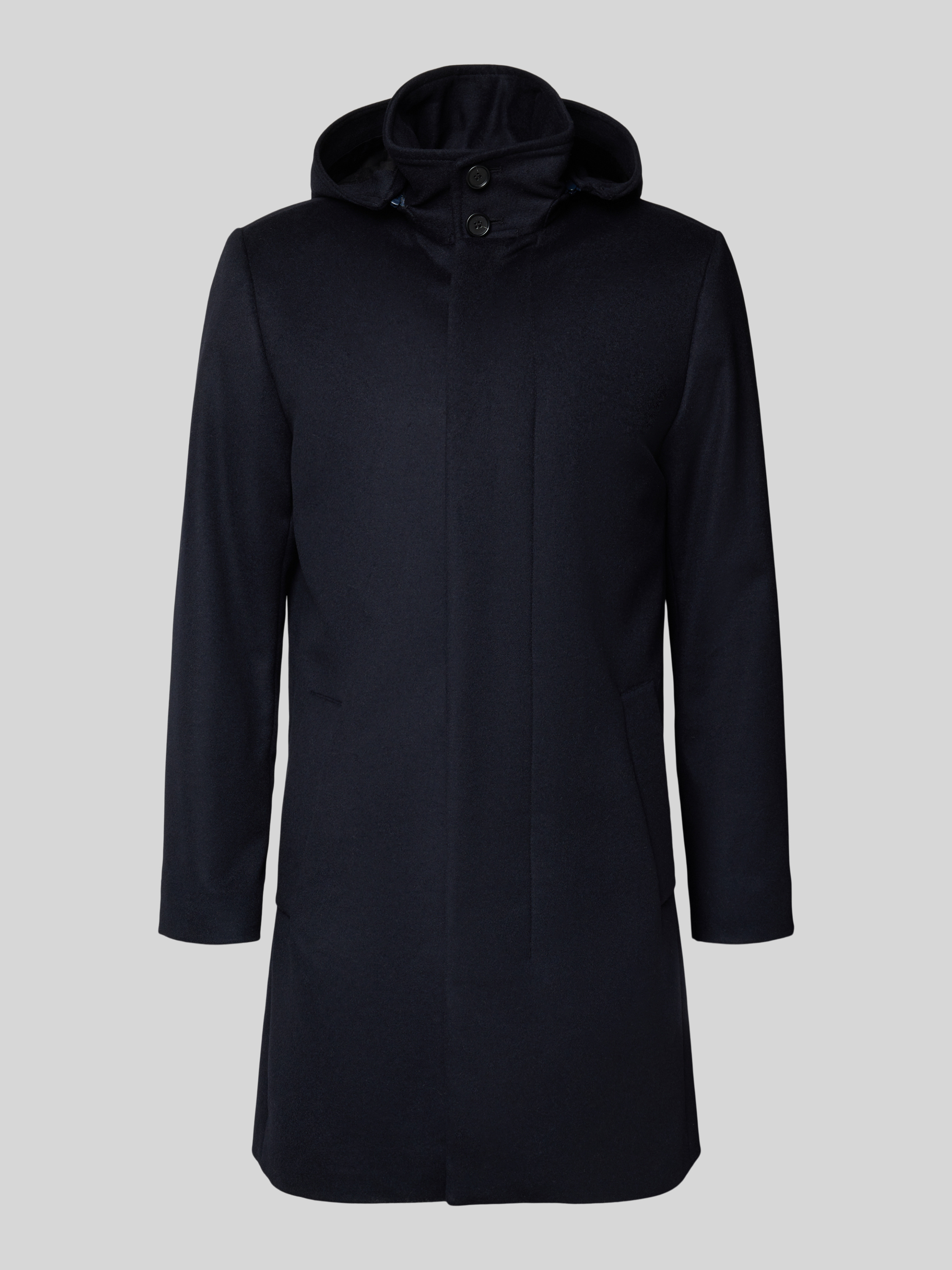 Lange jas met kasjmier, model 'Aleric' in donkerblauw