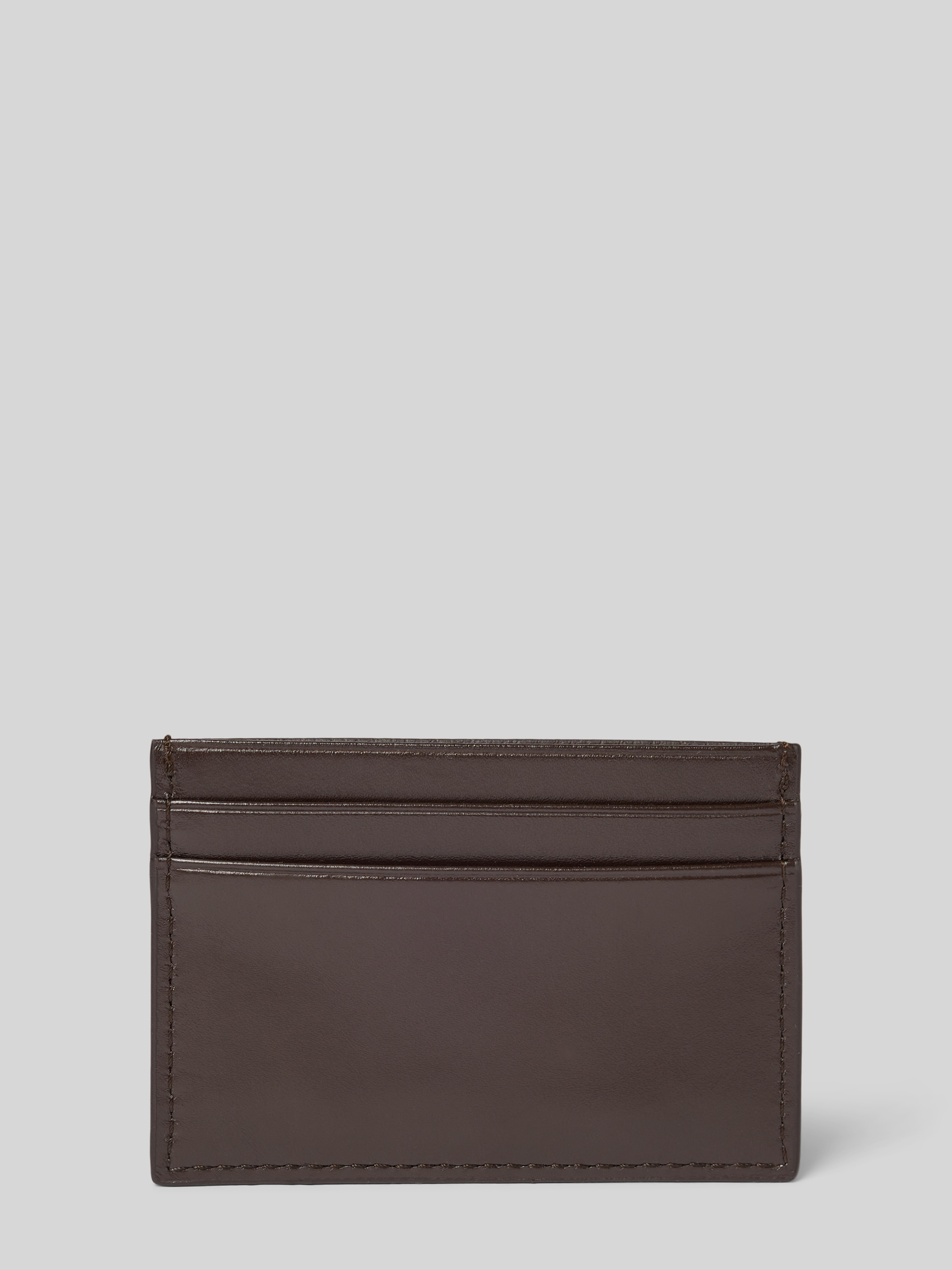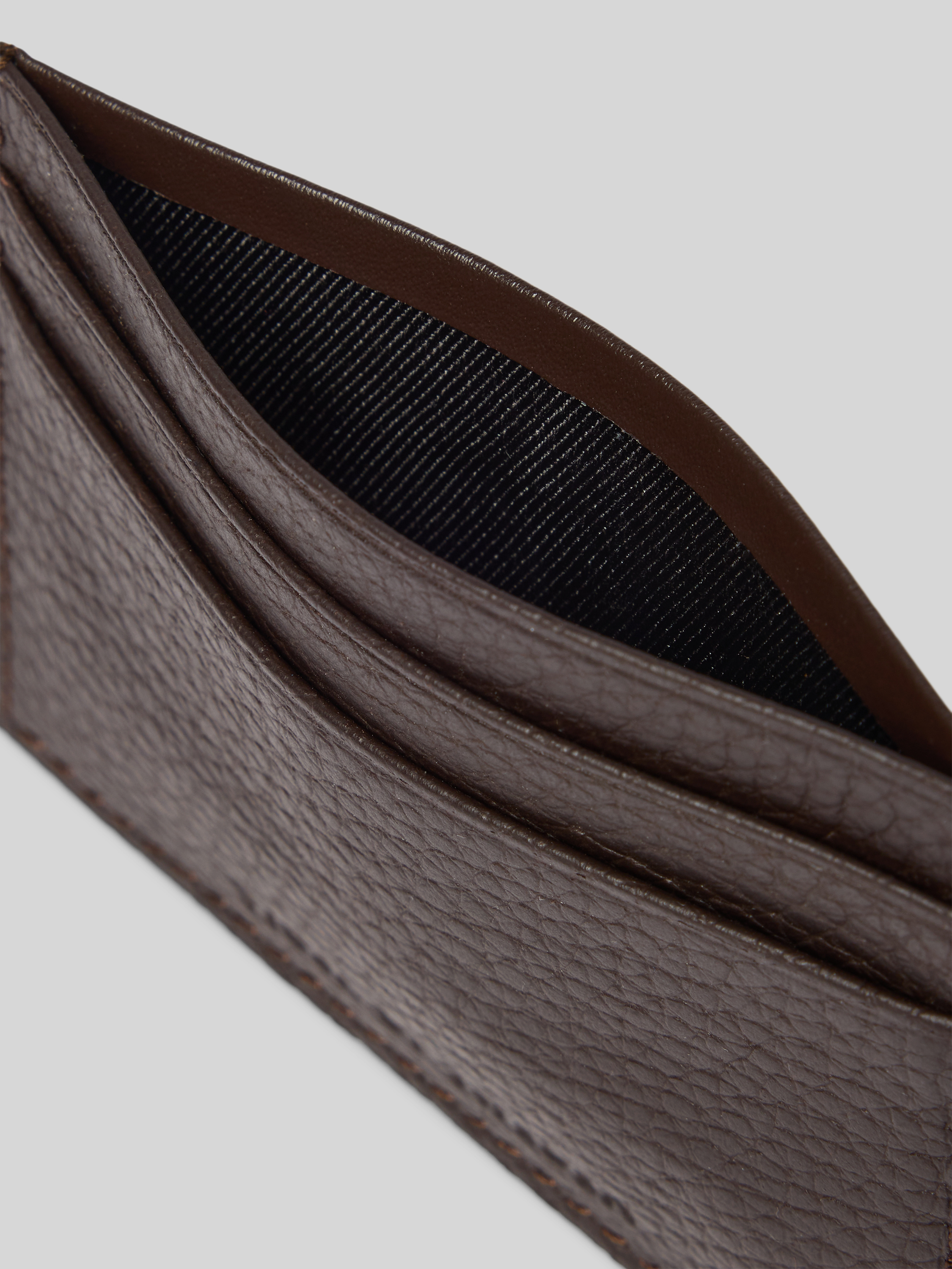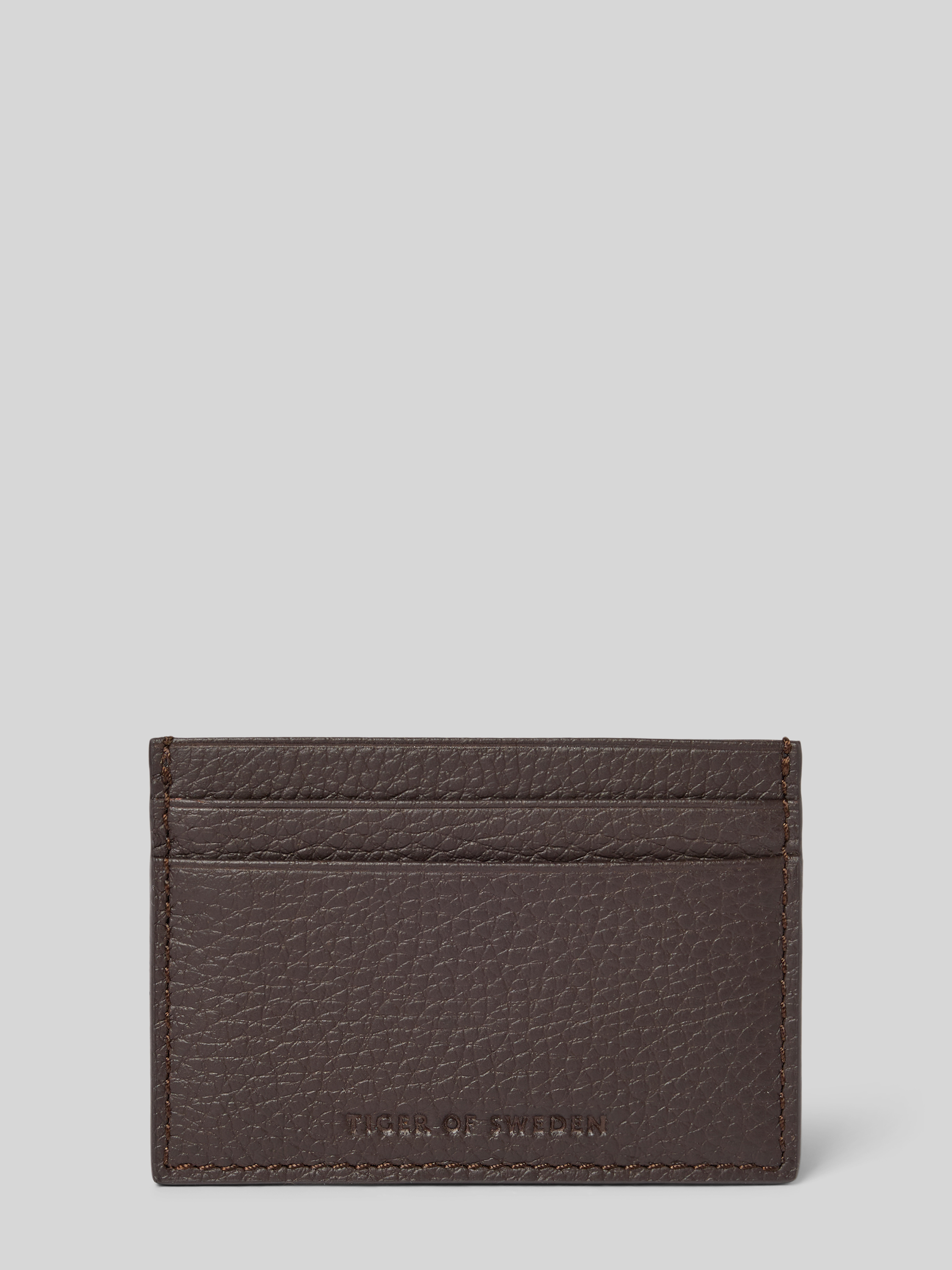 Pasjeshouder van leer met label in reliëf, model 'WAKE' in donkerbruin