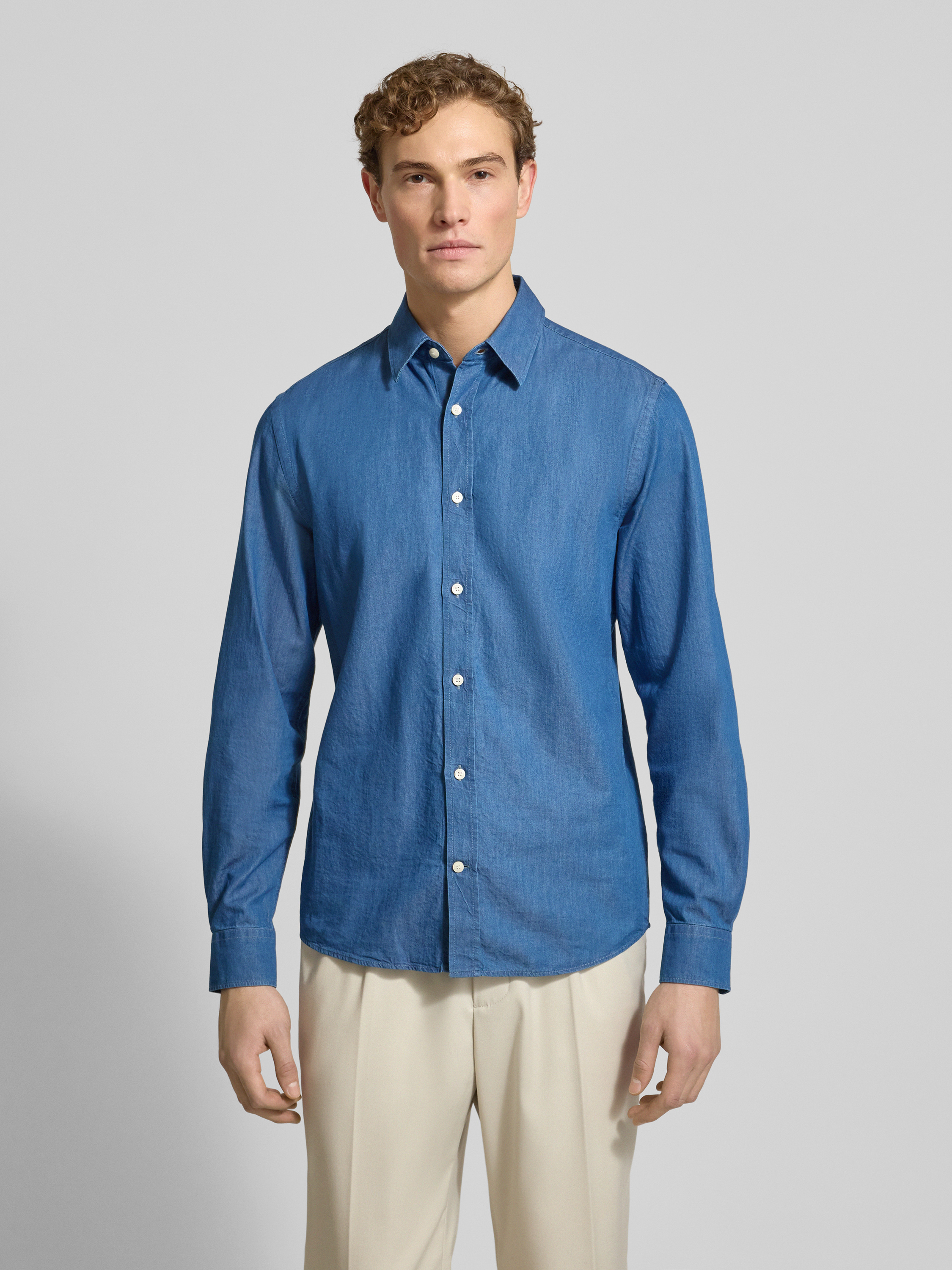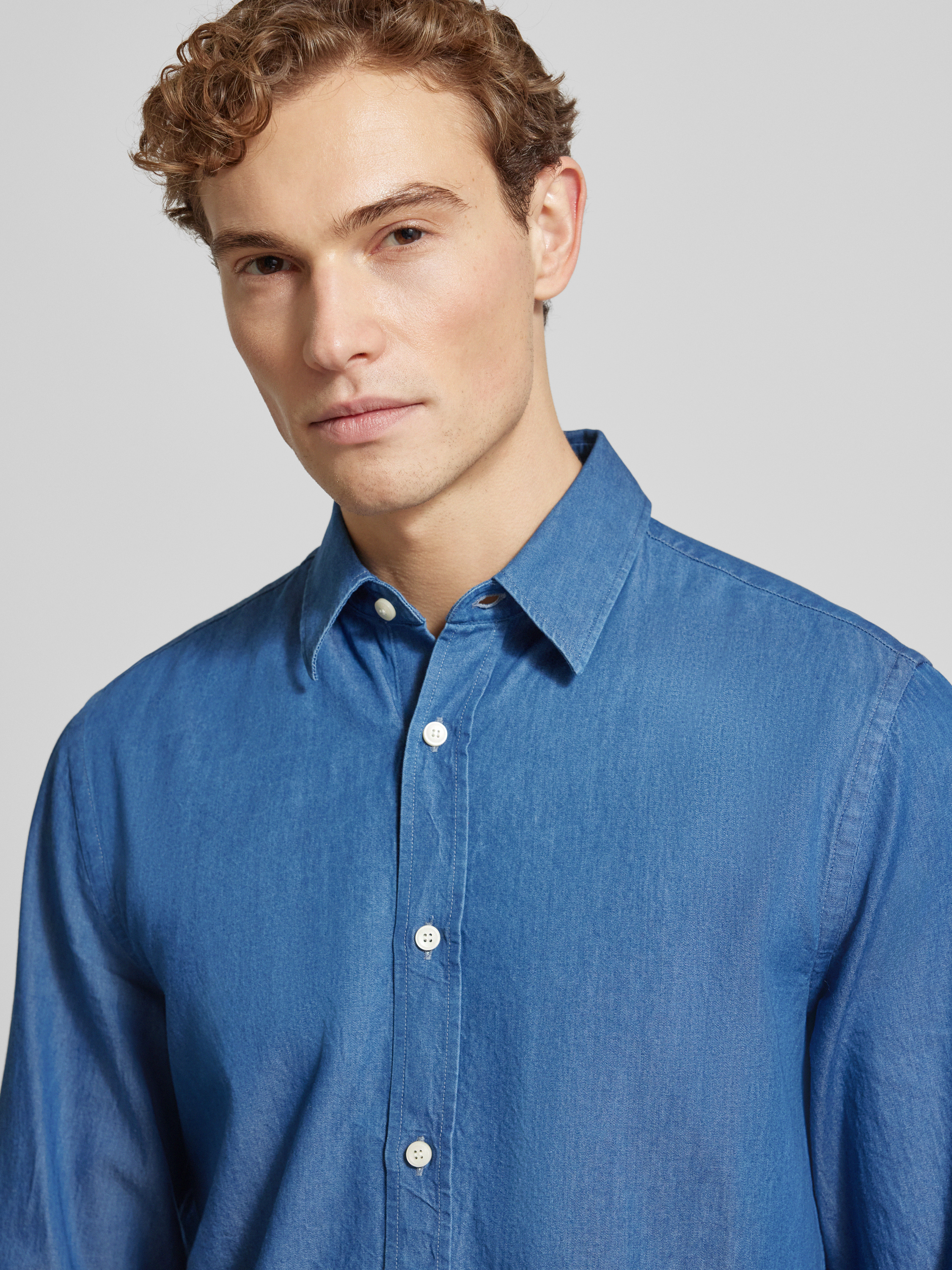 Regular fit vrijetijdsoverhemd met kentkraag, model 'SPENSER' in jeansblauw