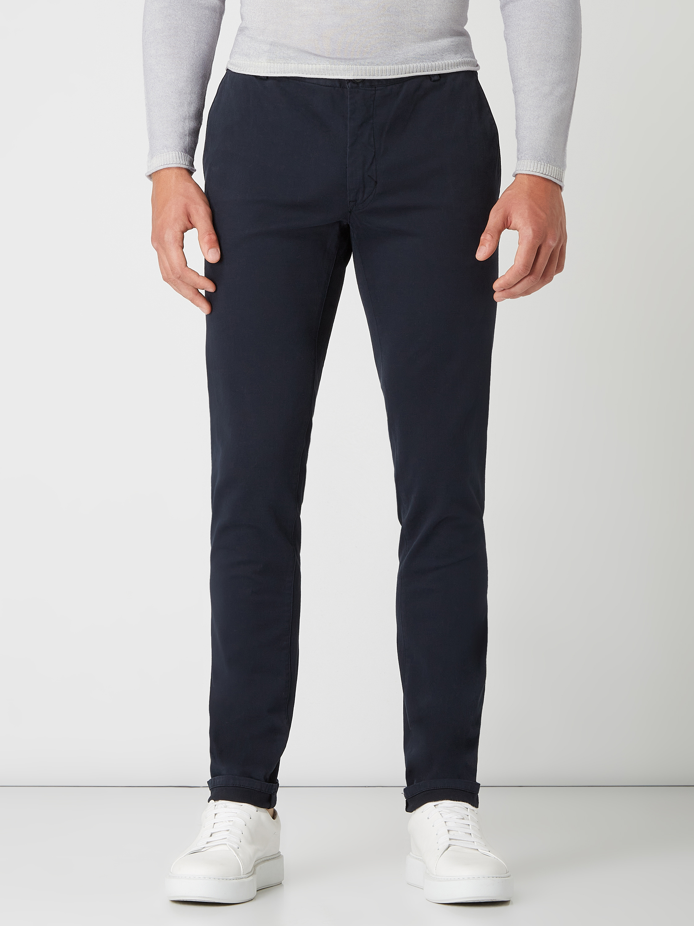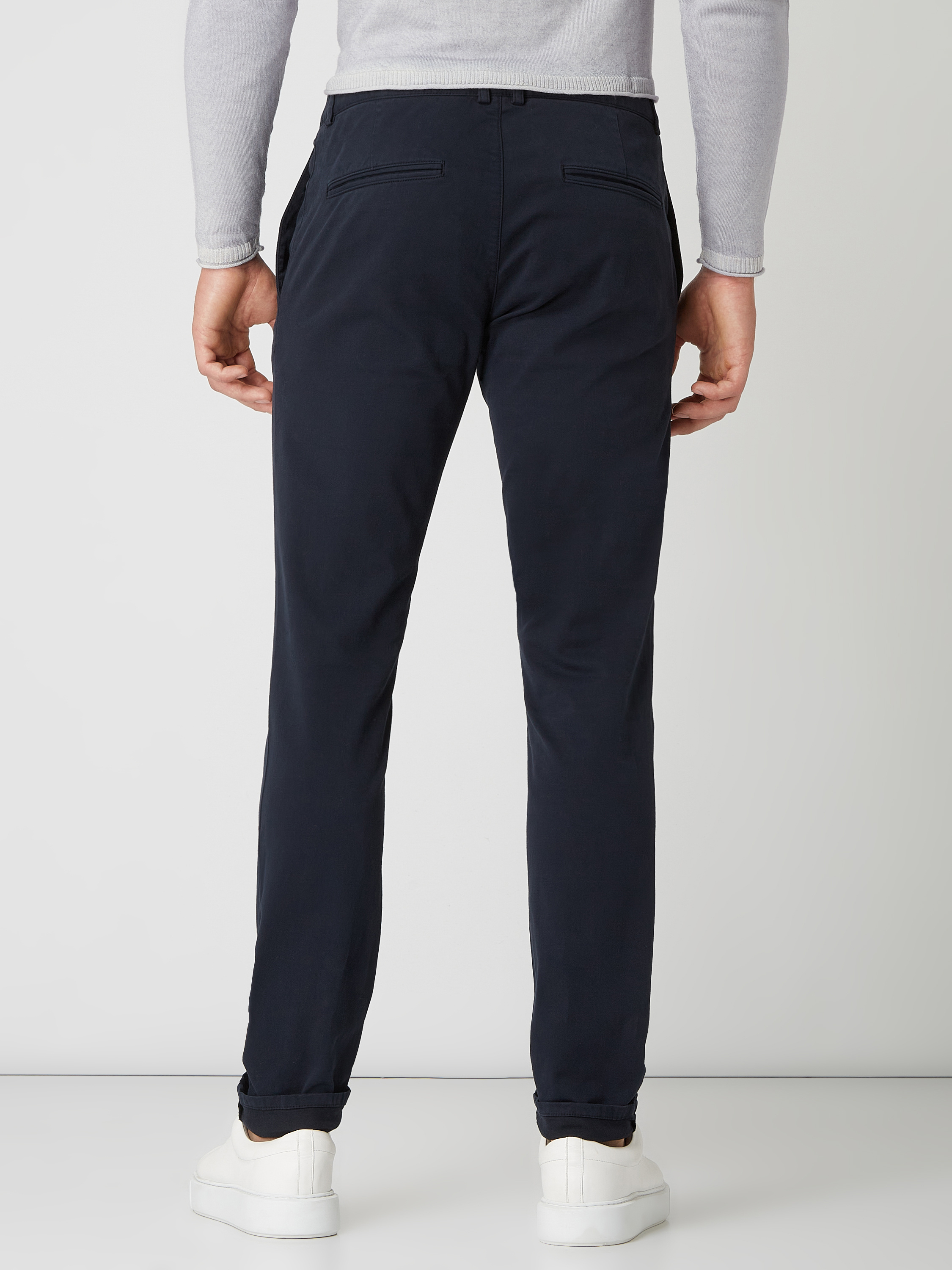 Slim fit chino met stretch, model 'Transit' in marineblauw