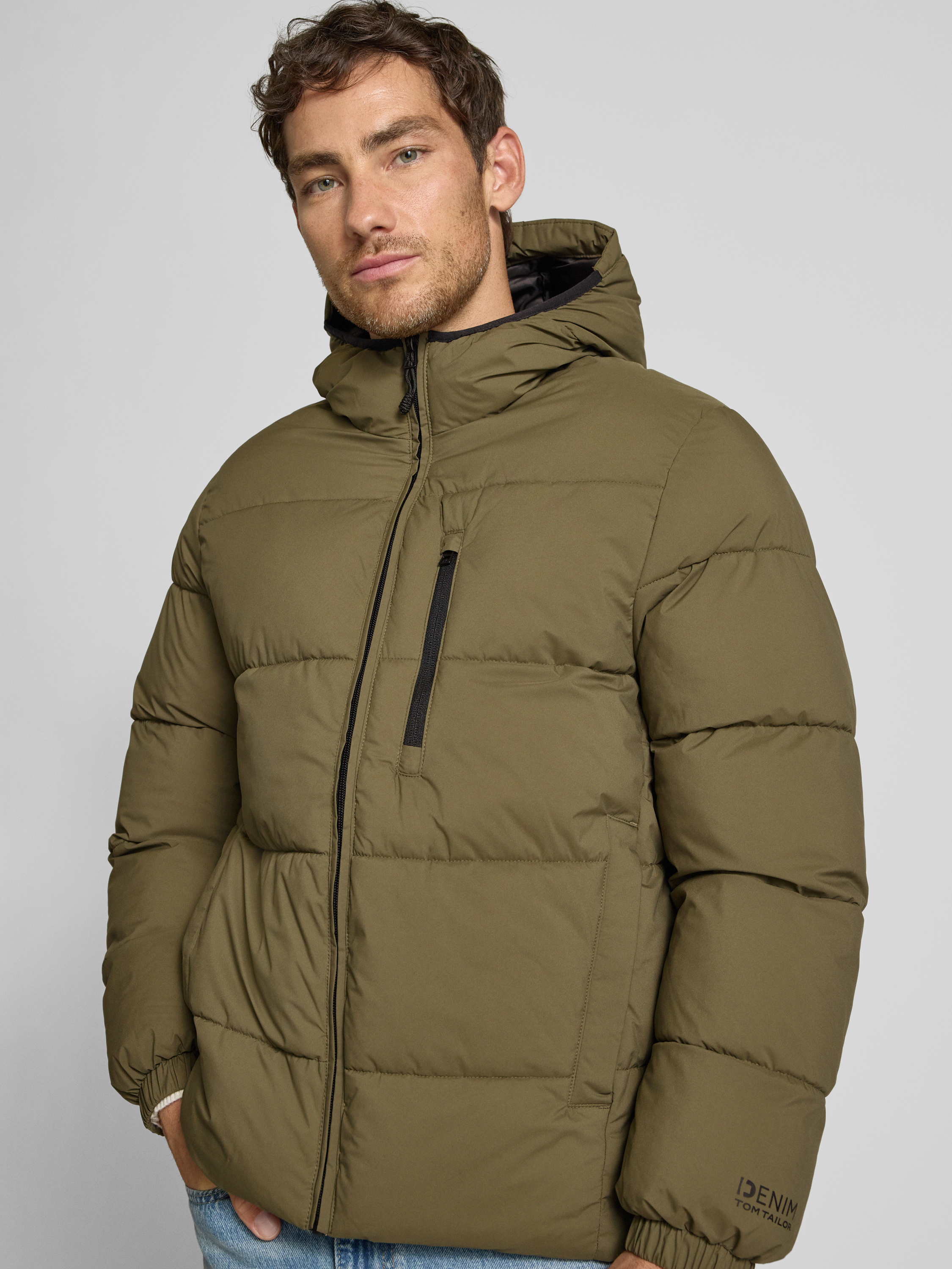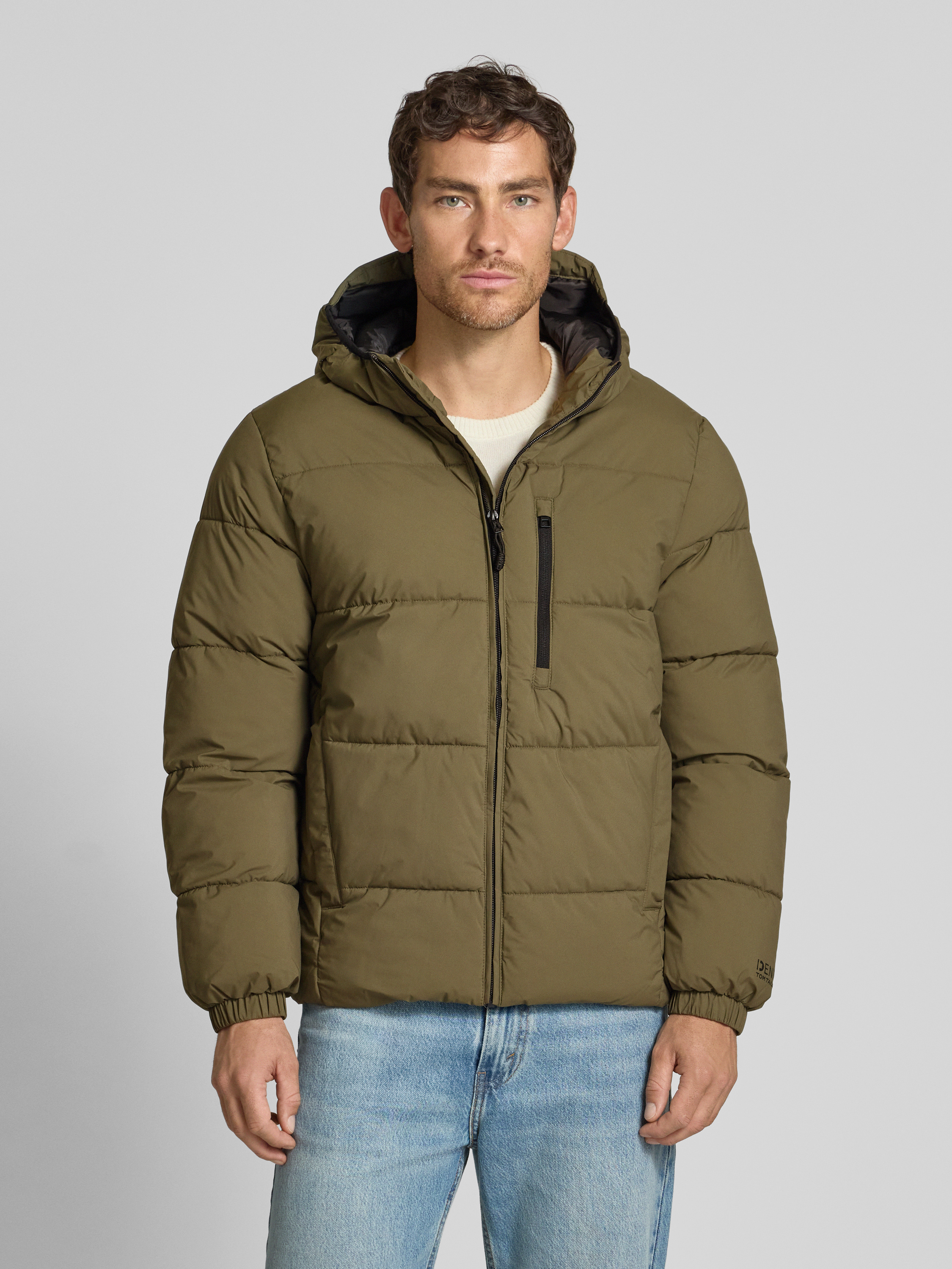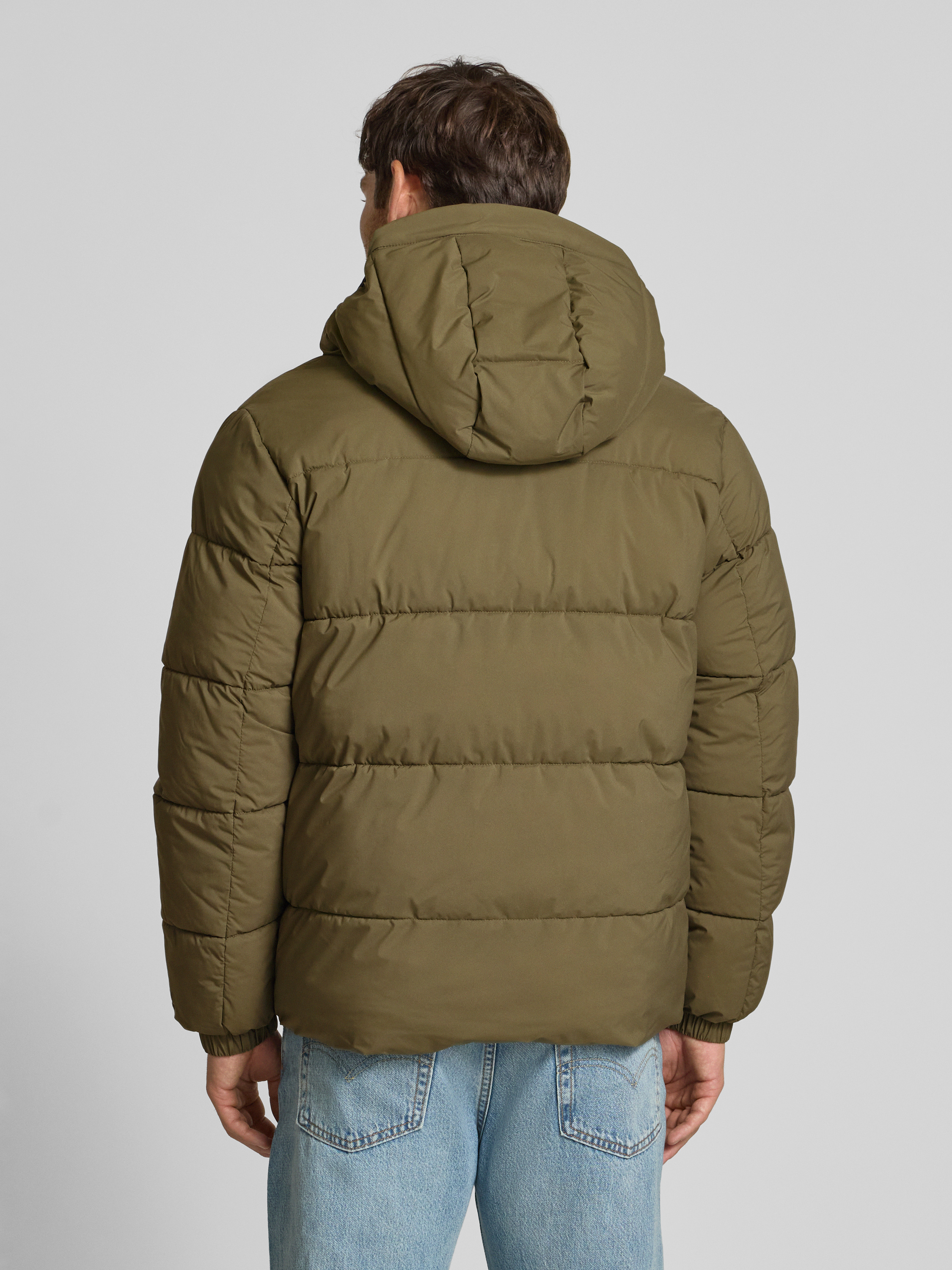 Gewatteerd regular fit jack met capuchon in olijfgroen