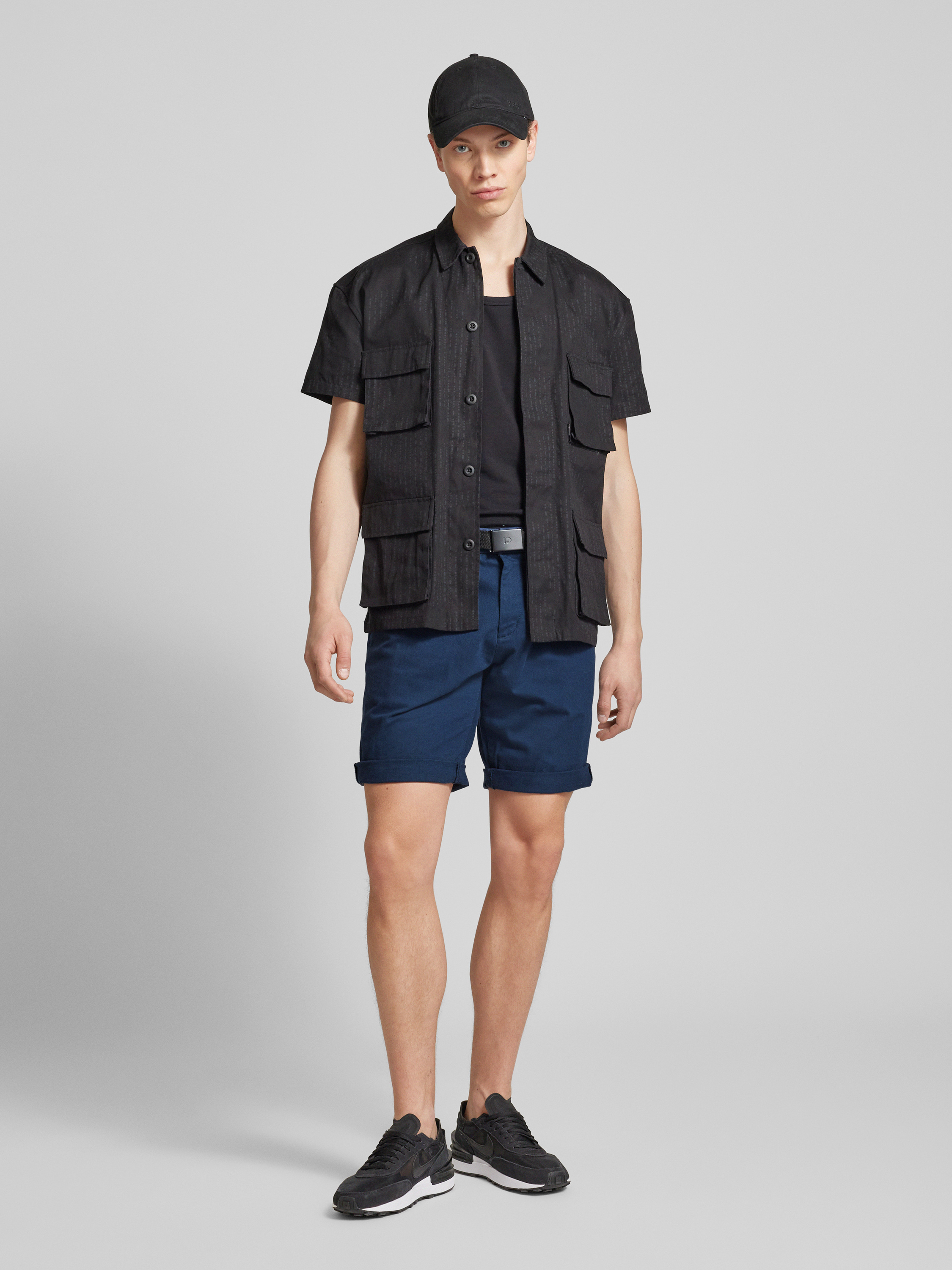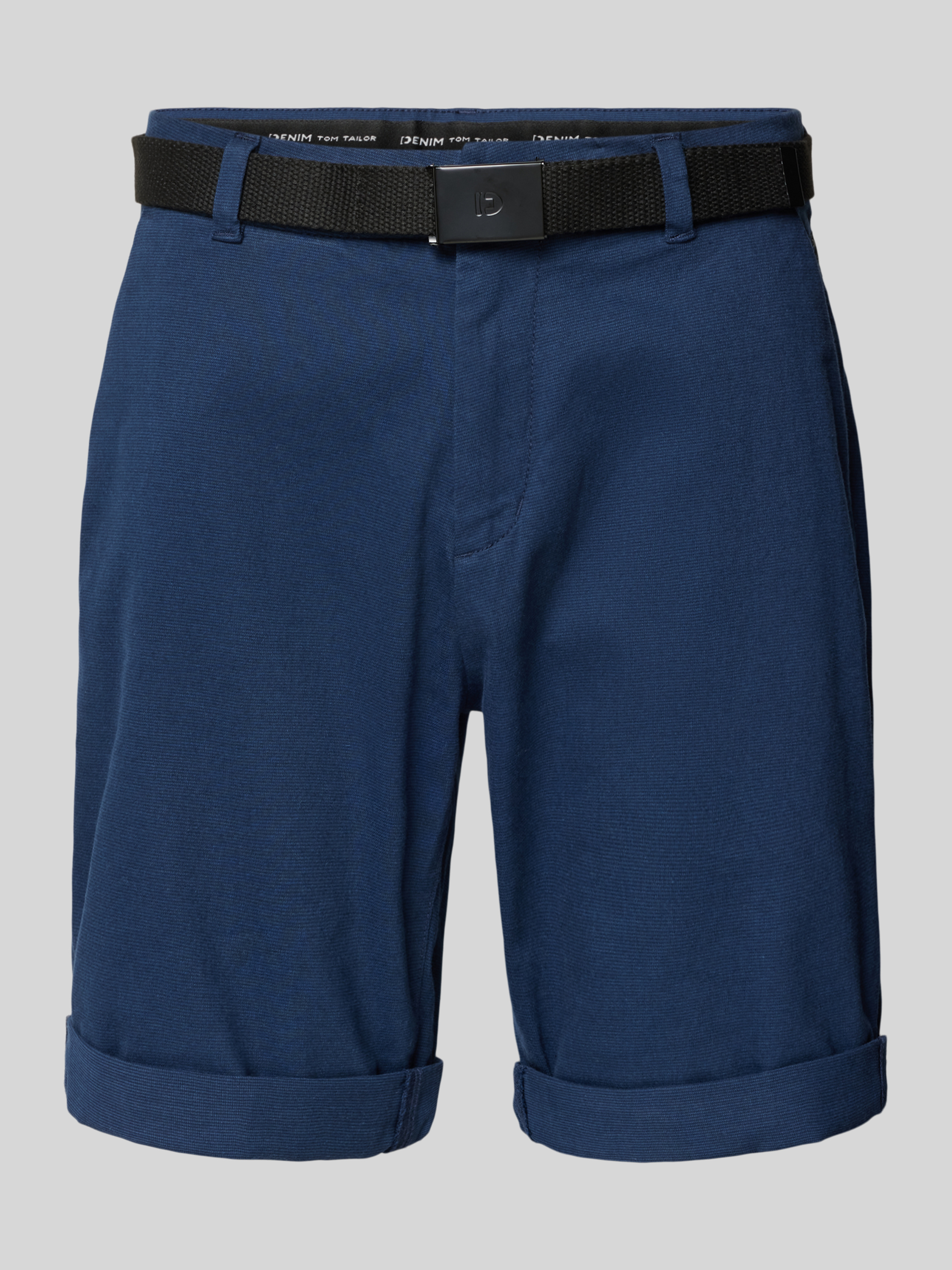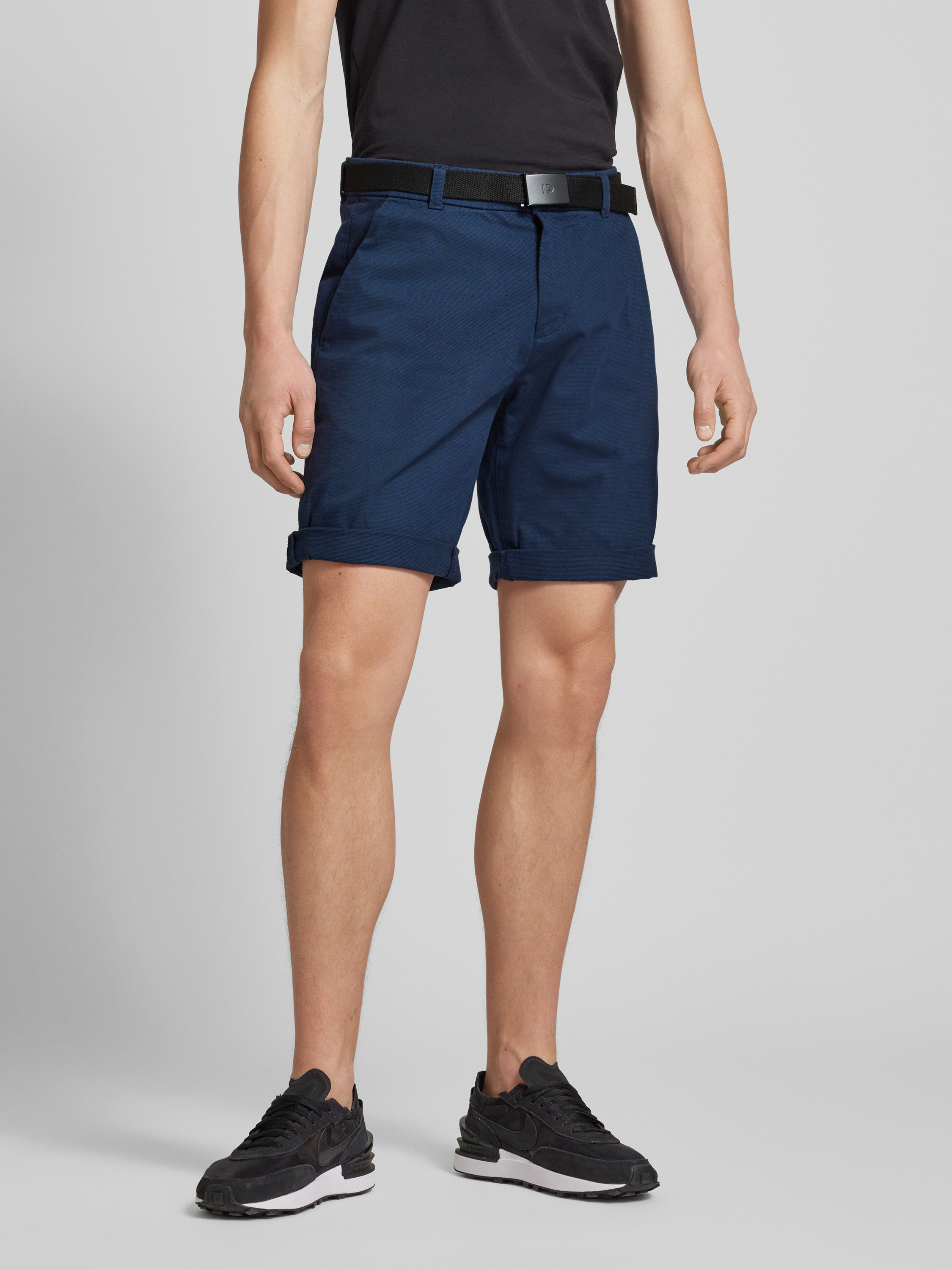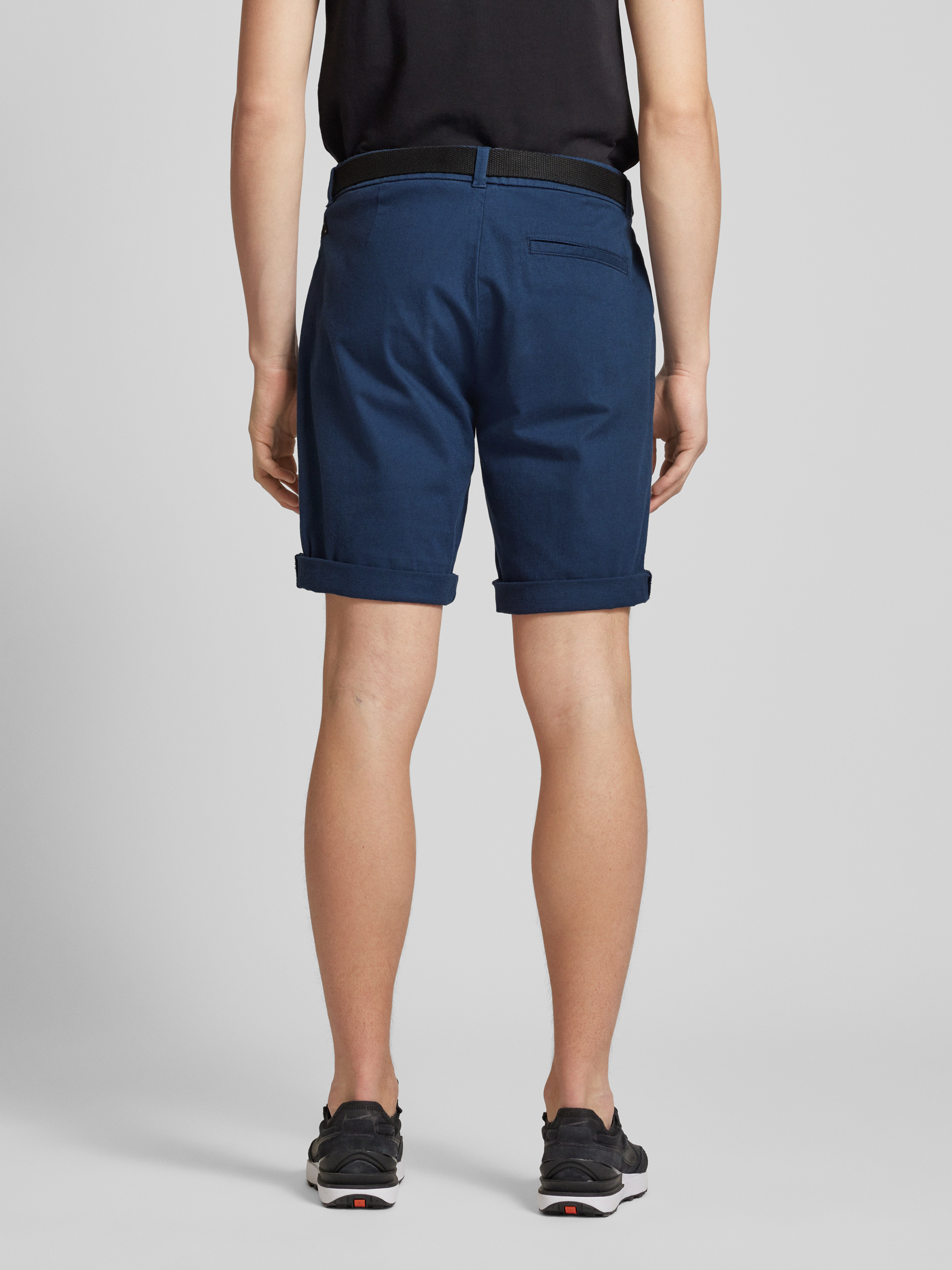 Korte regular fit chino met riem in marineblauw