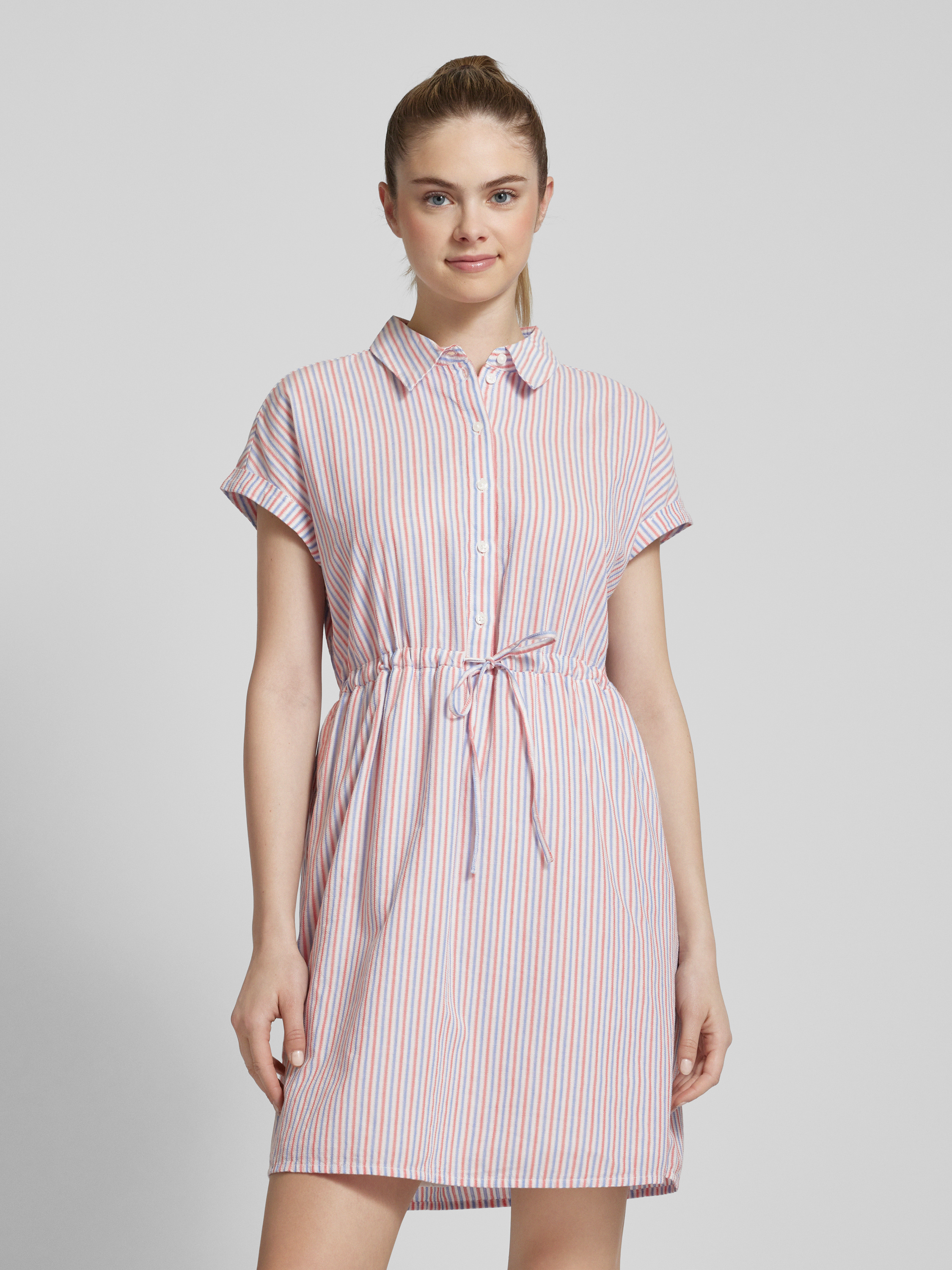 Overhemdjurk van viscose met streepmotief in lichtrood