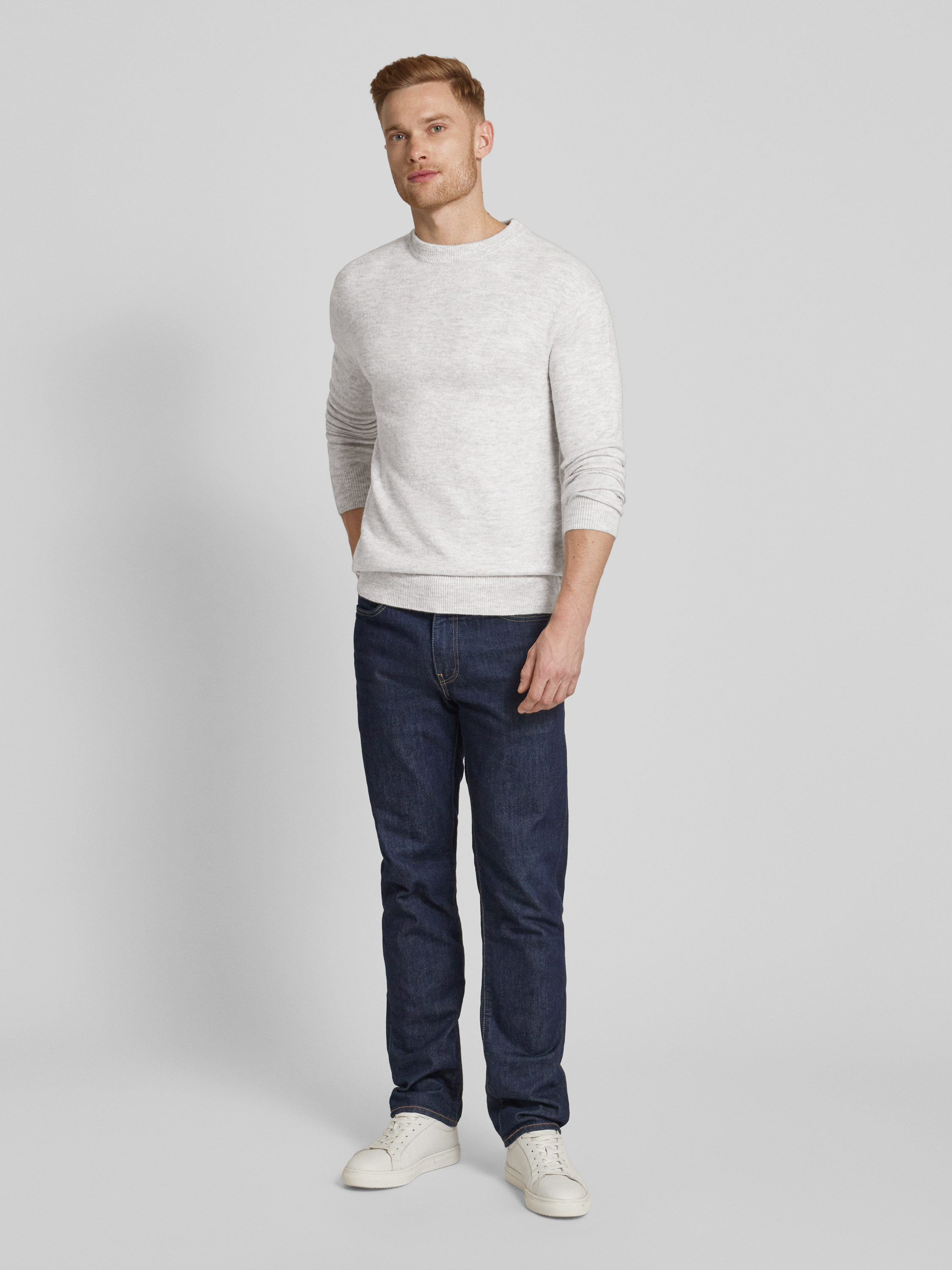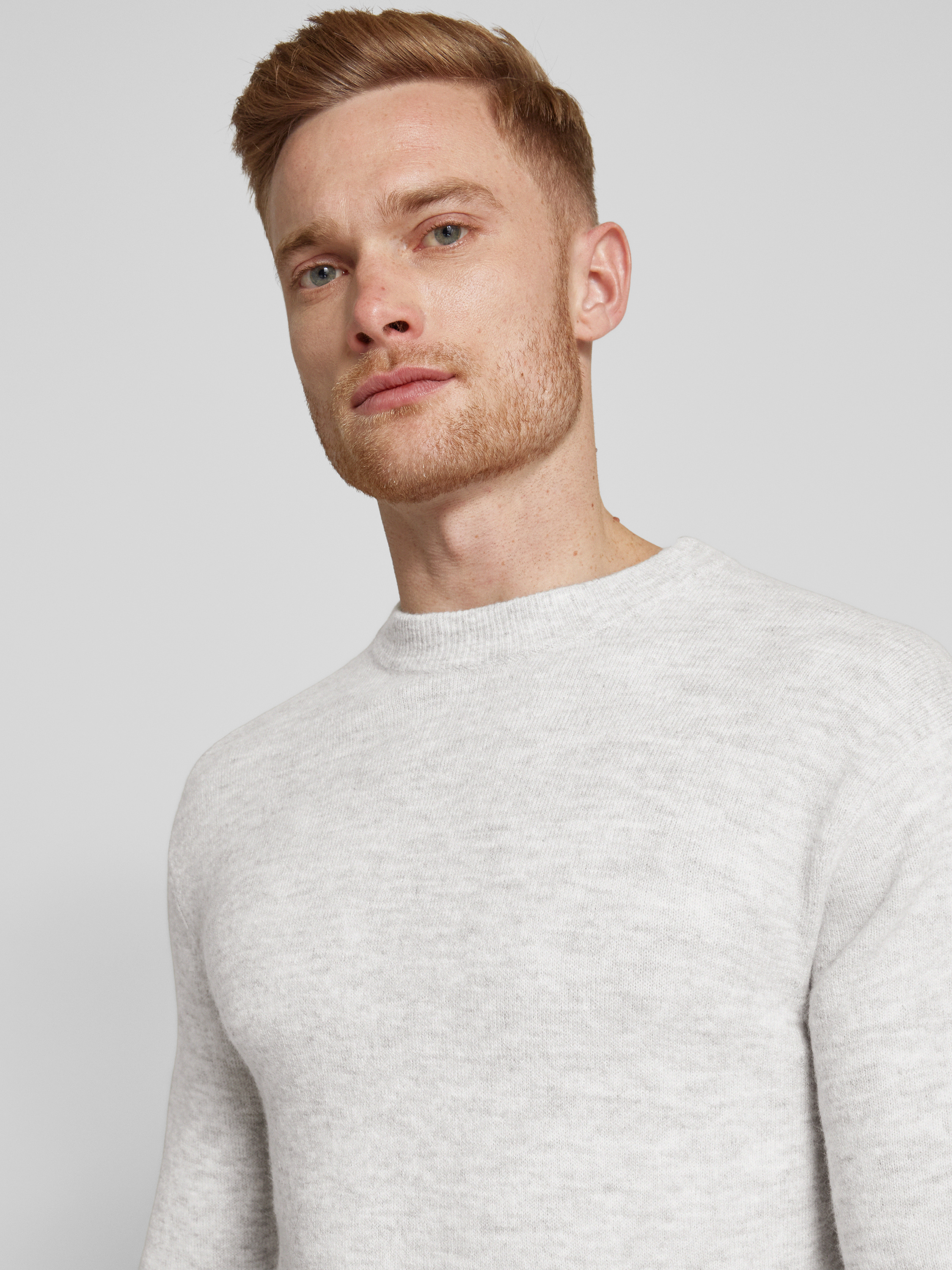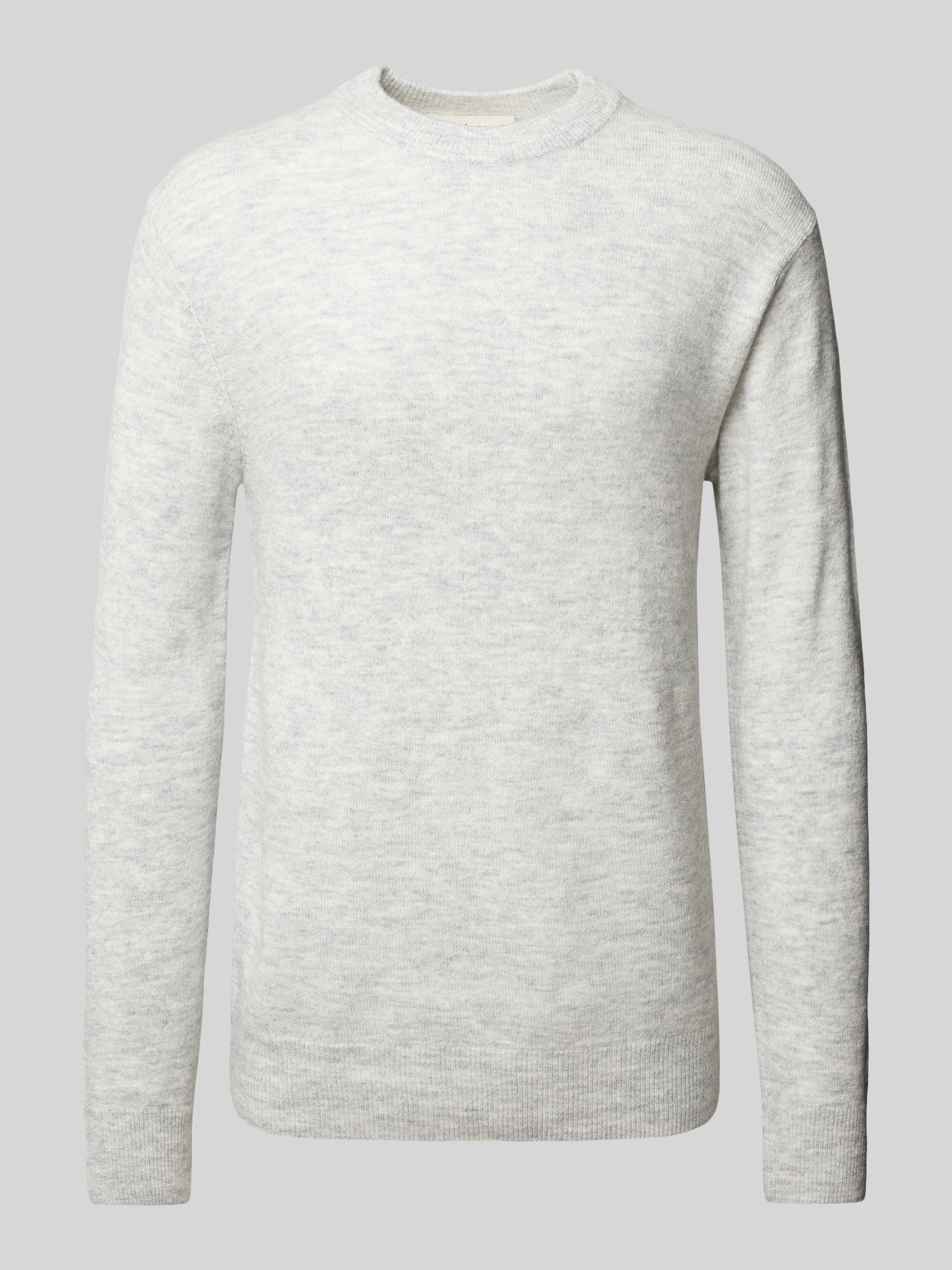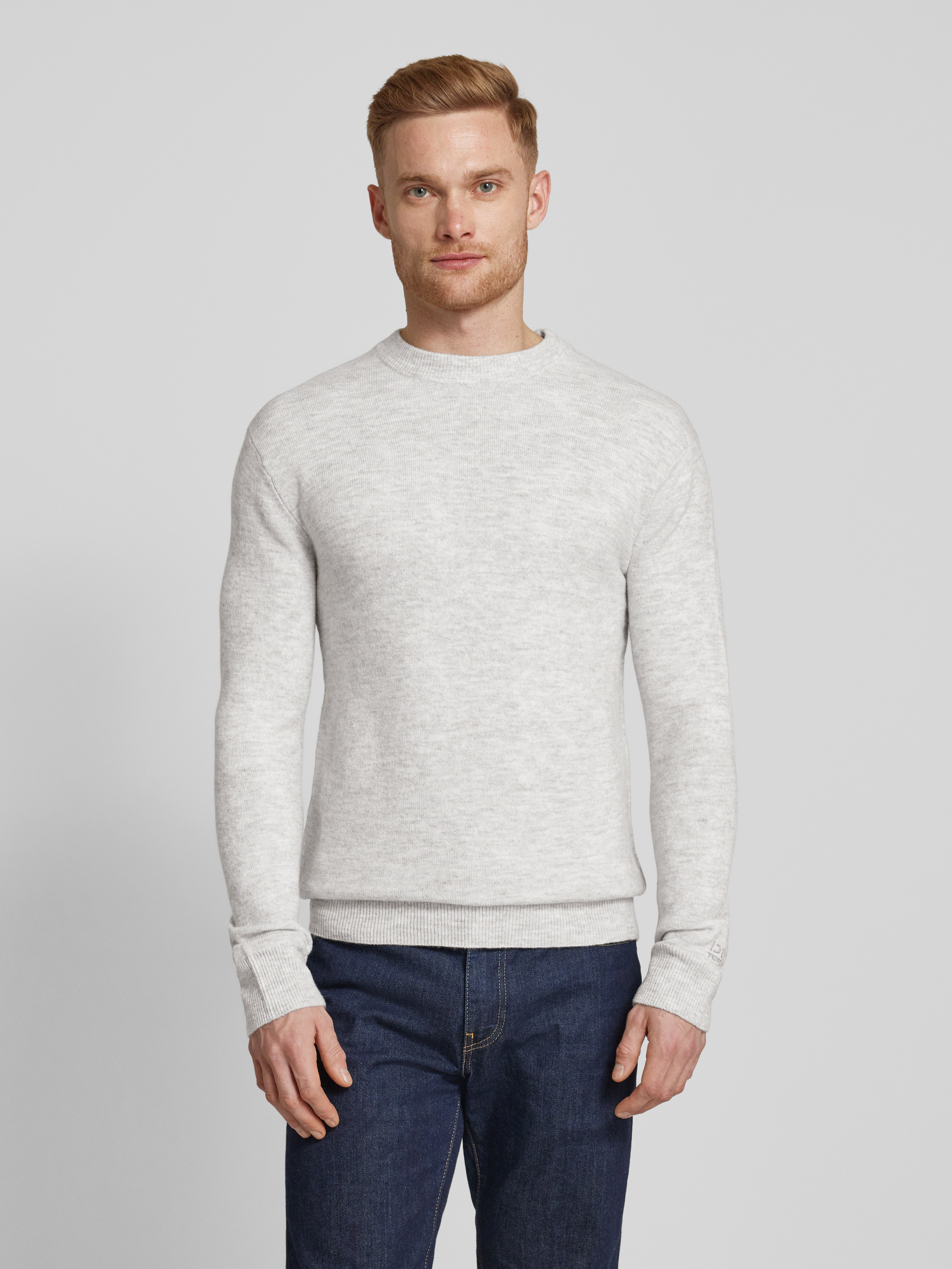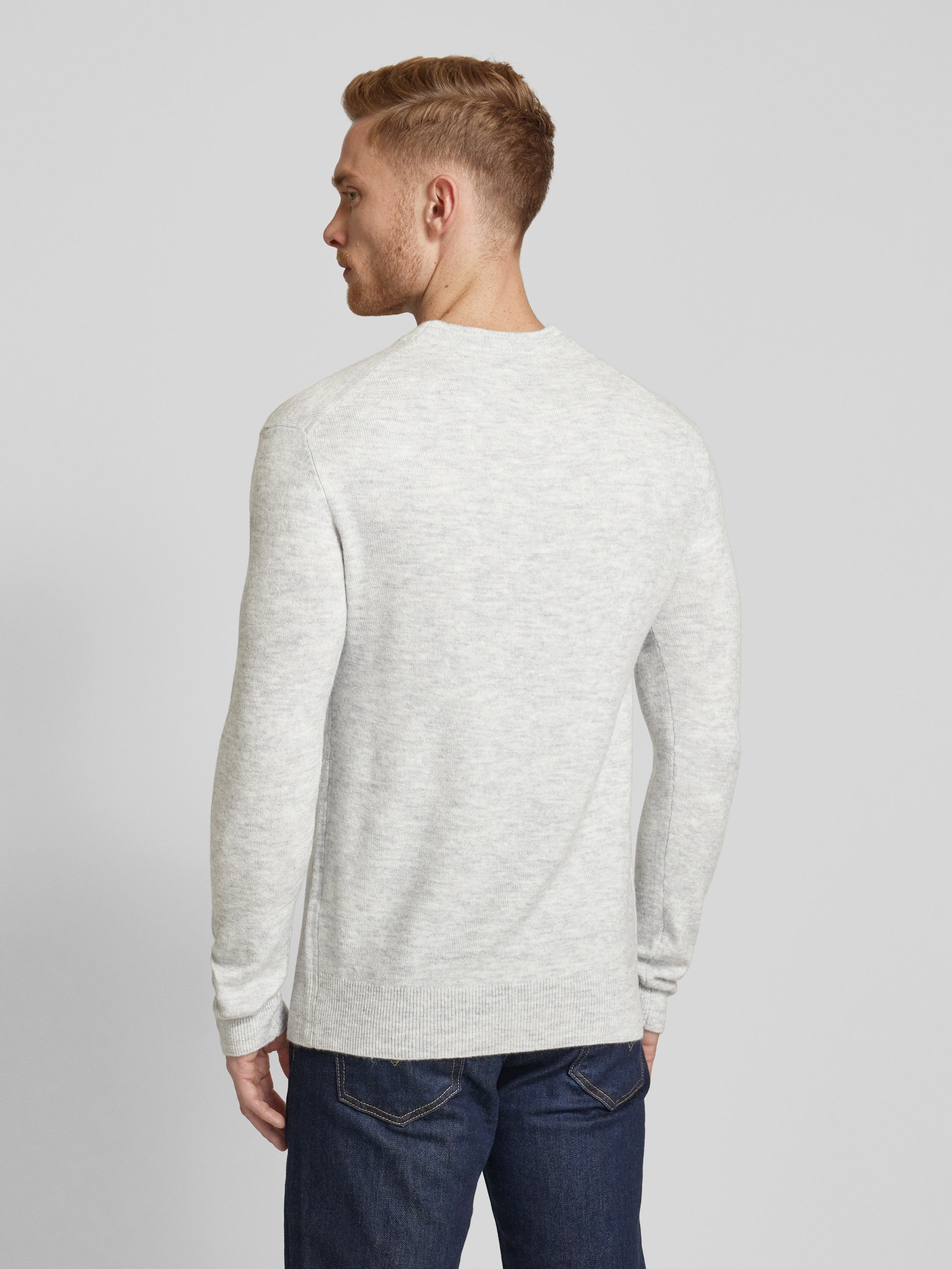 Regular fit gebreide pullover met wol en labelstitching bij de mouwen in lichtgrijs gemêleerd
