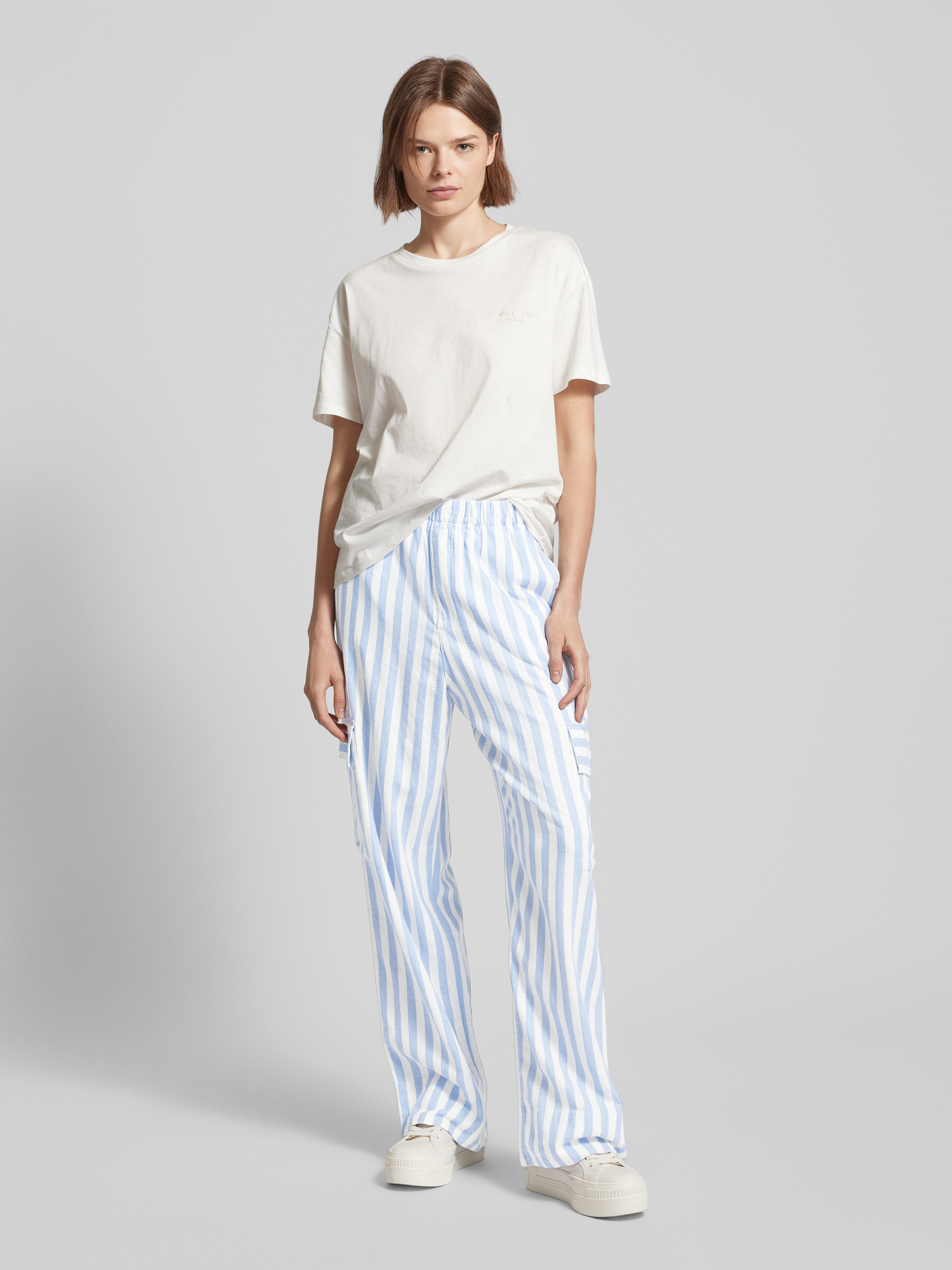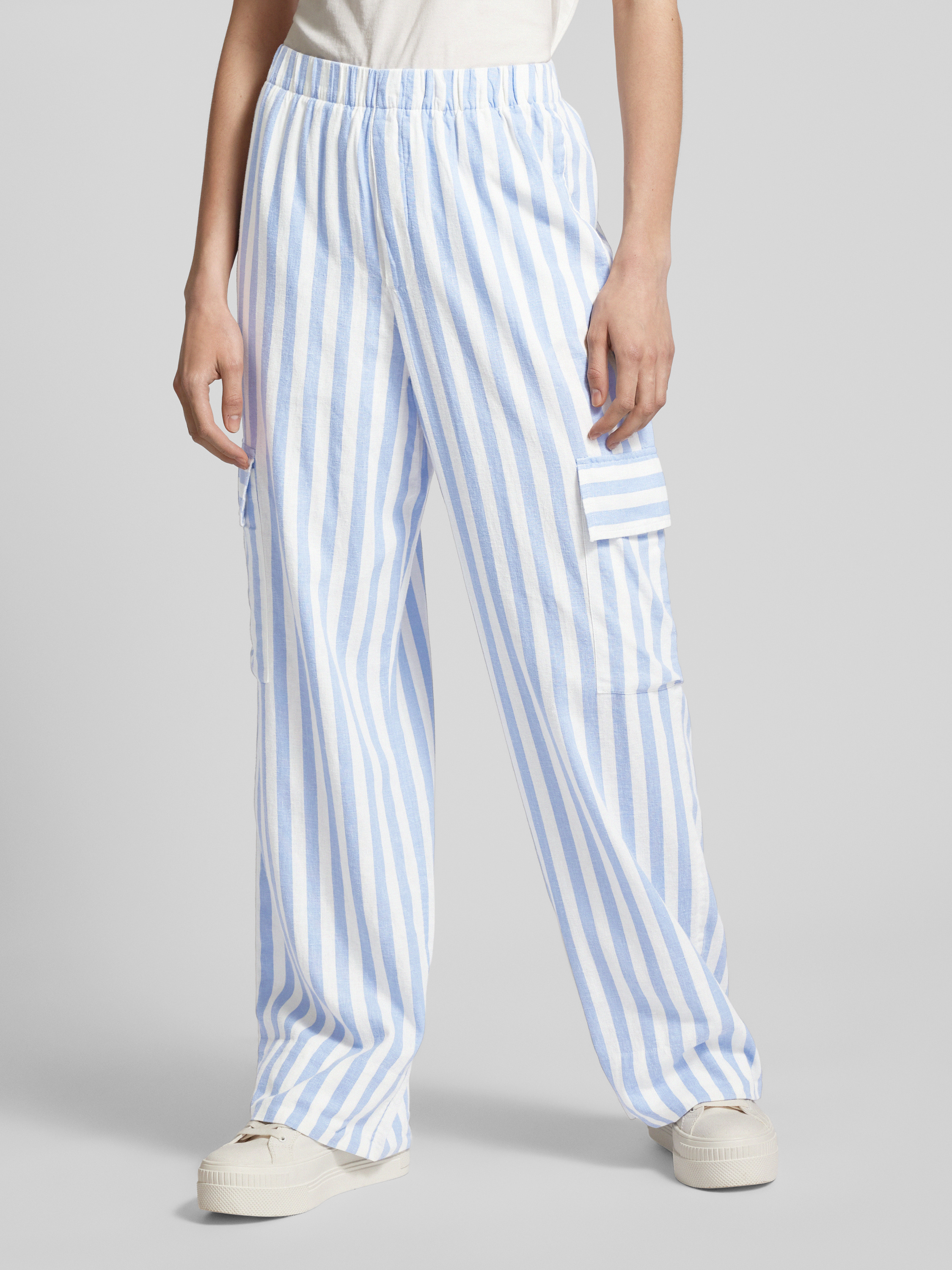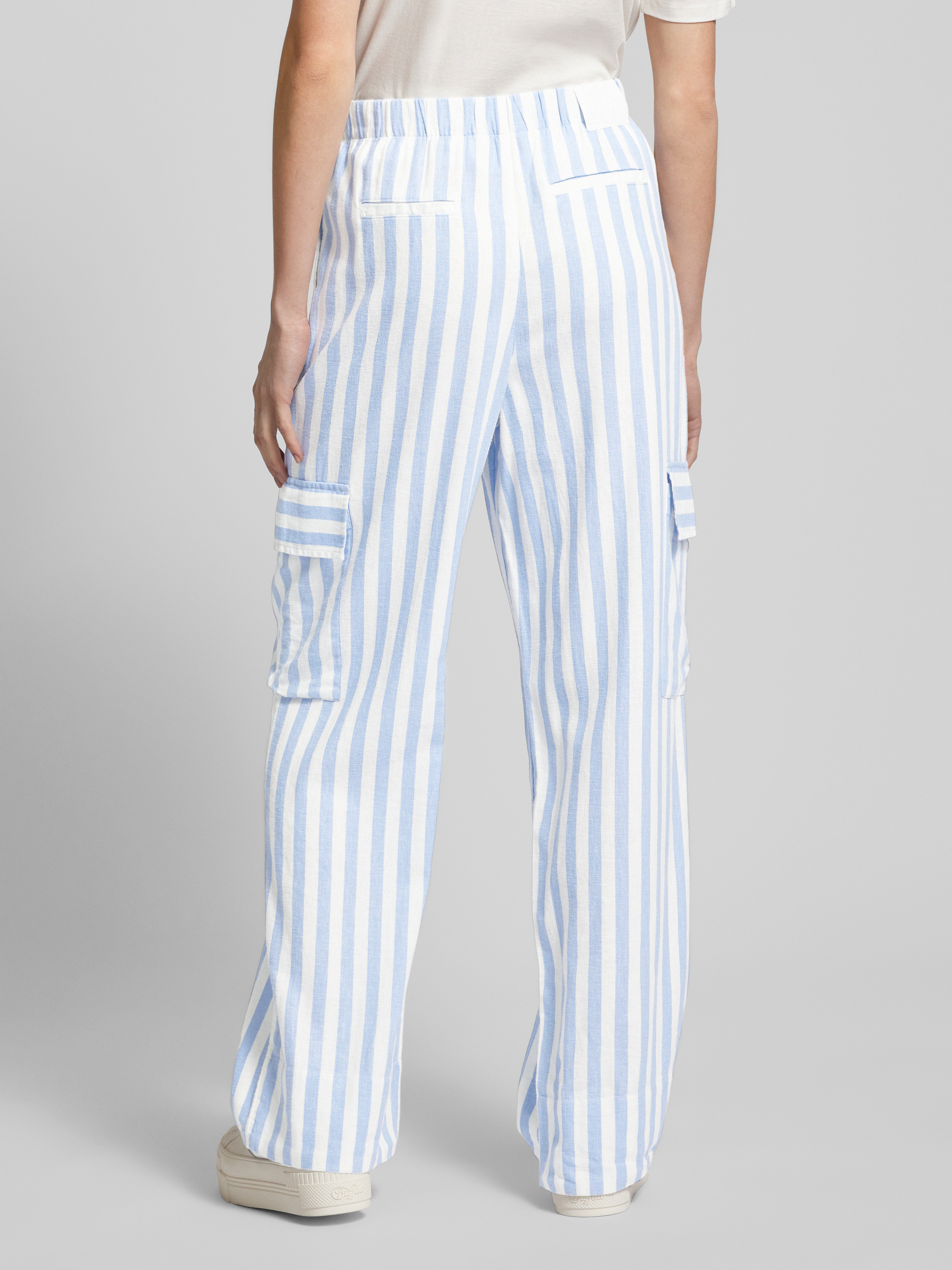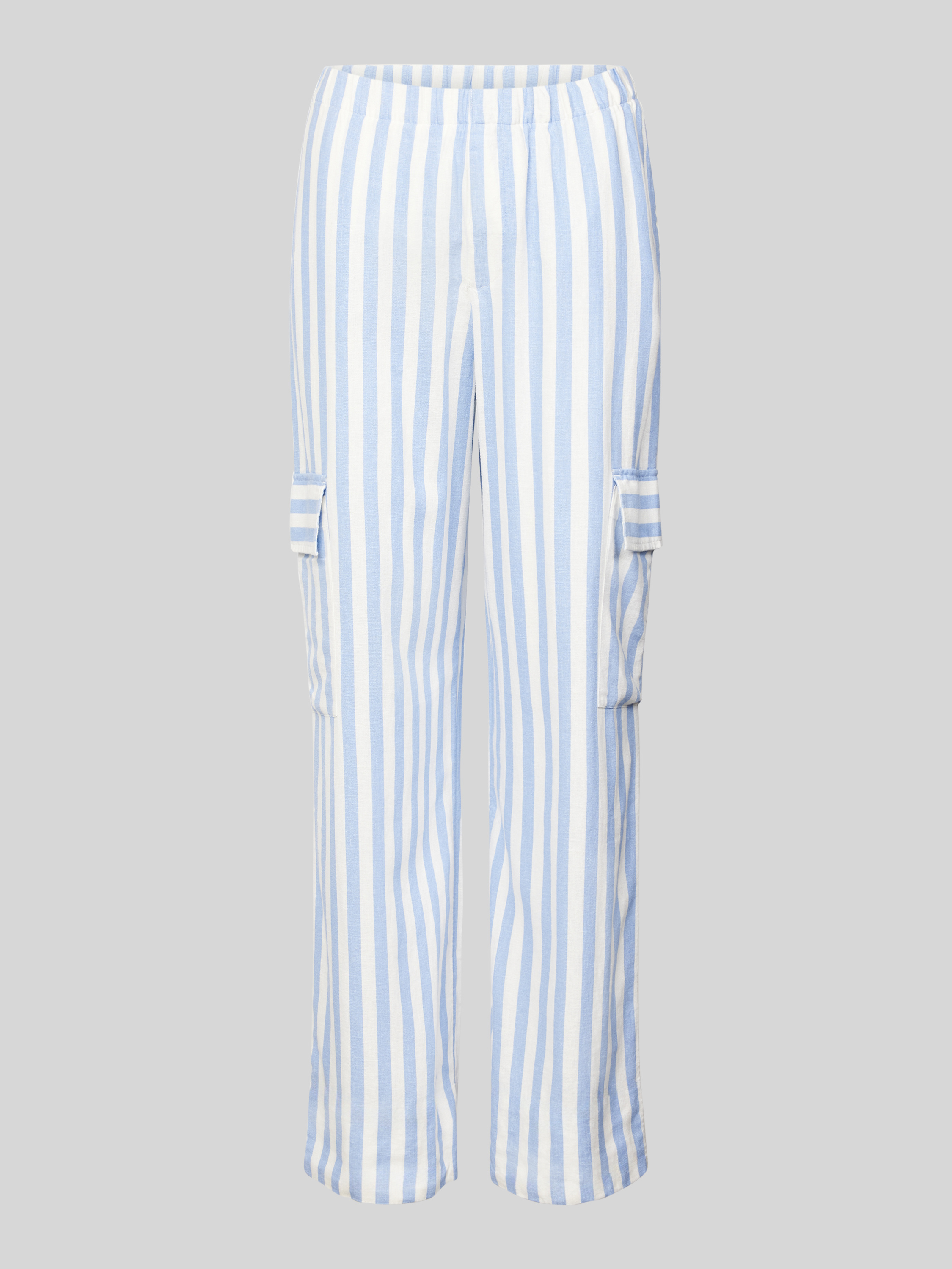 Regular fit linnen broek met cargozakken in lichtblauw