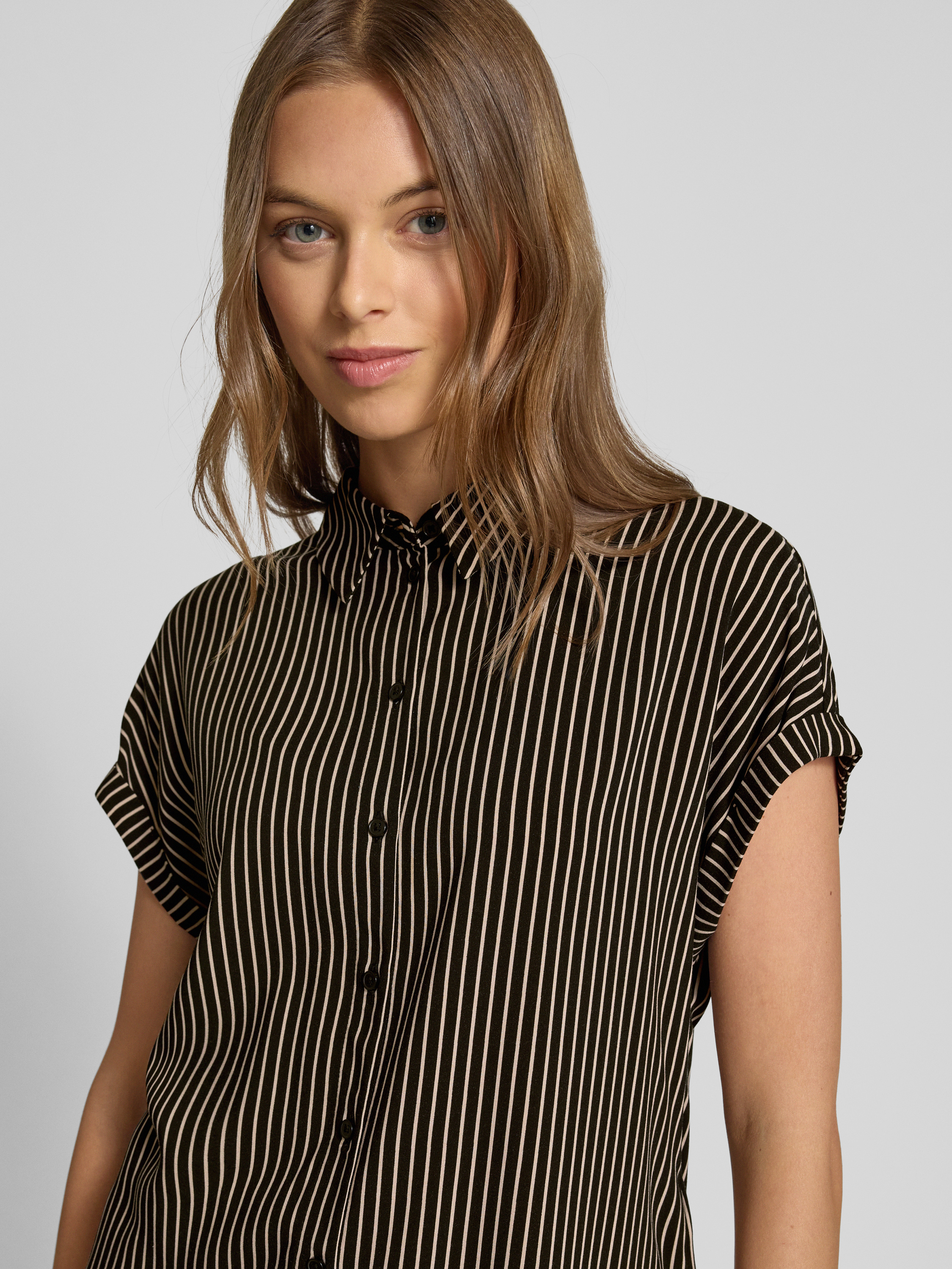 Regular fit overhemdblouse van pure viscose in beige