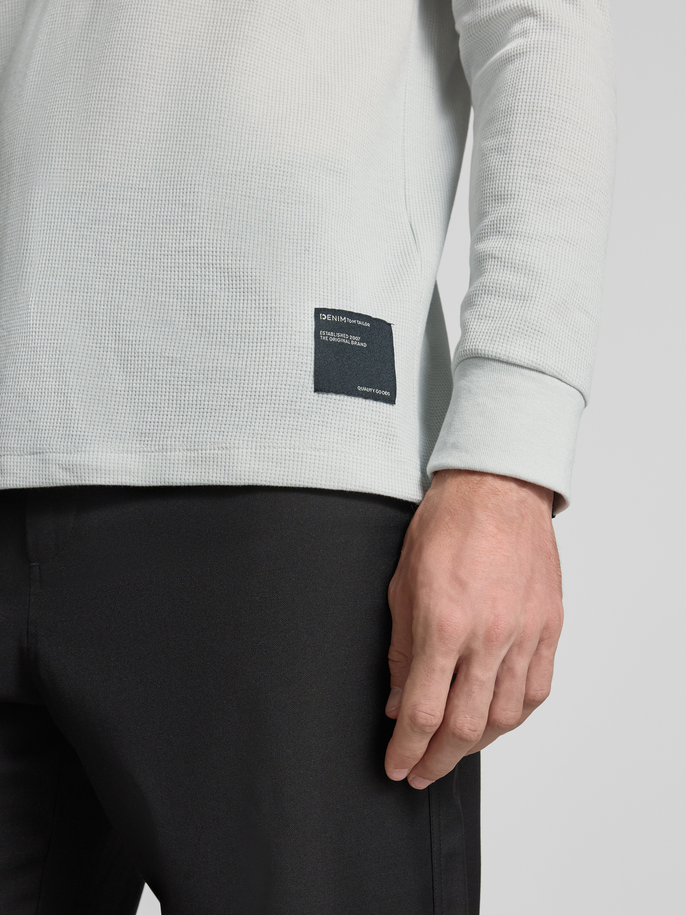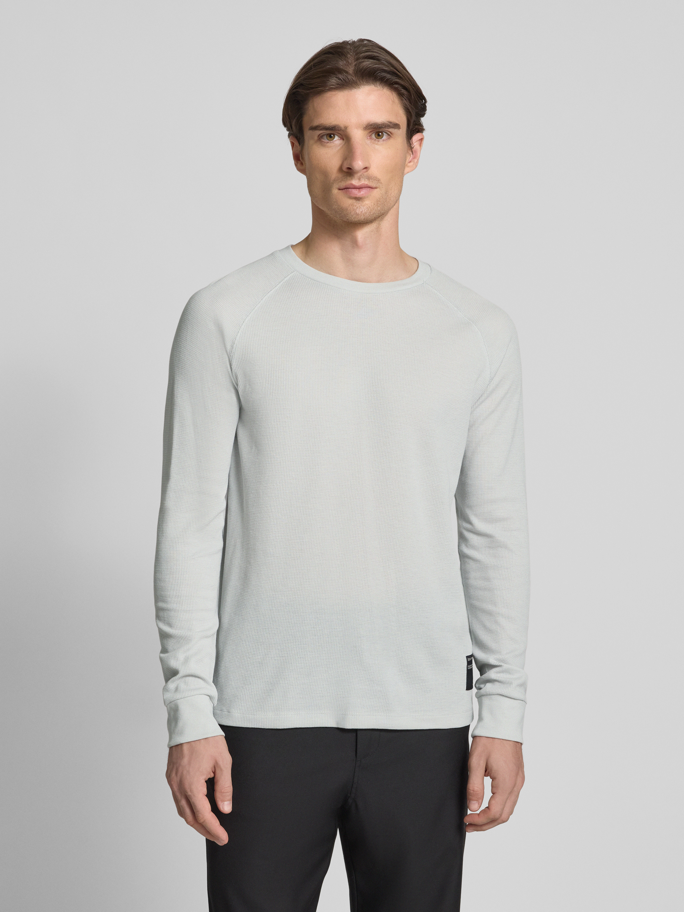 Regular fit shirt met lange mouwen en wafelstructuur in lichtgrijs
