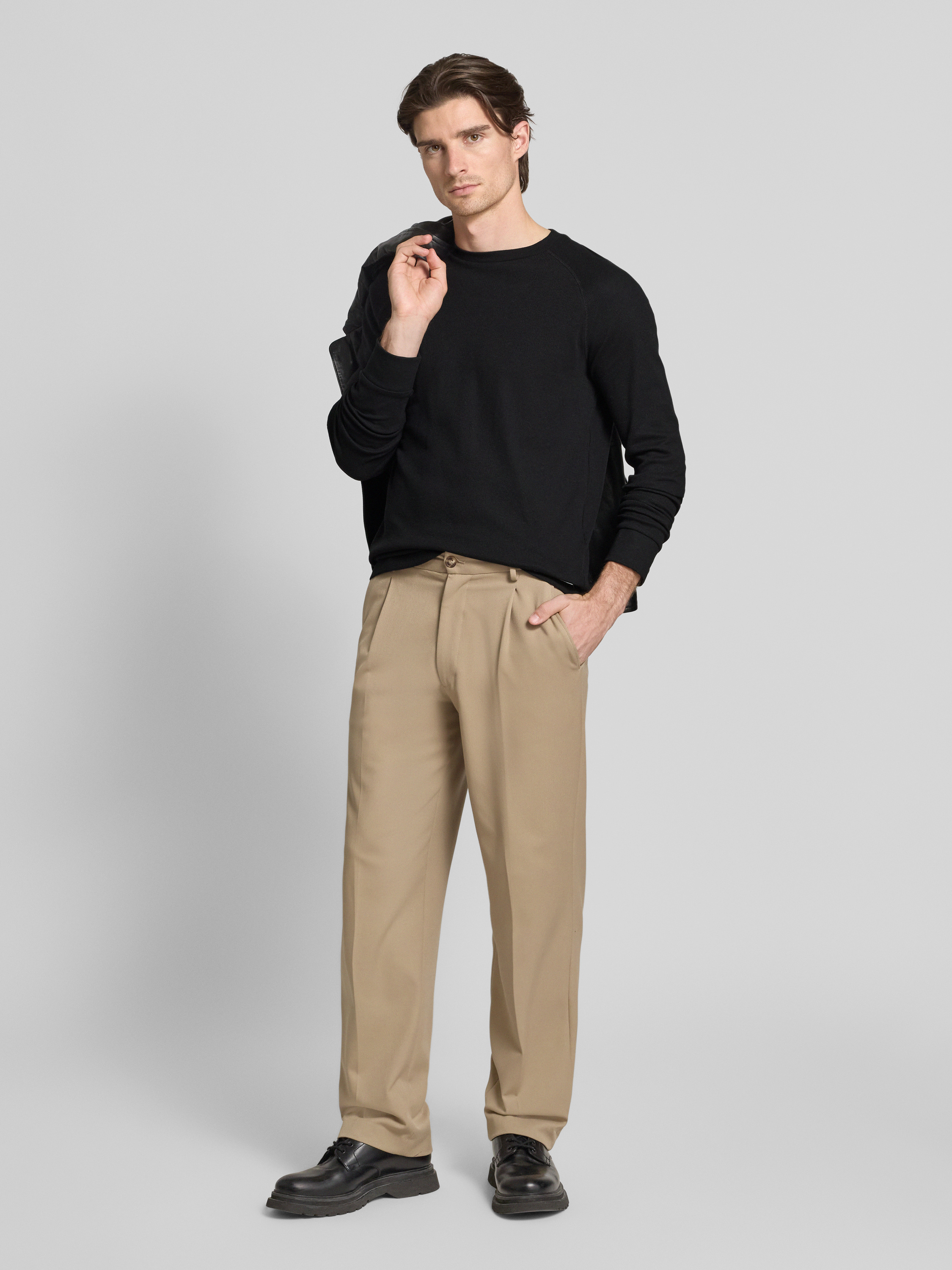 Loose fit bandplooibroek met riemlussen, model 'FINN'