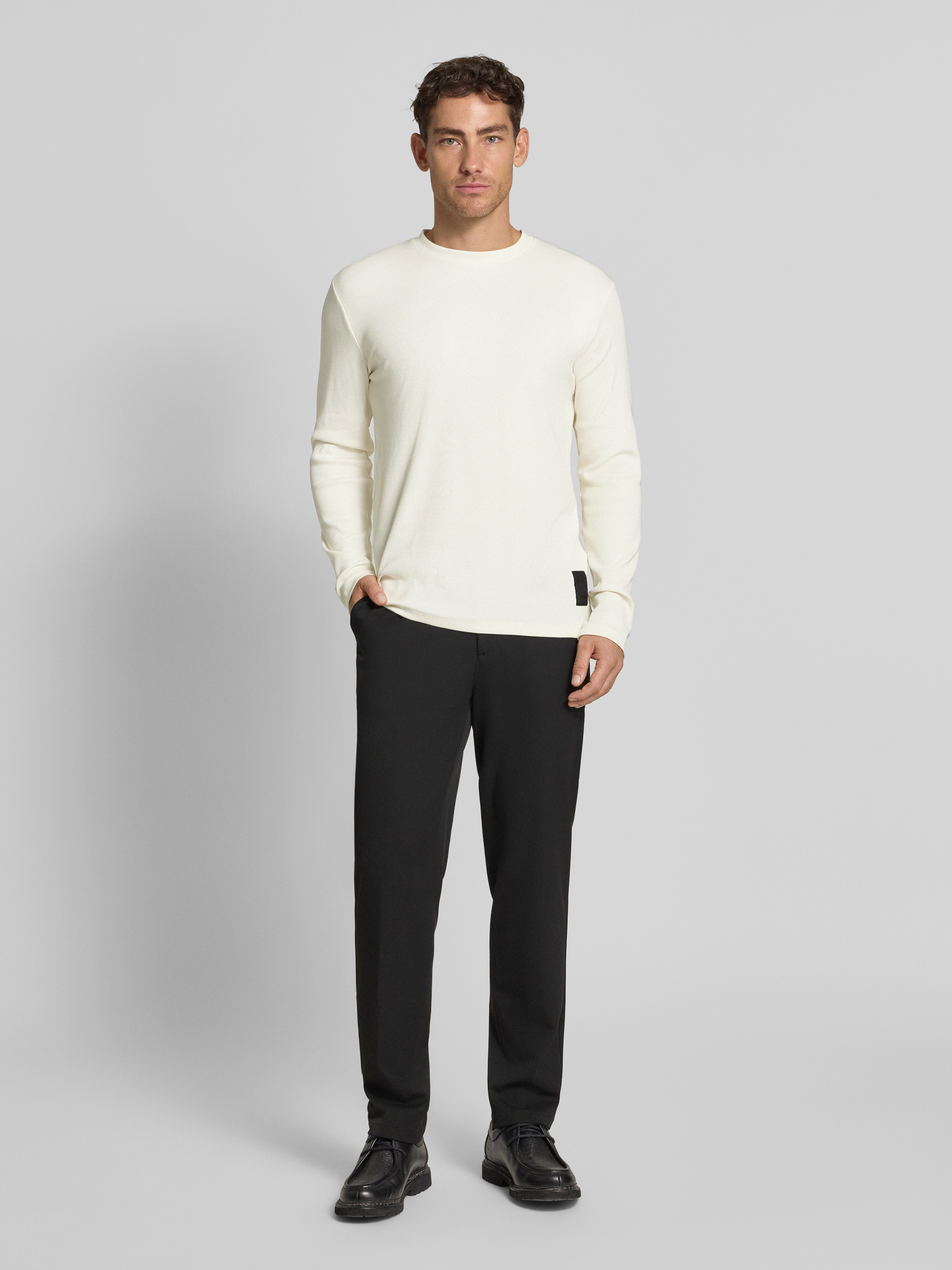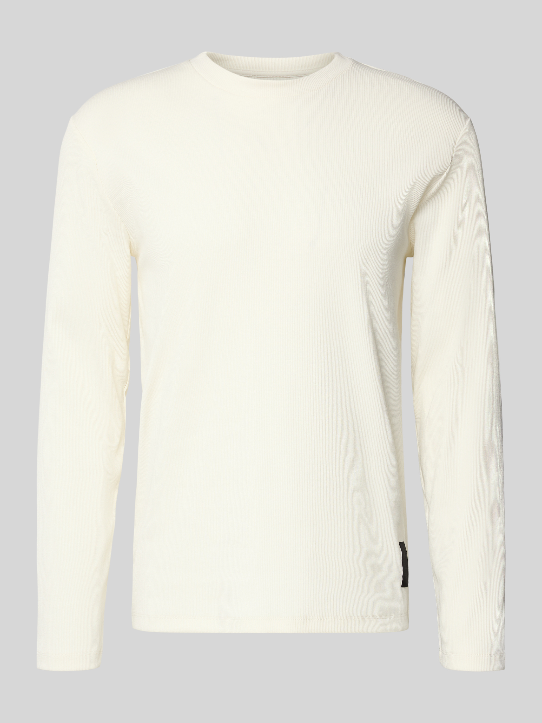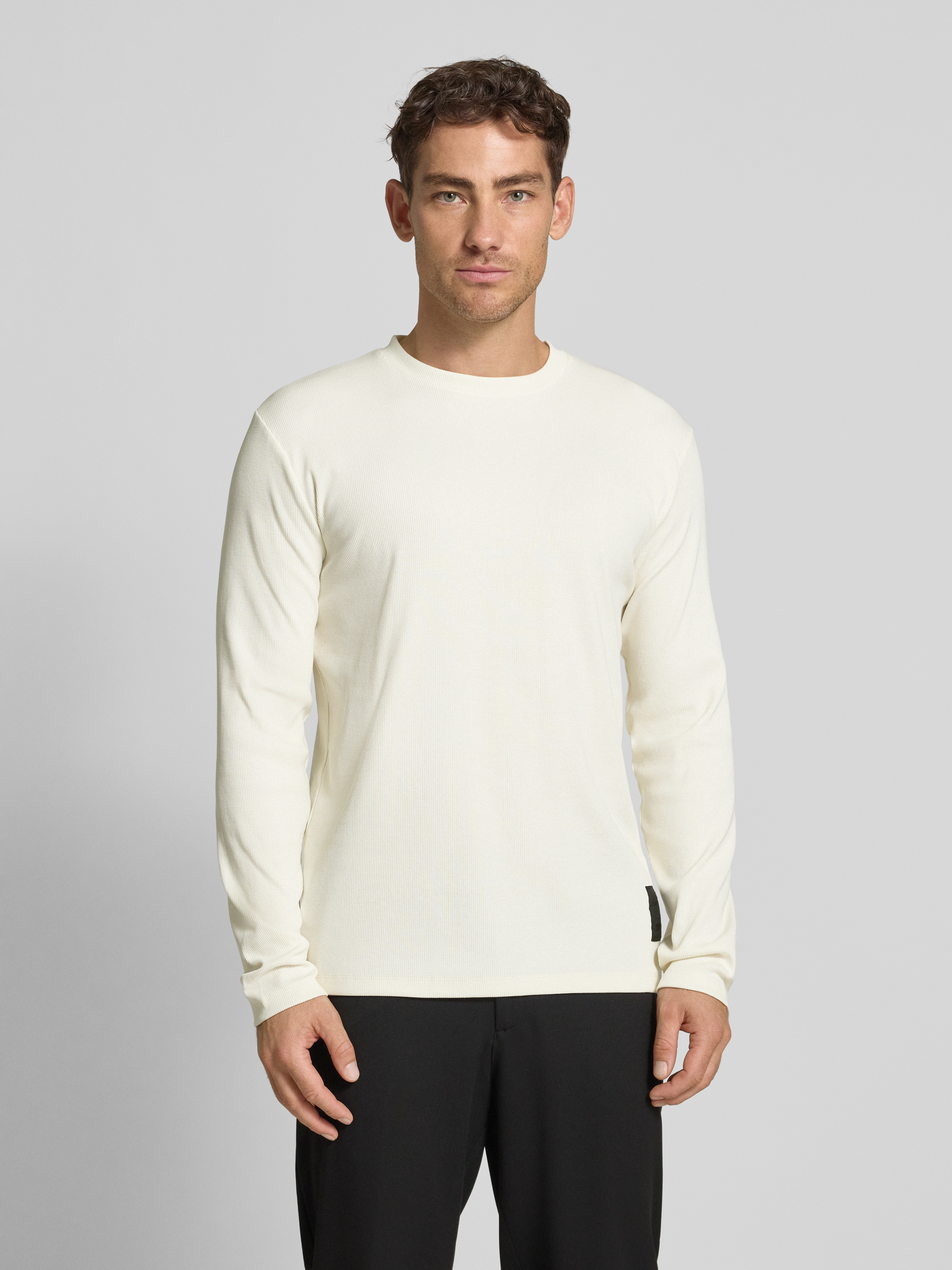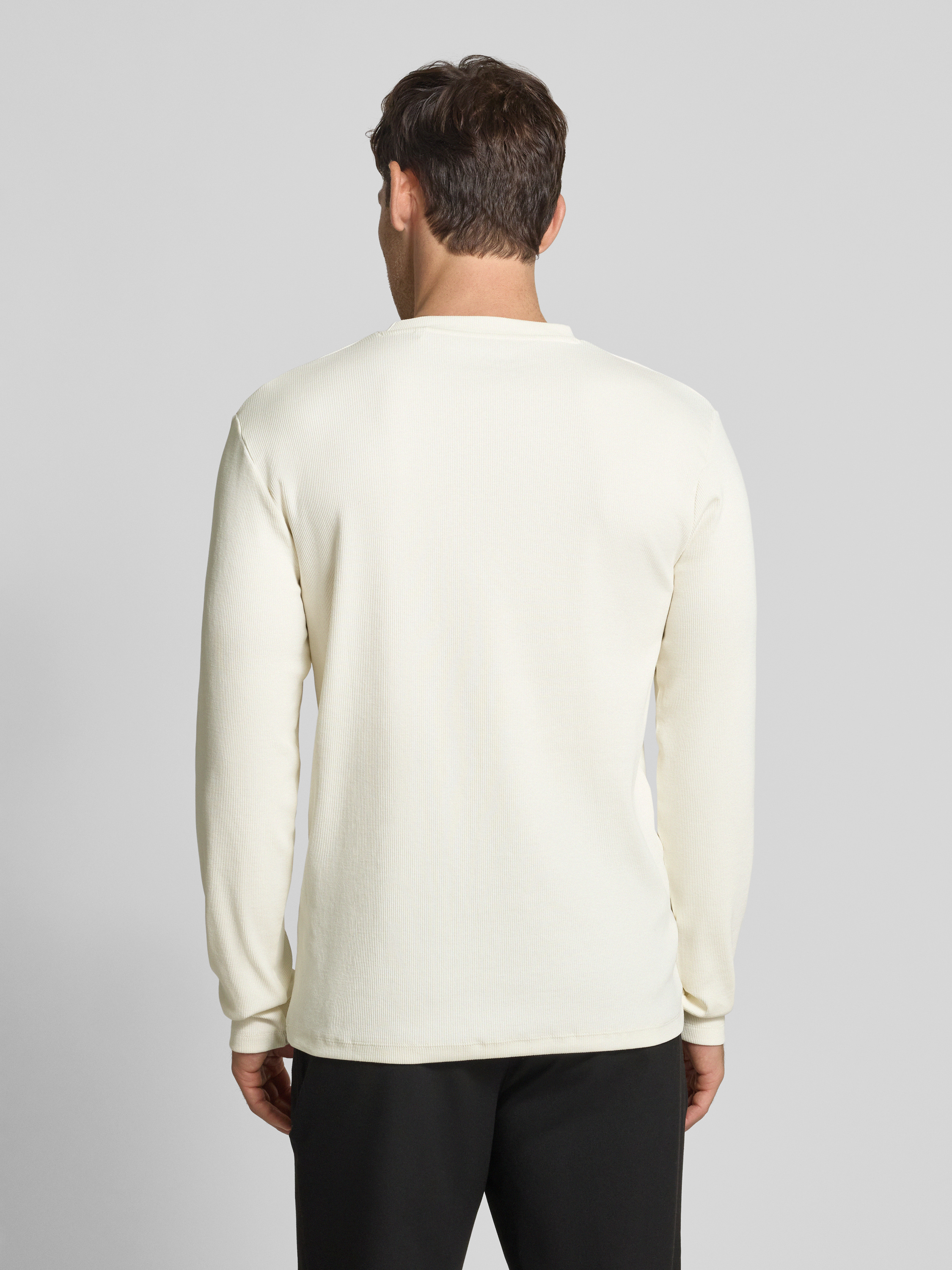 Regular fit shirt met lange mouwen van geribde katoenmix in offwhite