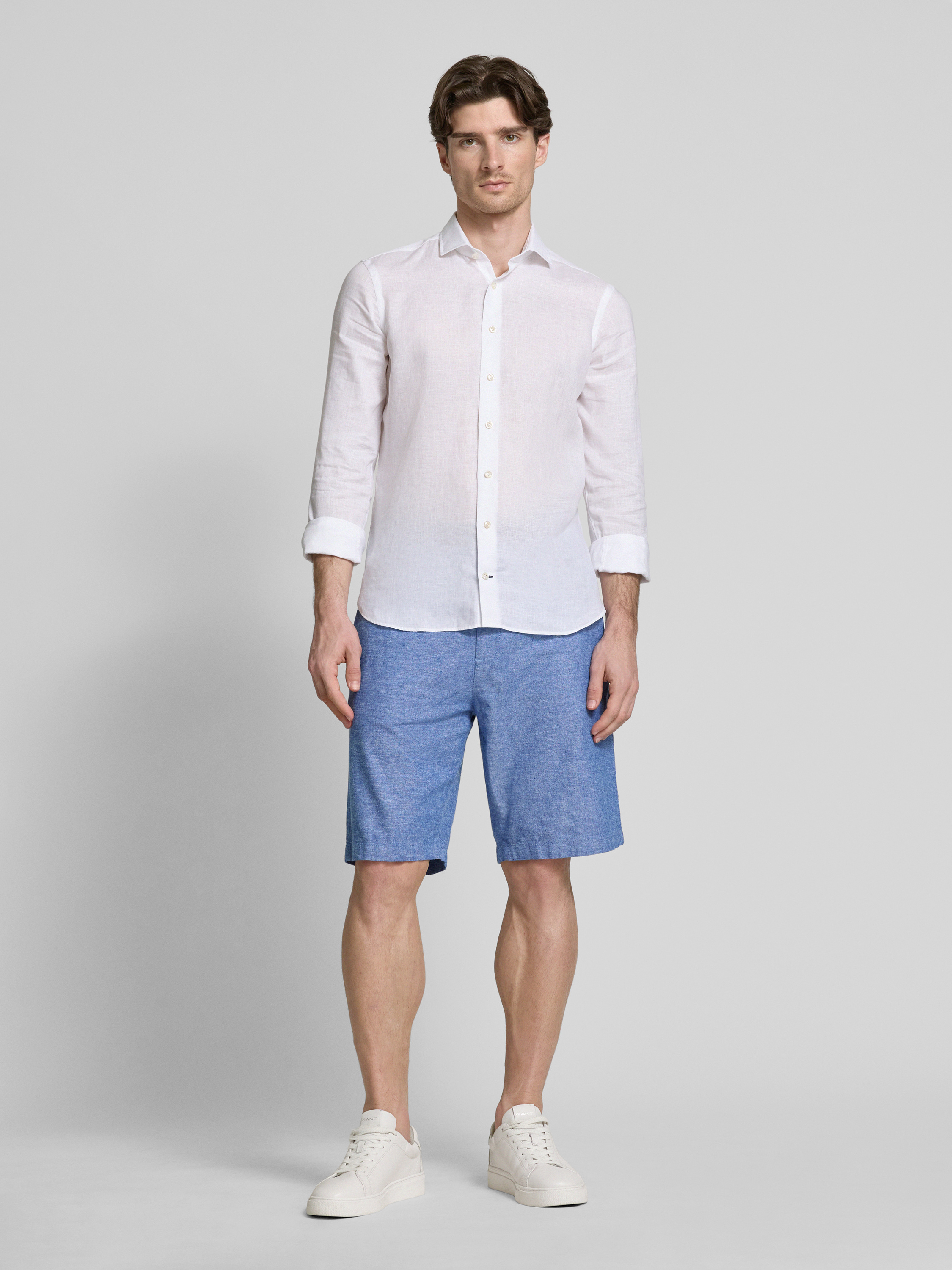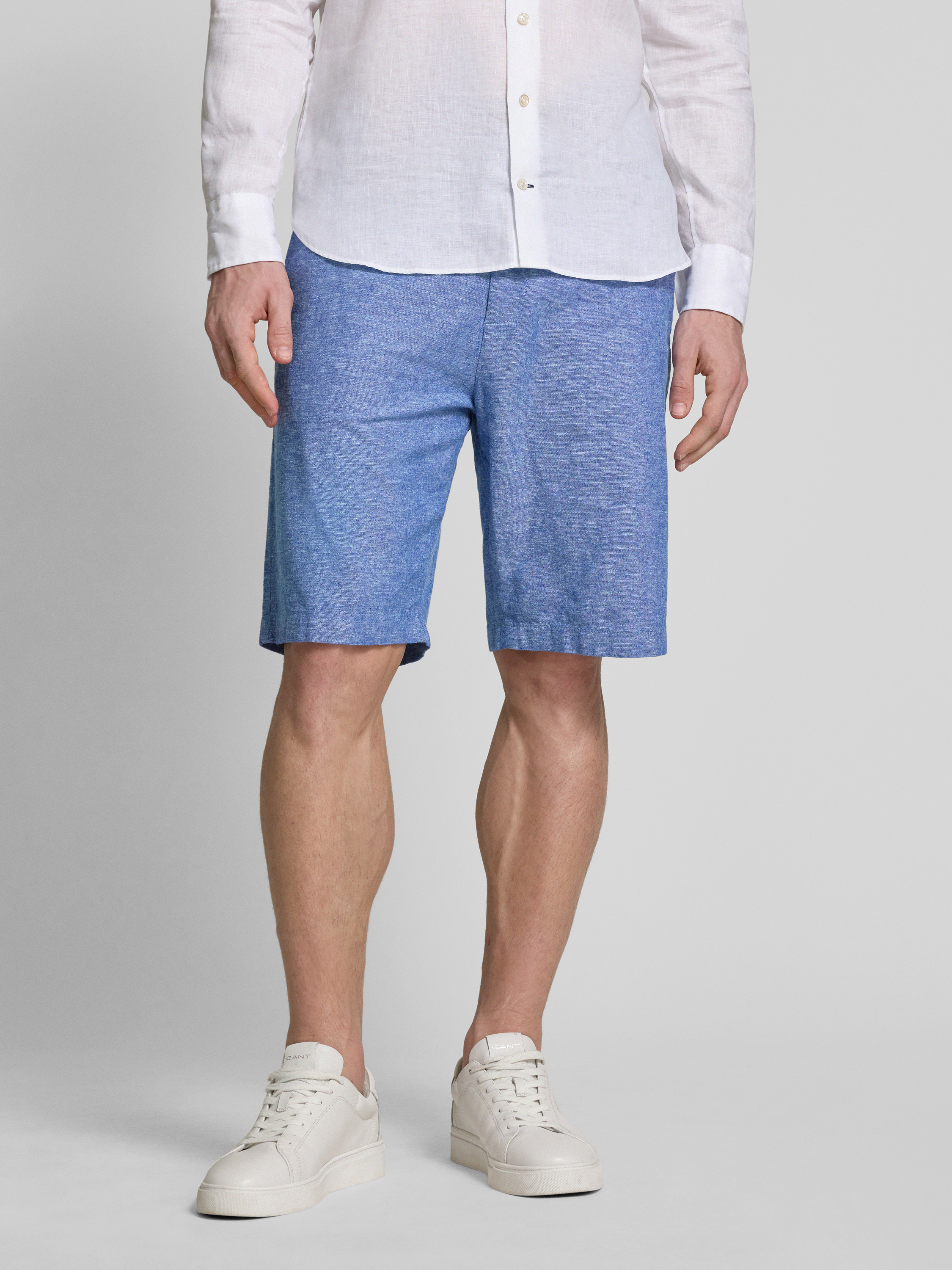 Relaxed fit korte chino van een mix van linnen en katoen in lichtblauw gemêleerd