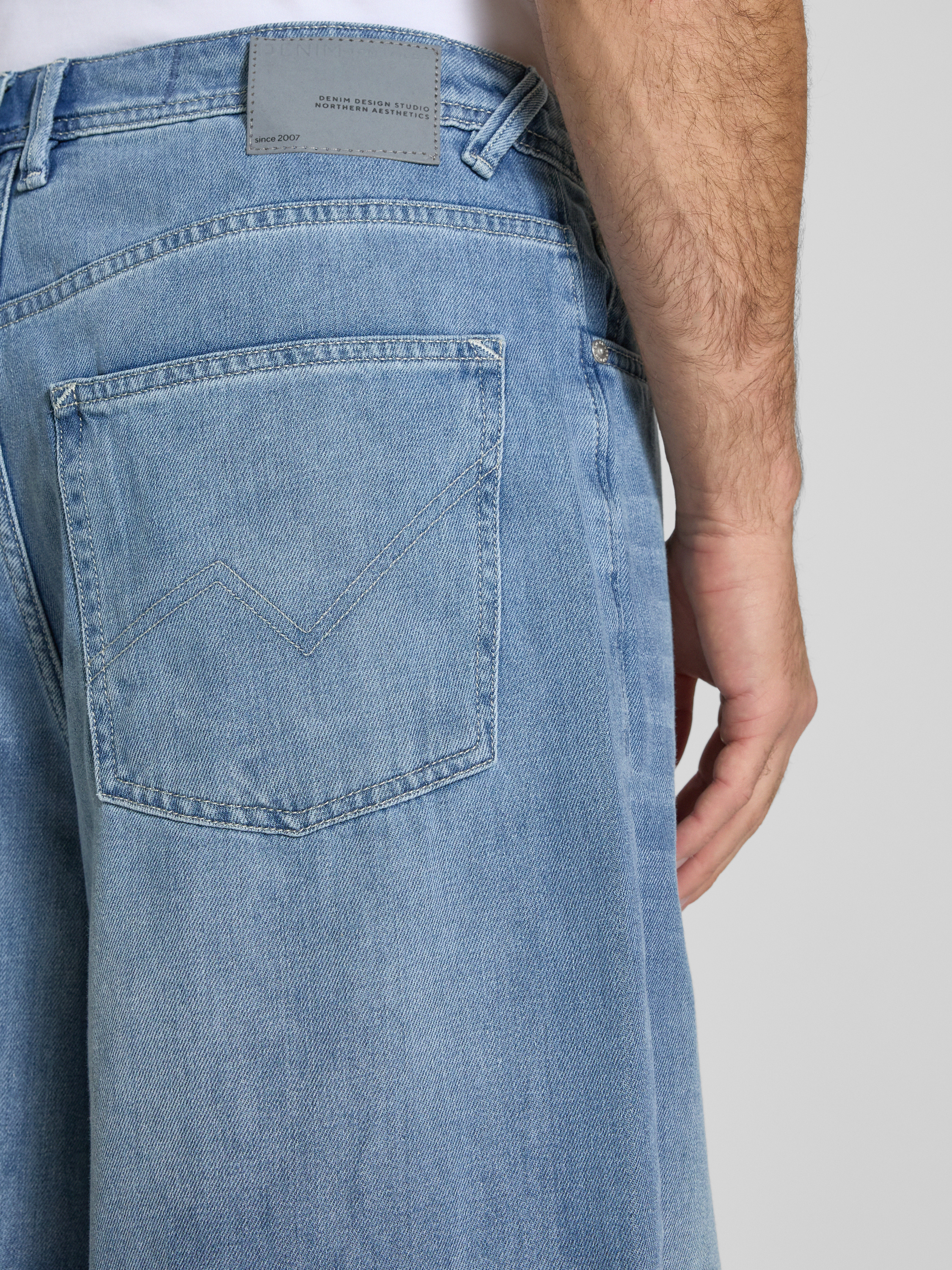 Relaxed fit korte jeans van pure katoen, model 'BAGGY' in jeansblauw