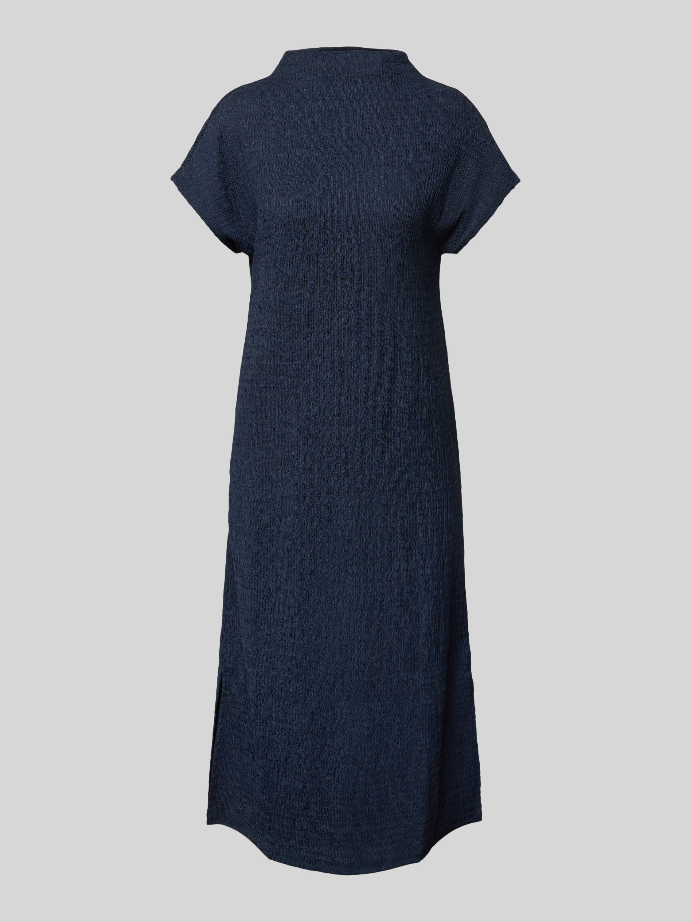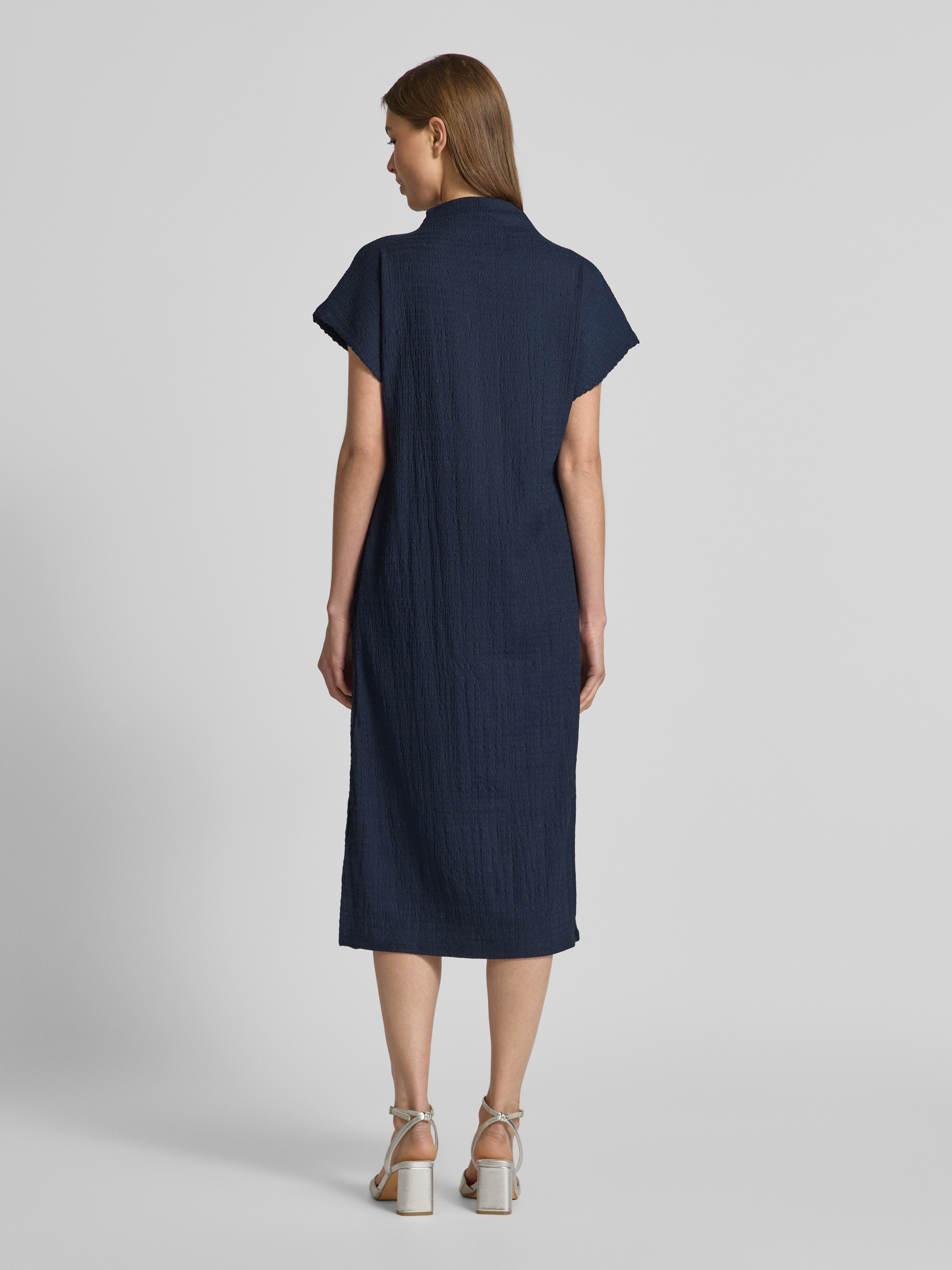 Soepele midi-jurk met opstaande kraag in donkerblauw