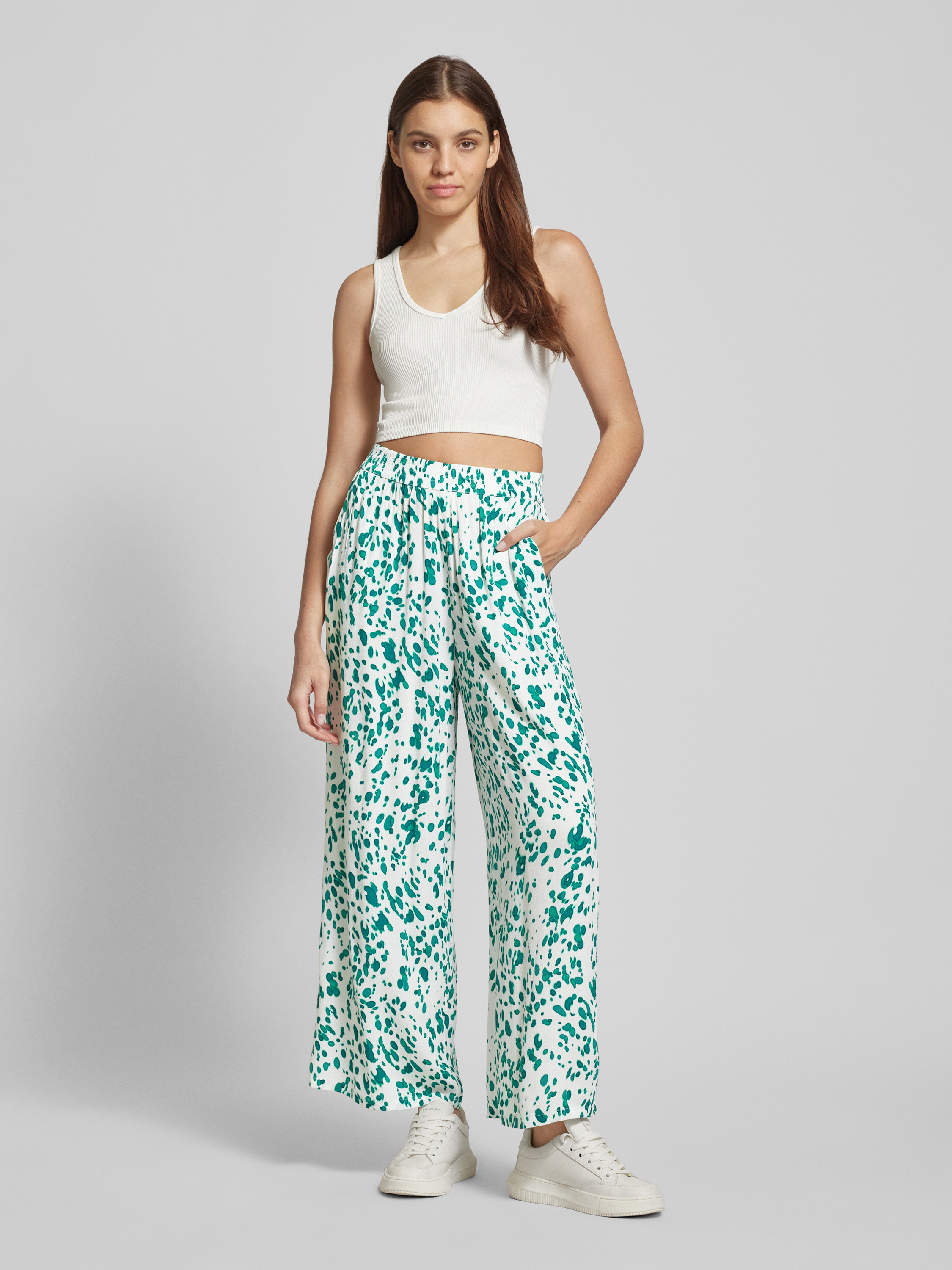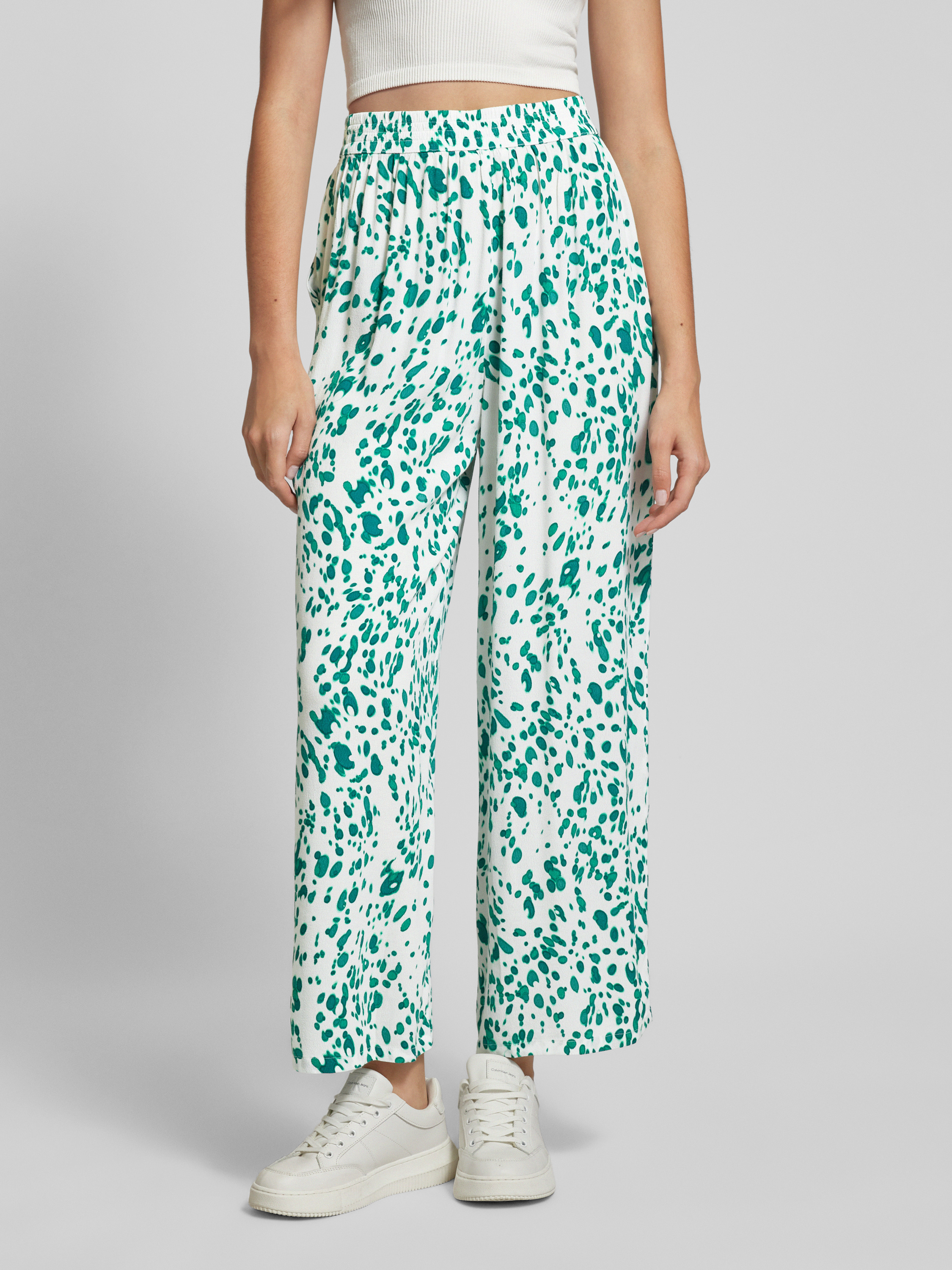 Stoffen broek van viscose met elastische band, model 'Fluid' in wit