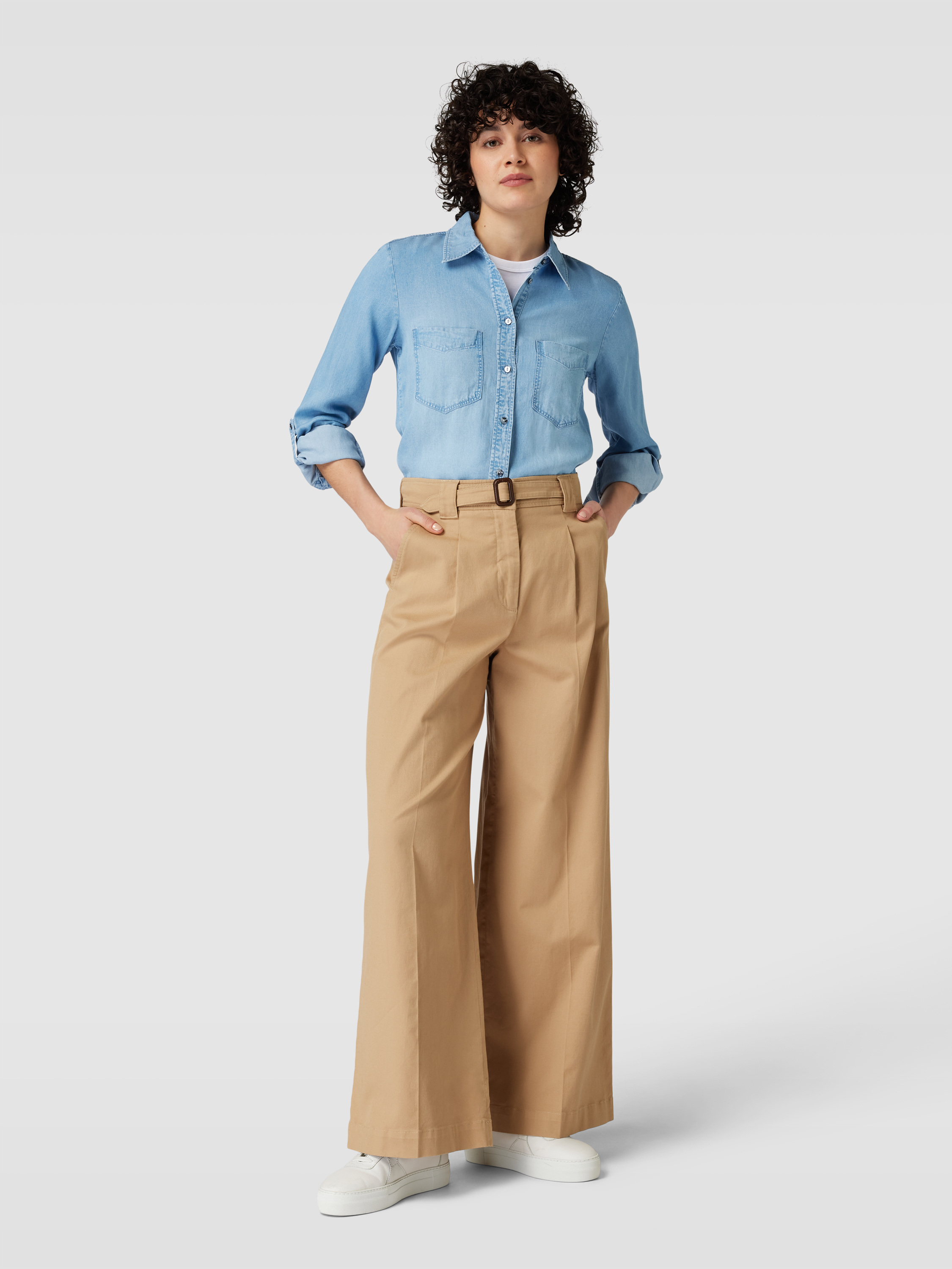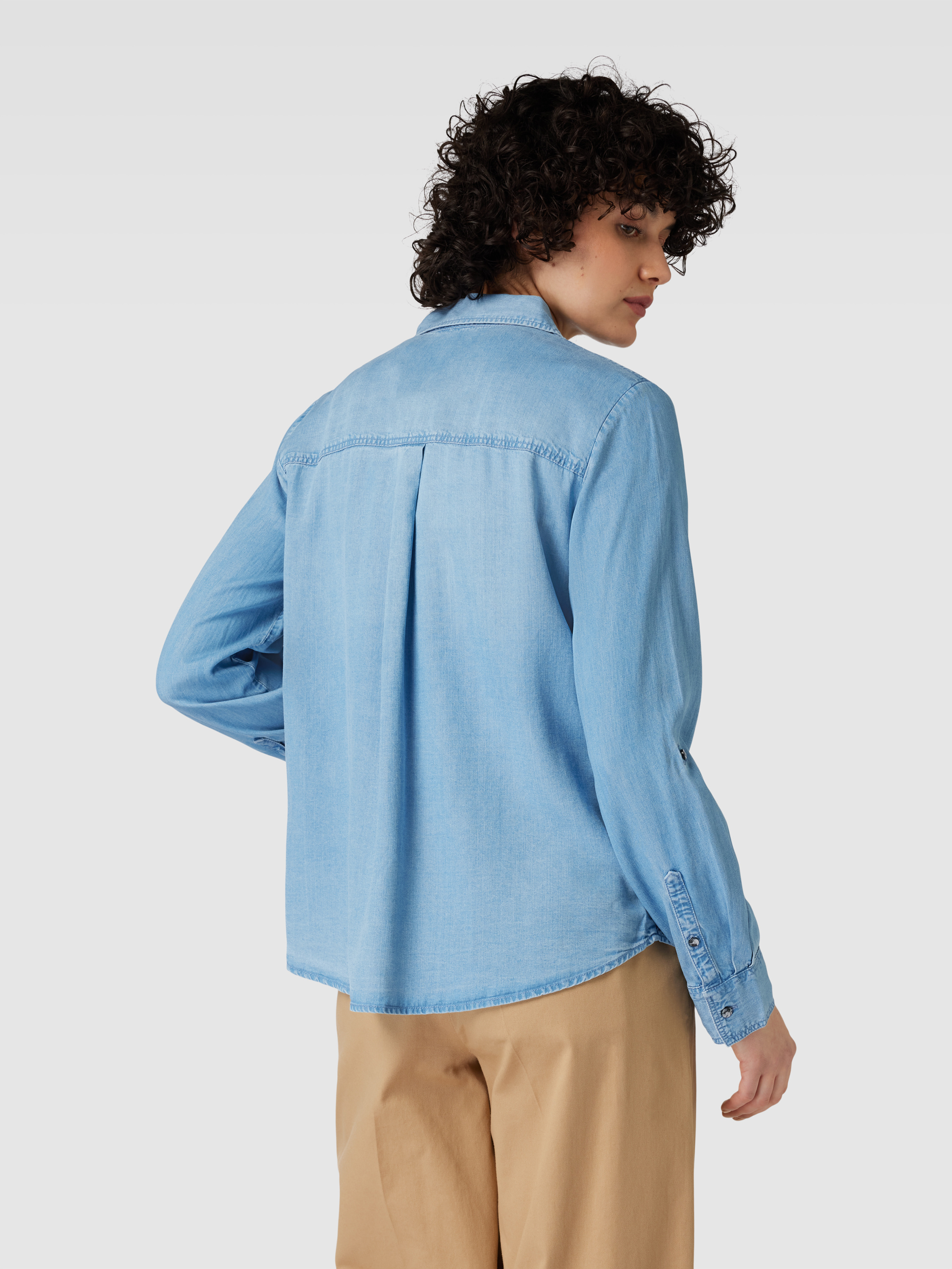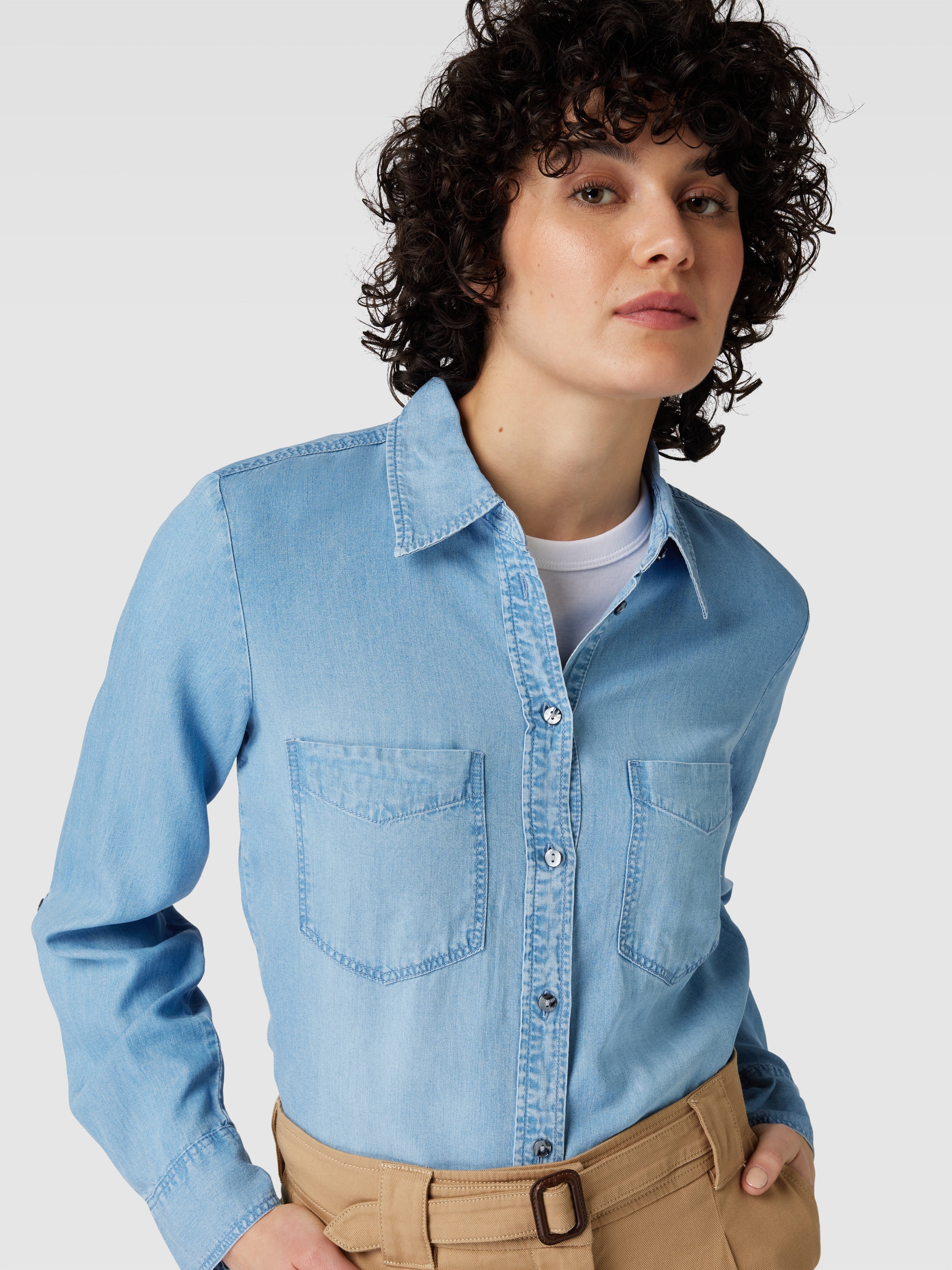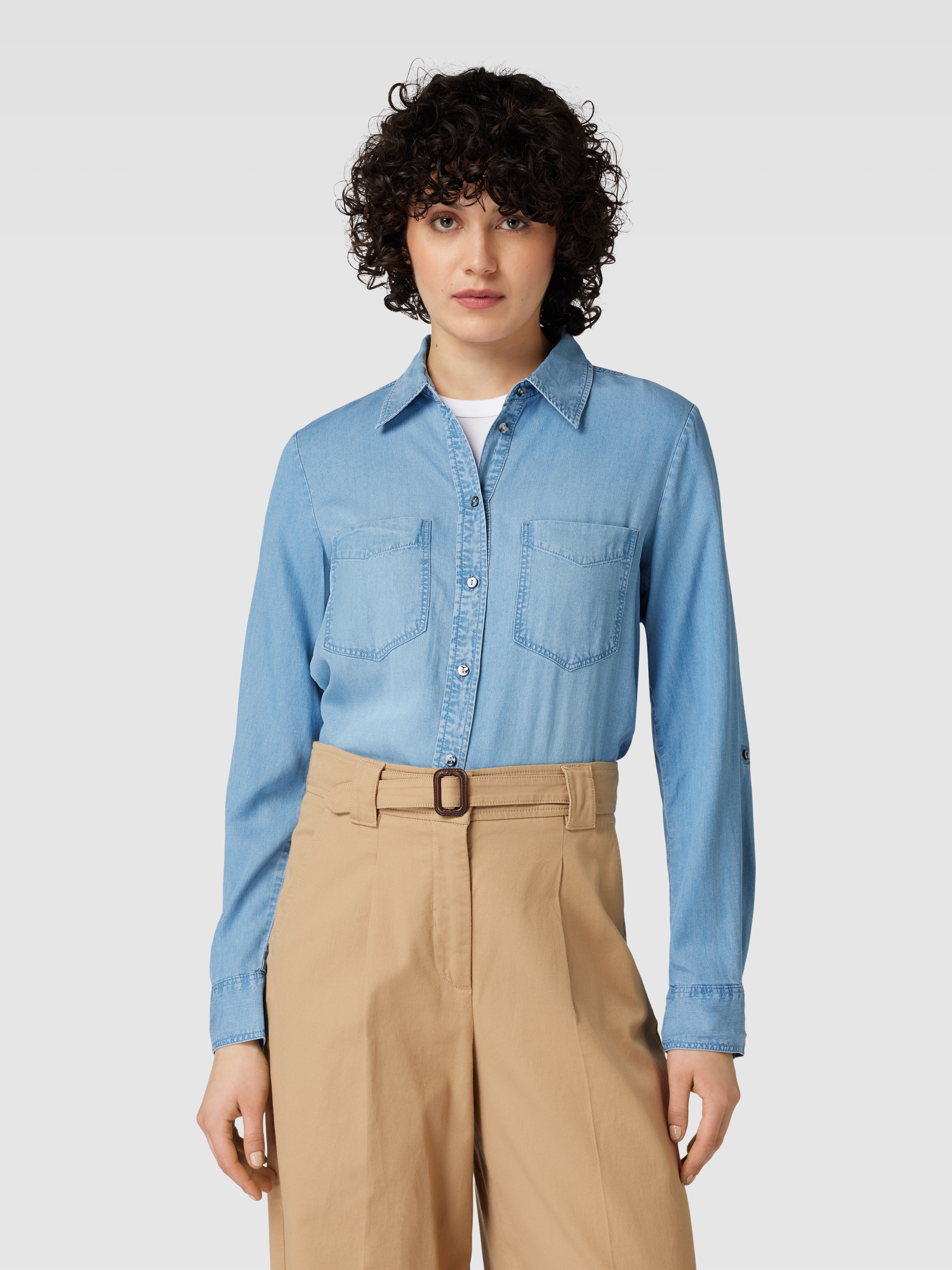 Jeansblouse met borstzakken in jeansblauw