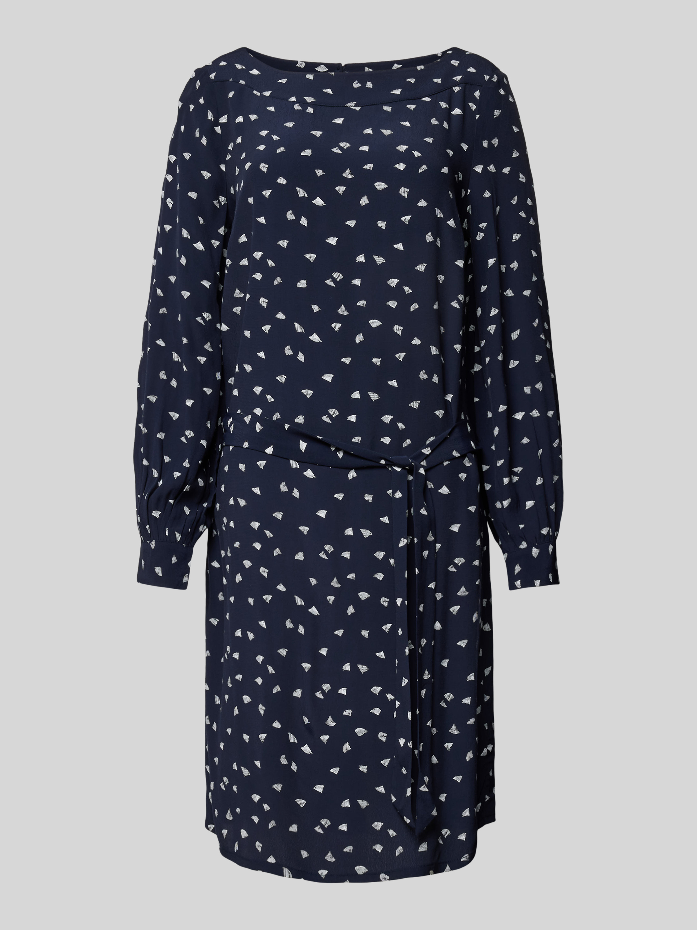 Knielange jurk met all-over motief in marineblauw