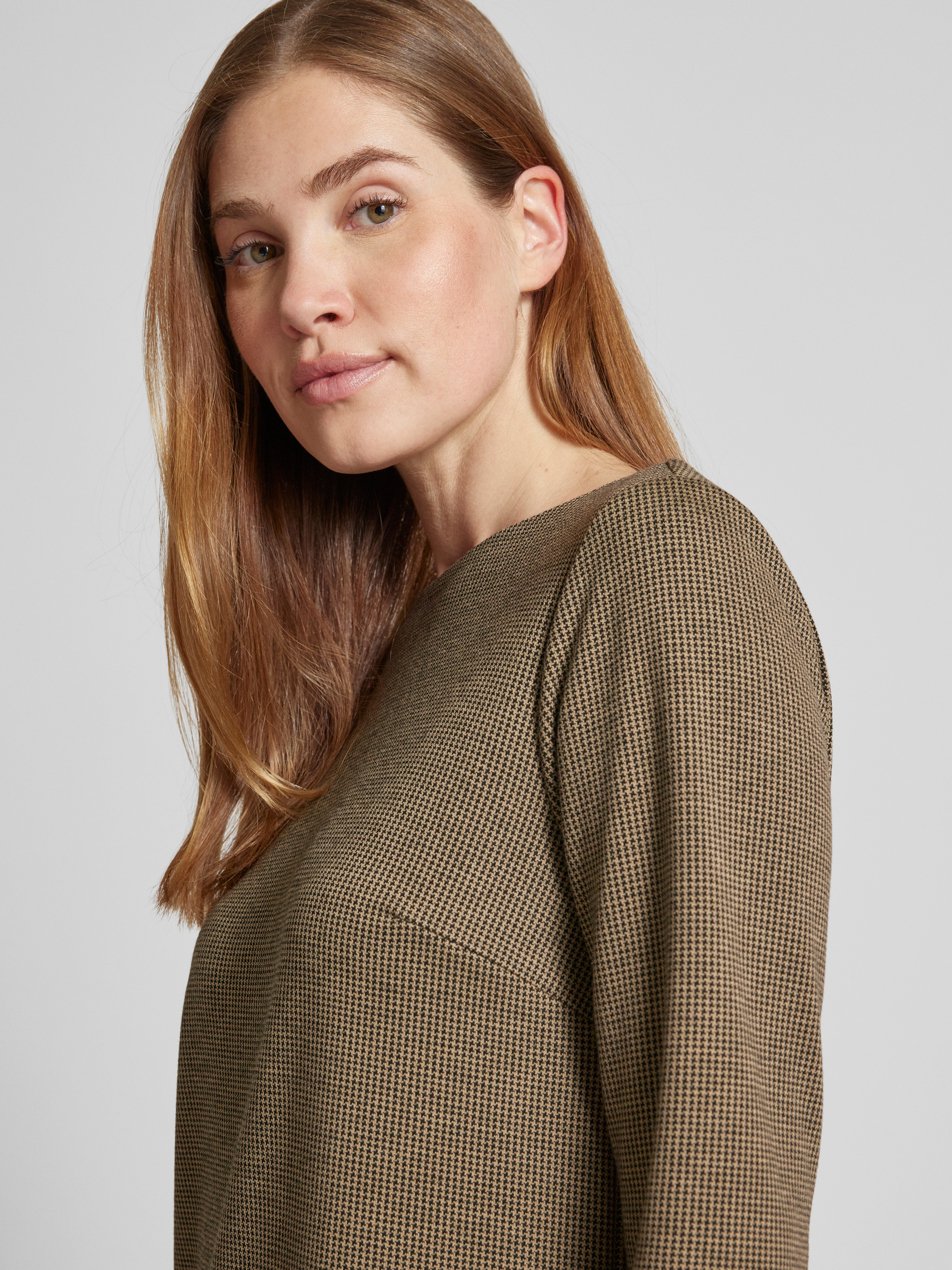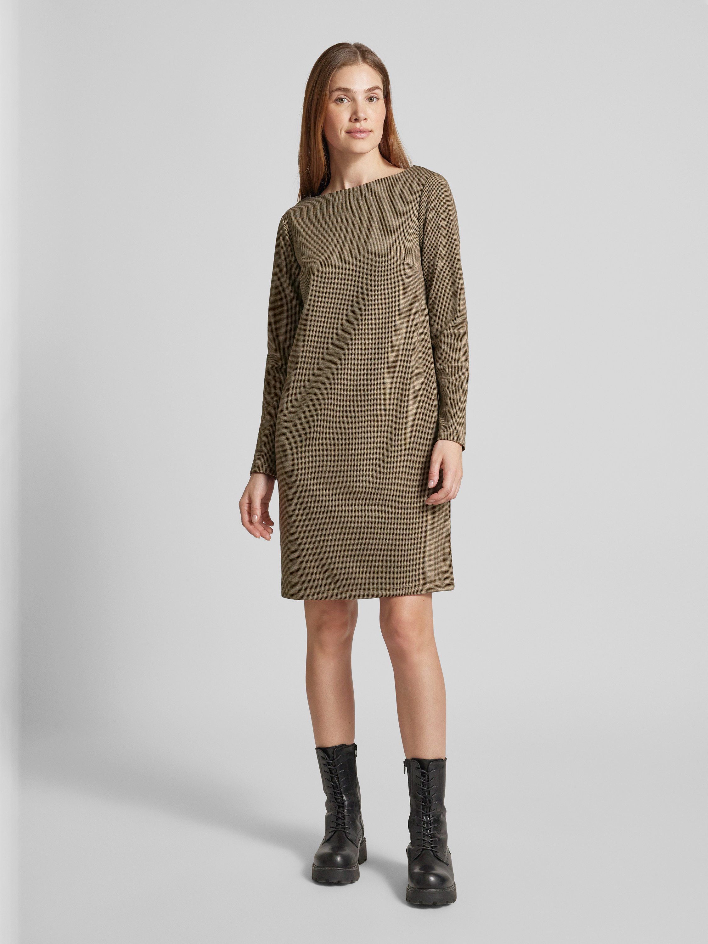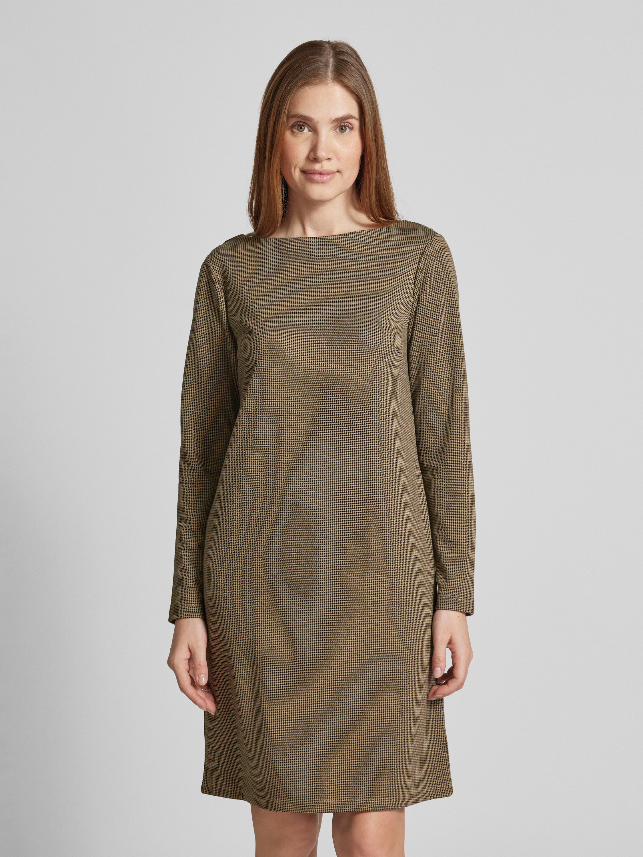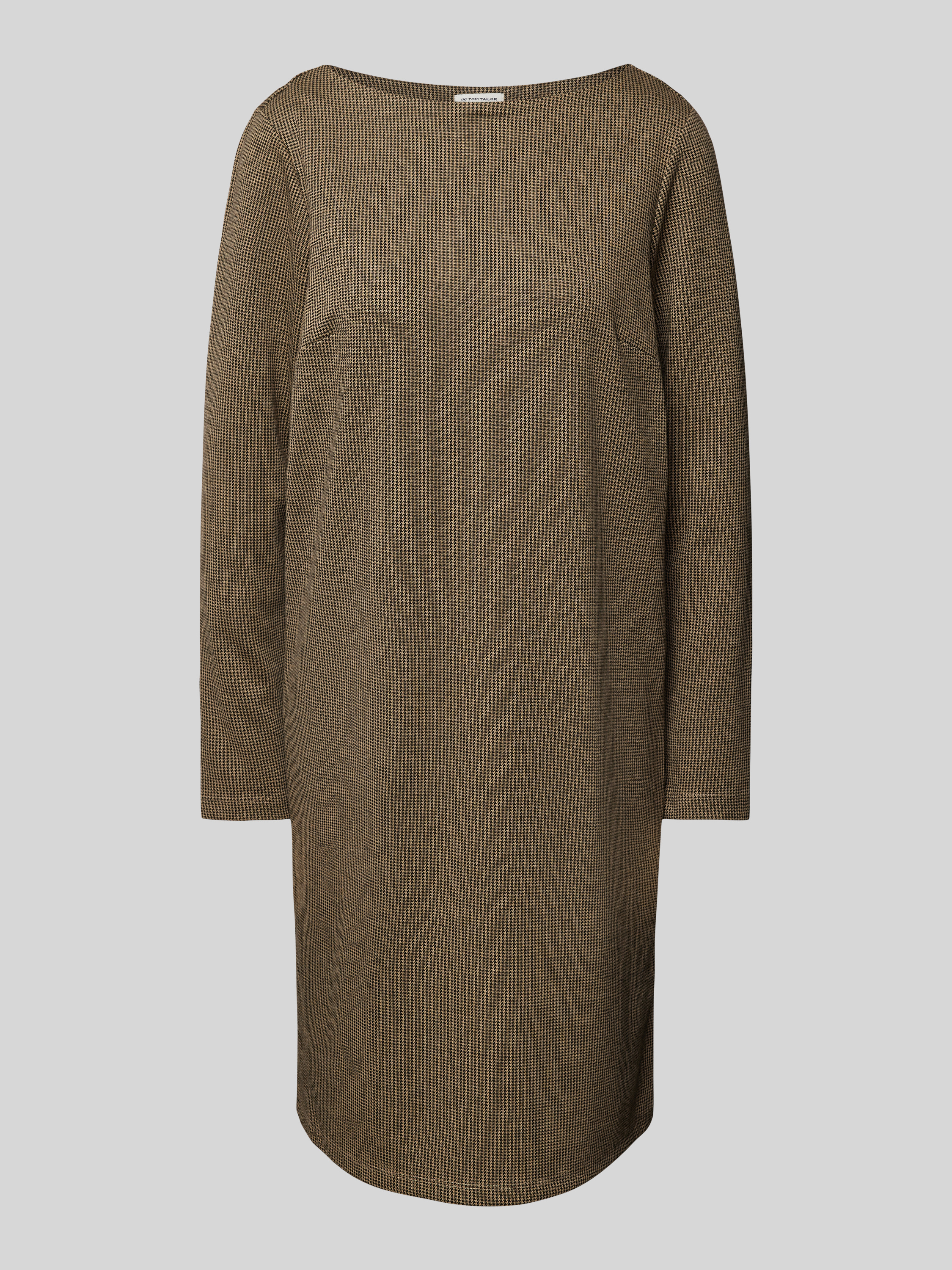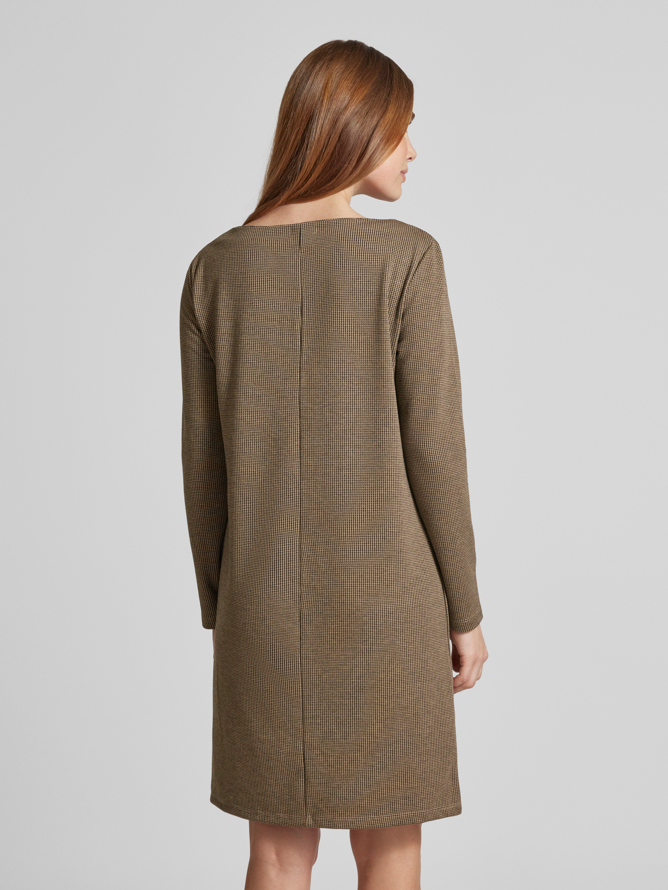Mini-jurk van jacquard met pied-de-poule en boothals in beige