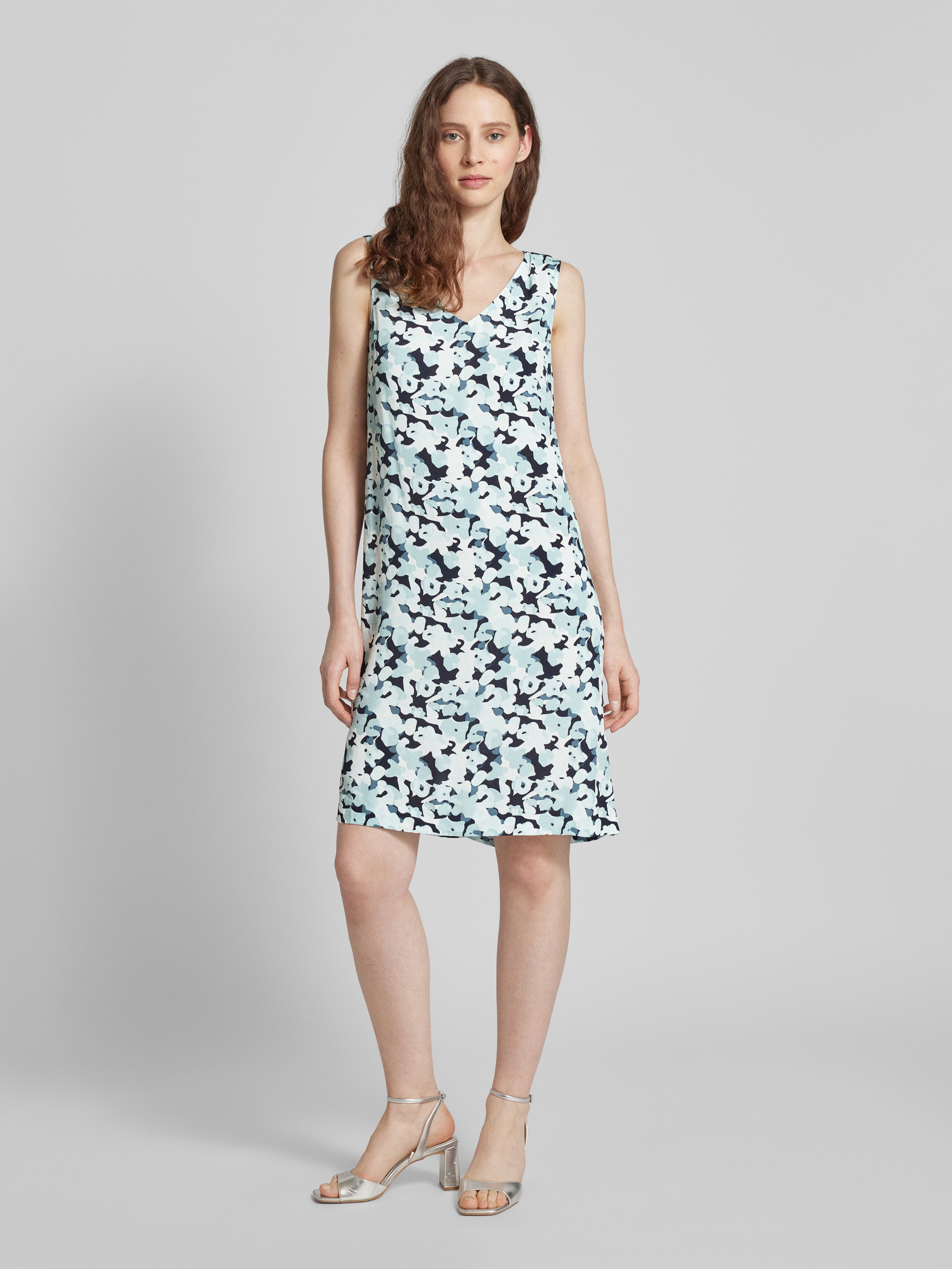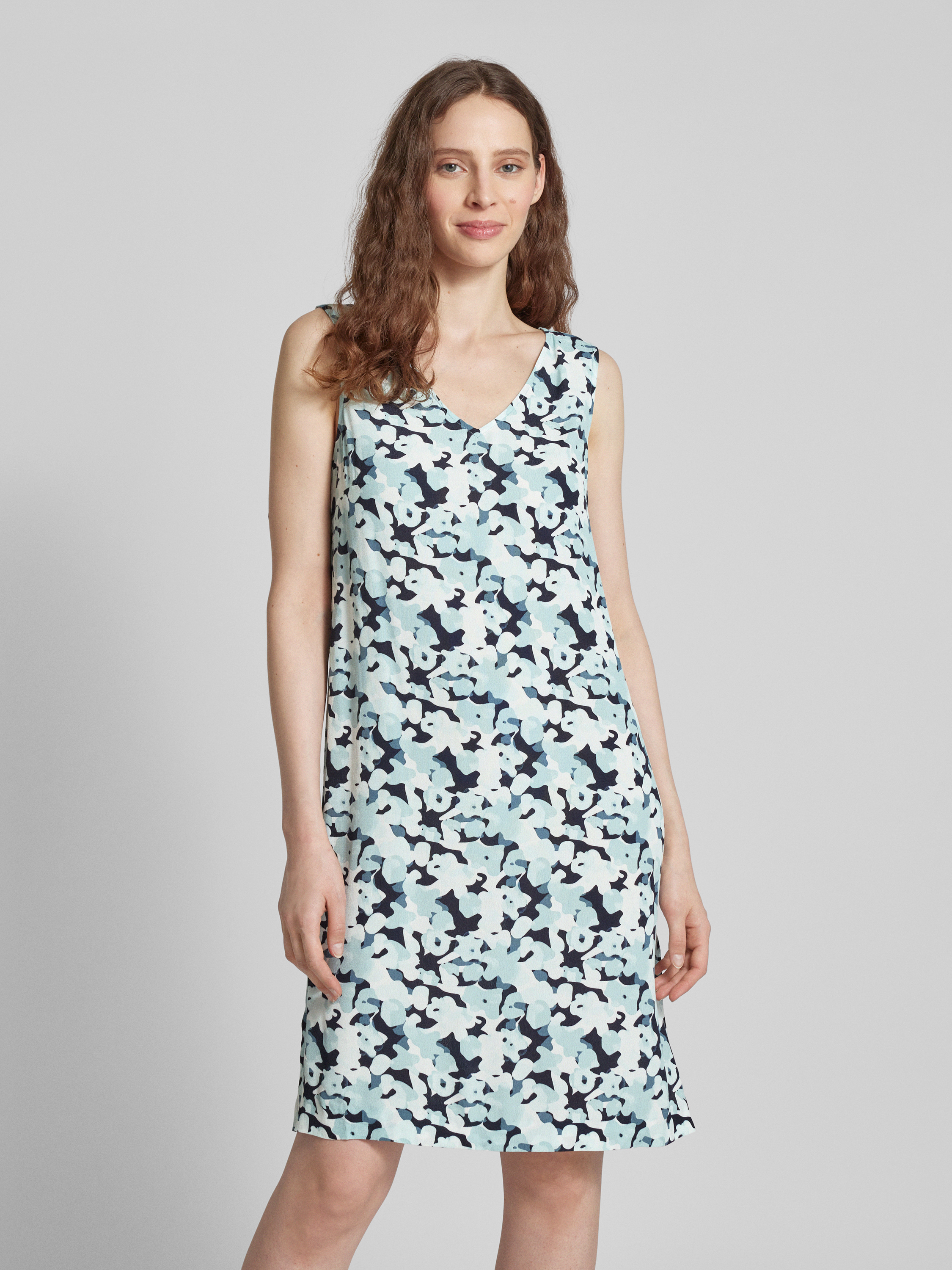 Tom TailorMini-jurk van viscose met bloemenmotief en V-hals in marineblauw