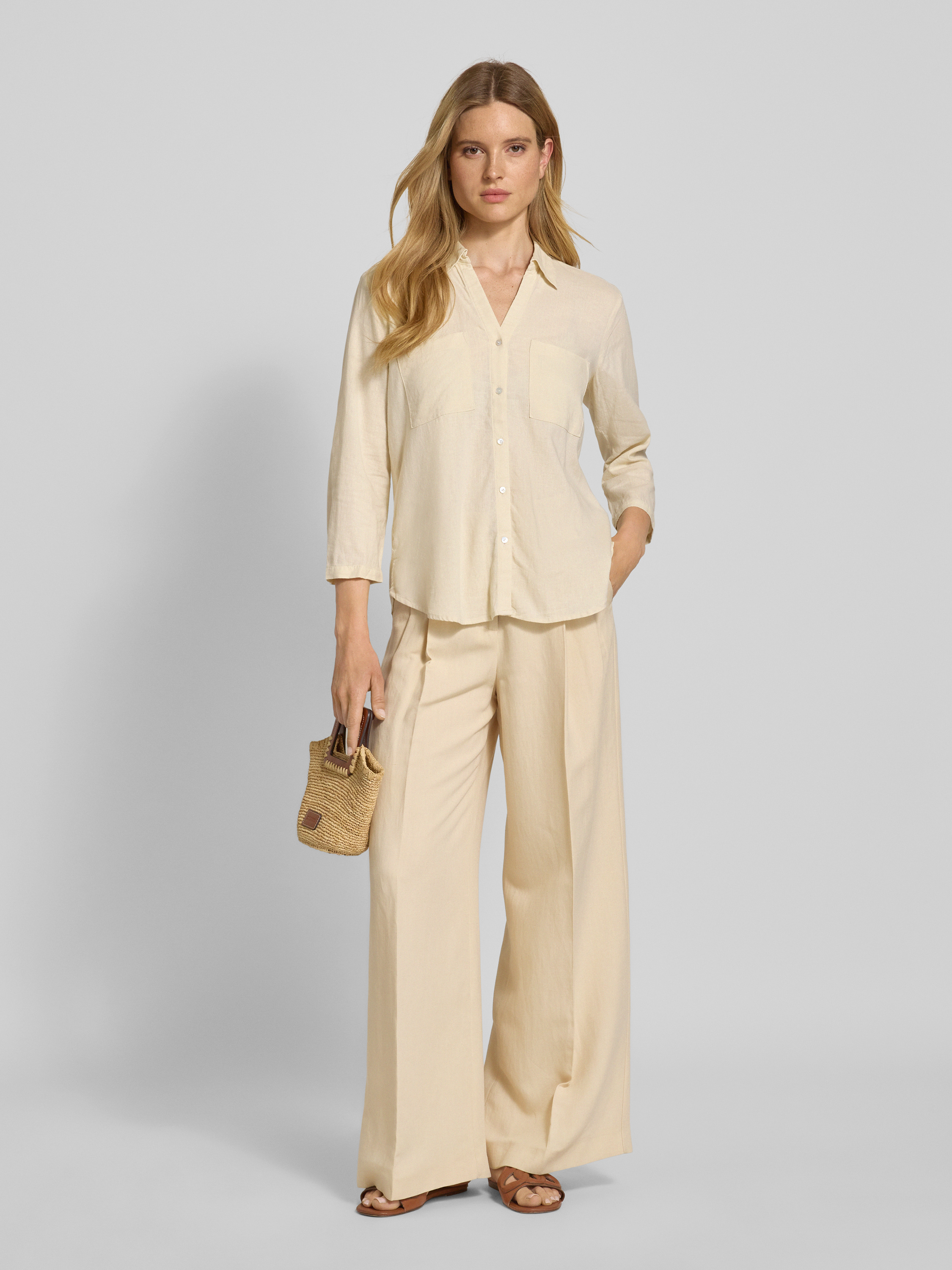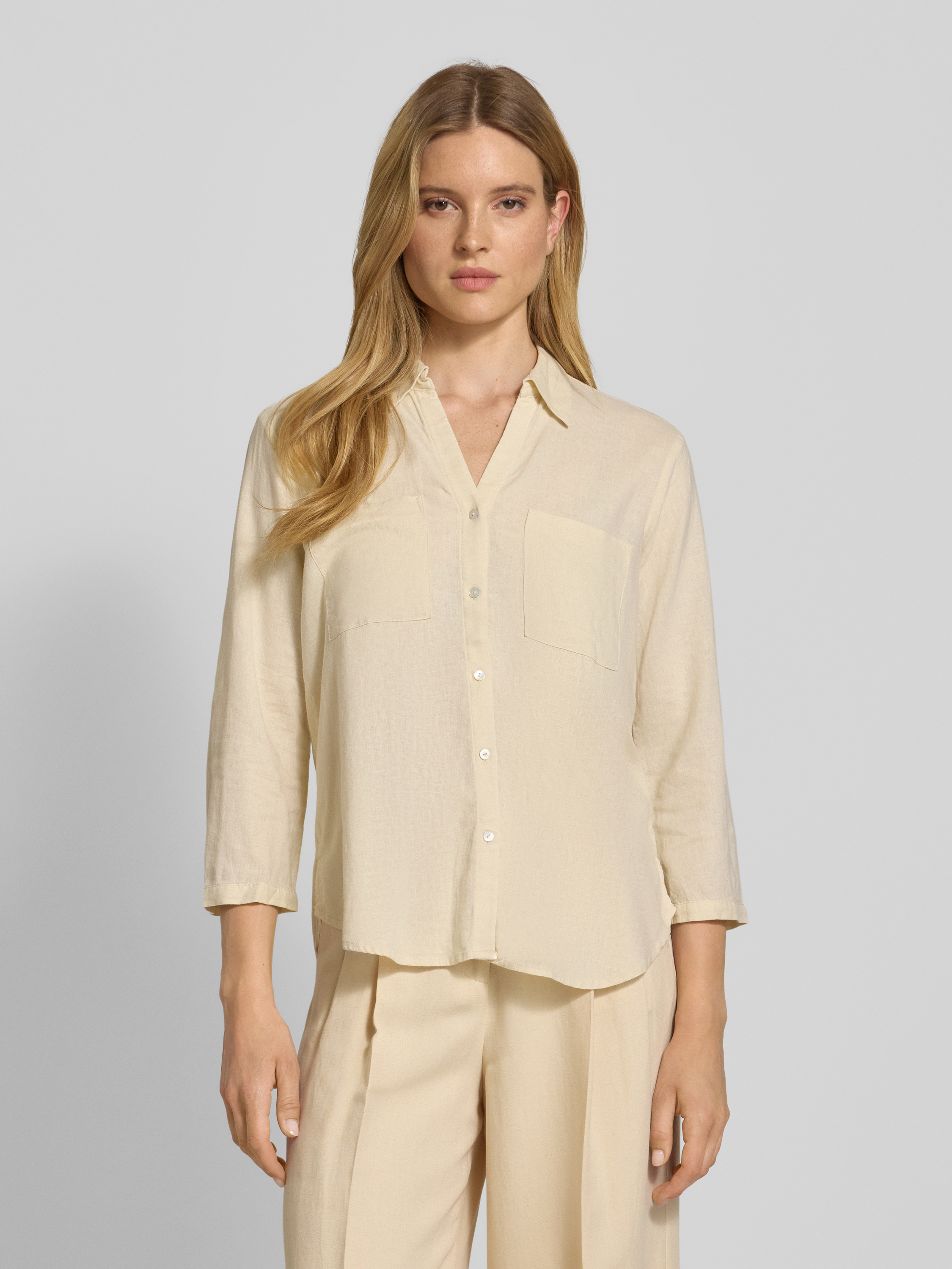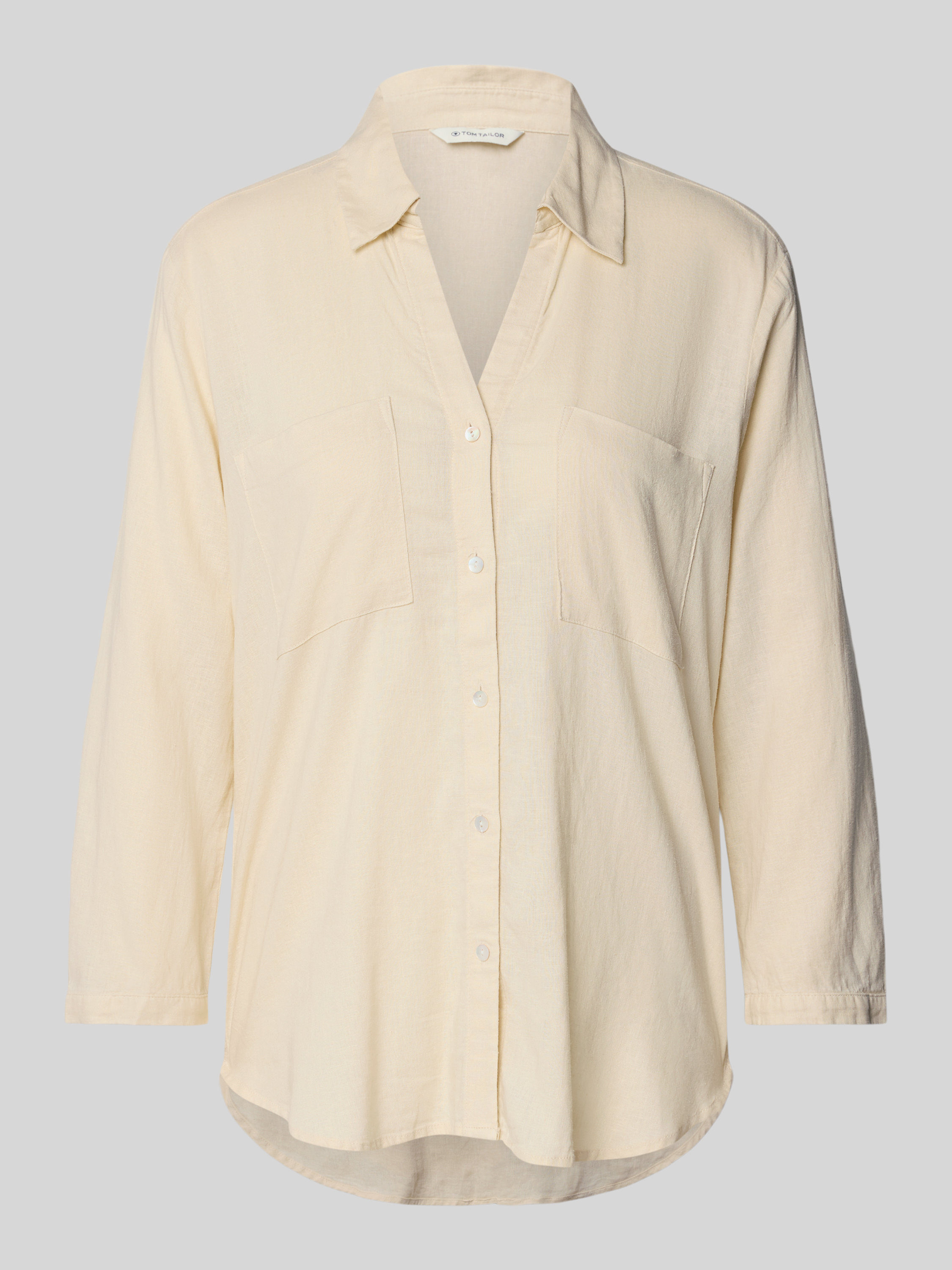 Tom TailorRegular fit blouse met lange mouwen van een mix van linnen en viscose in beige