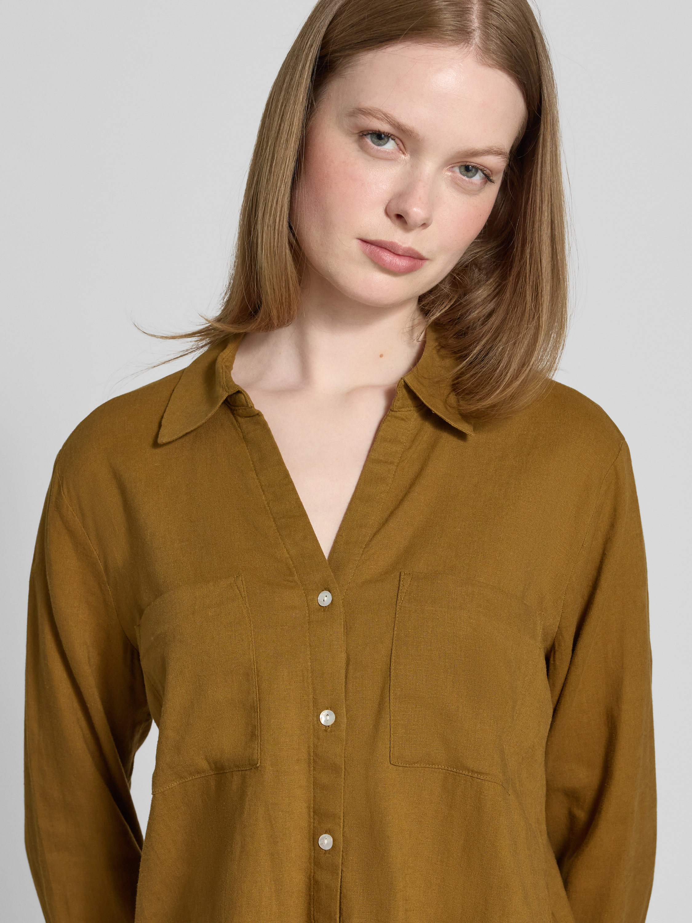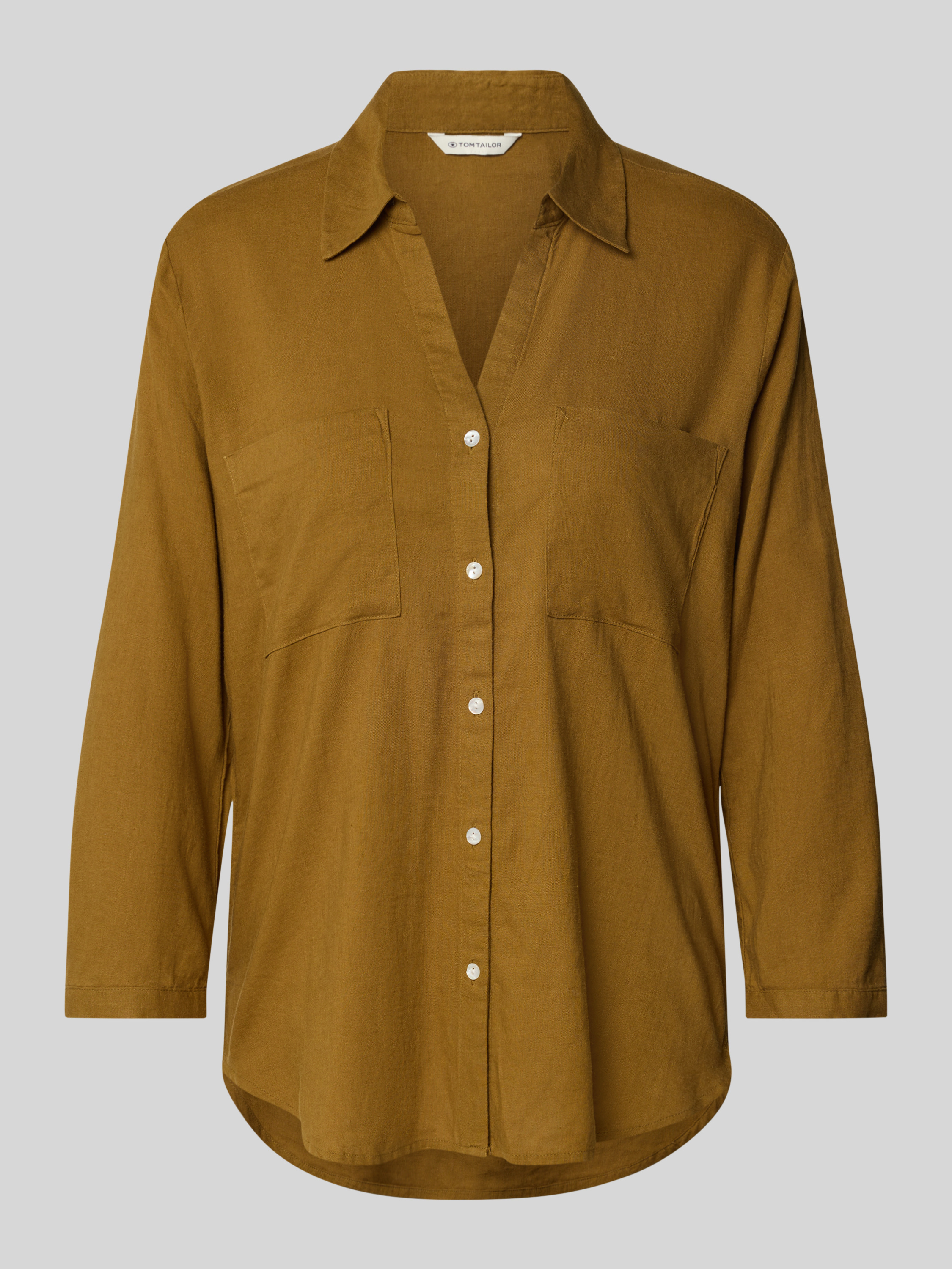 Tom TailorRegular fit blouse met lange mouwen van een mix van linnen en viscose in olijfgroen