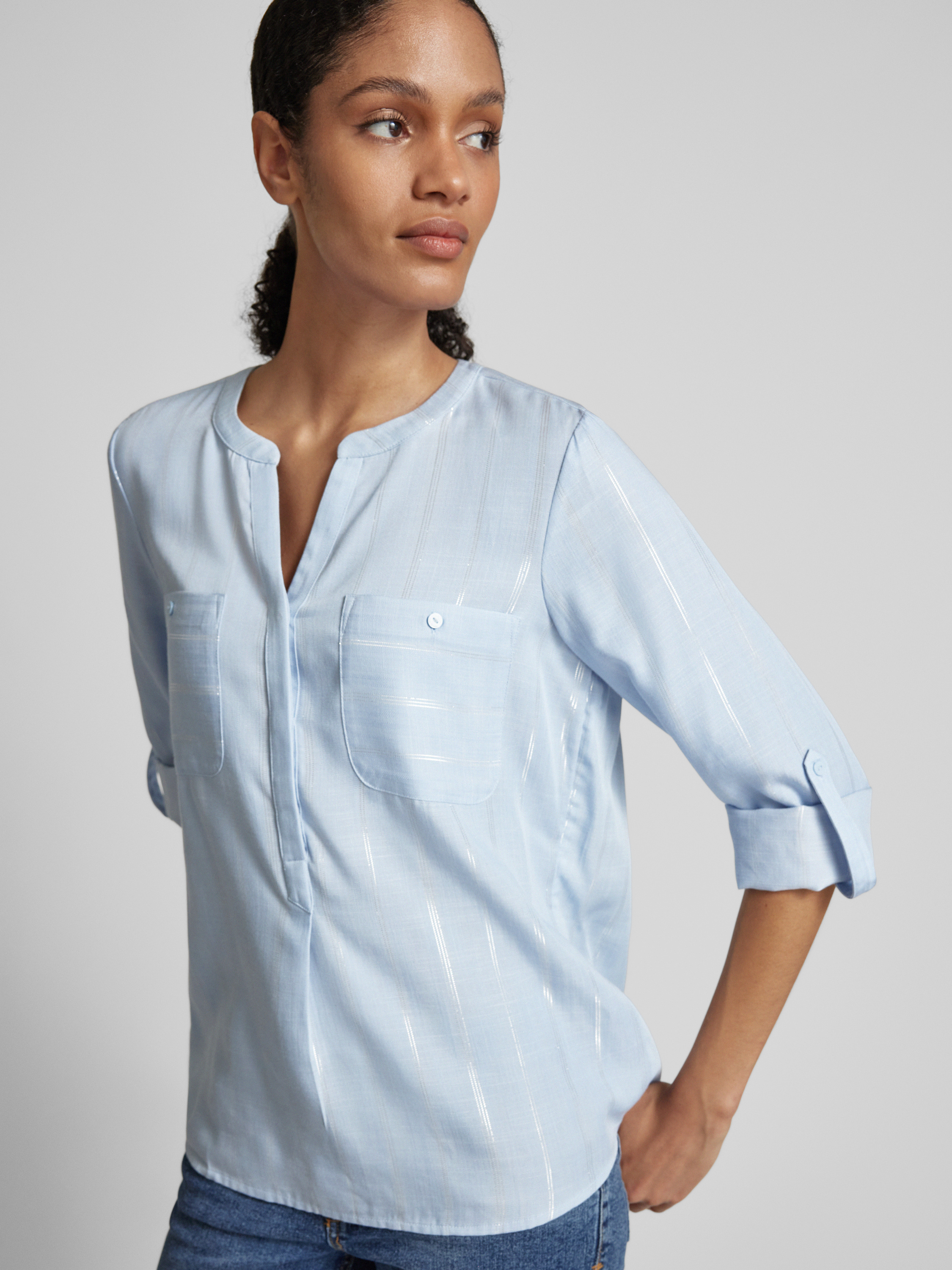 Regular fit blouse van lyocellmix met opgestikte borstzakken in bleu