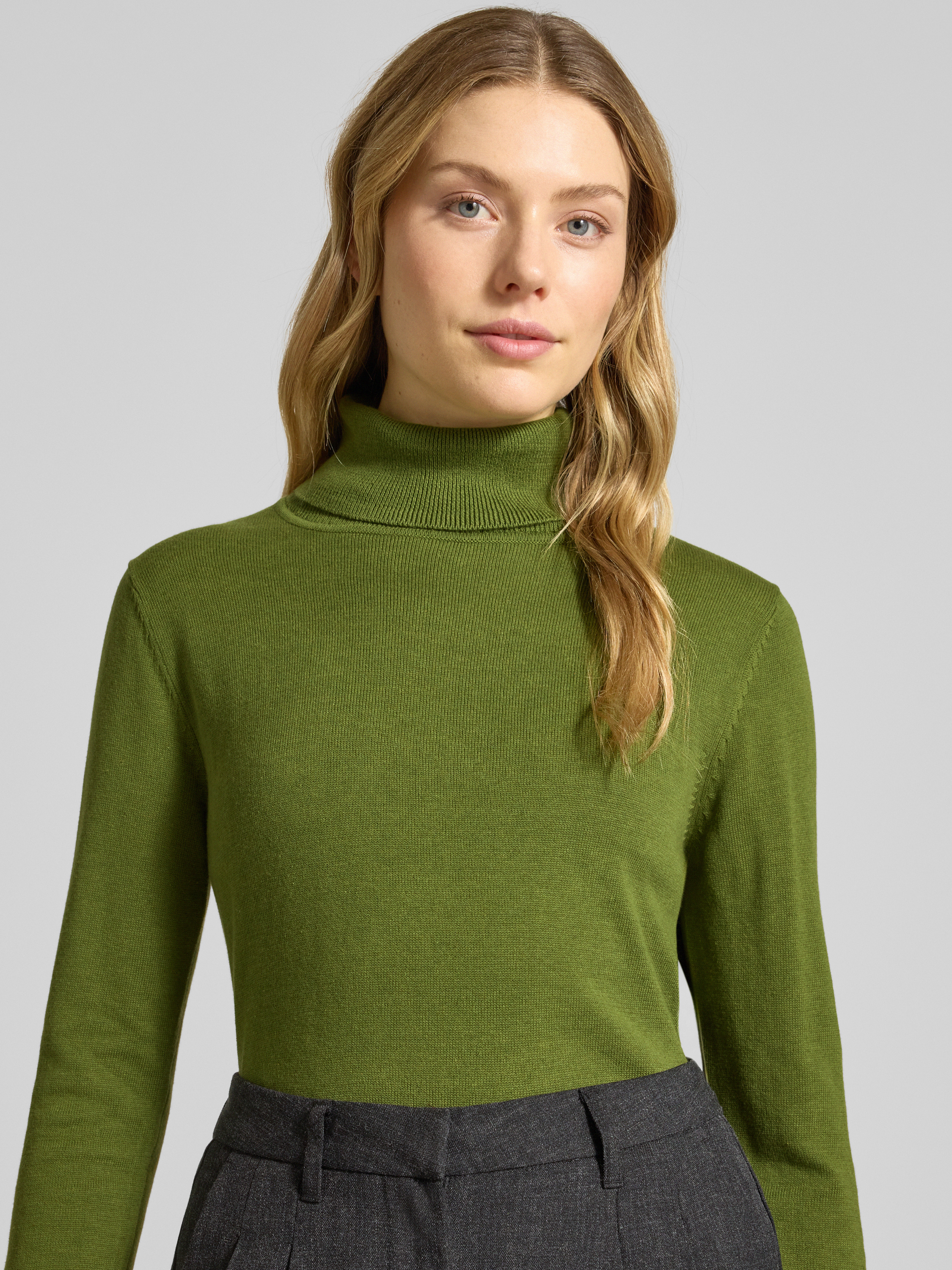 Regular fit coltrui van een mix van katoen en viscose in groen