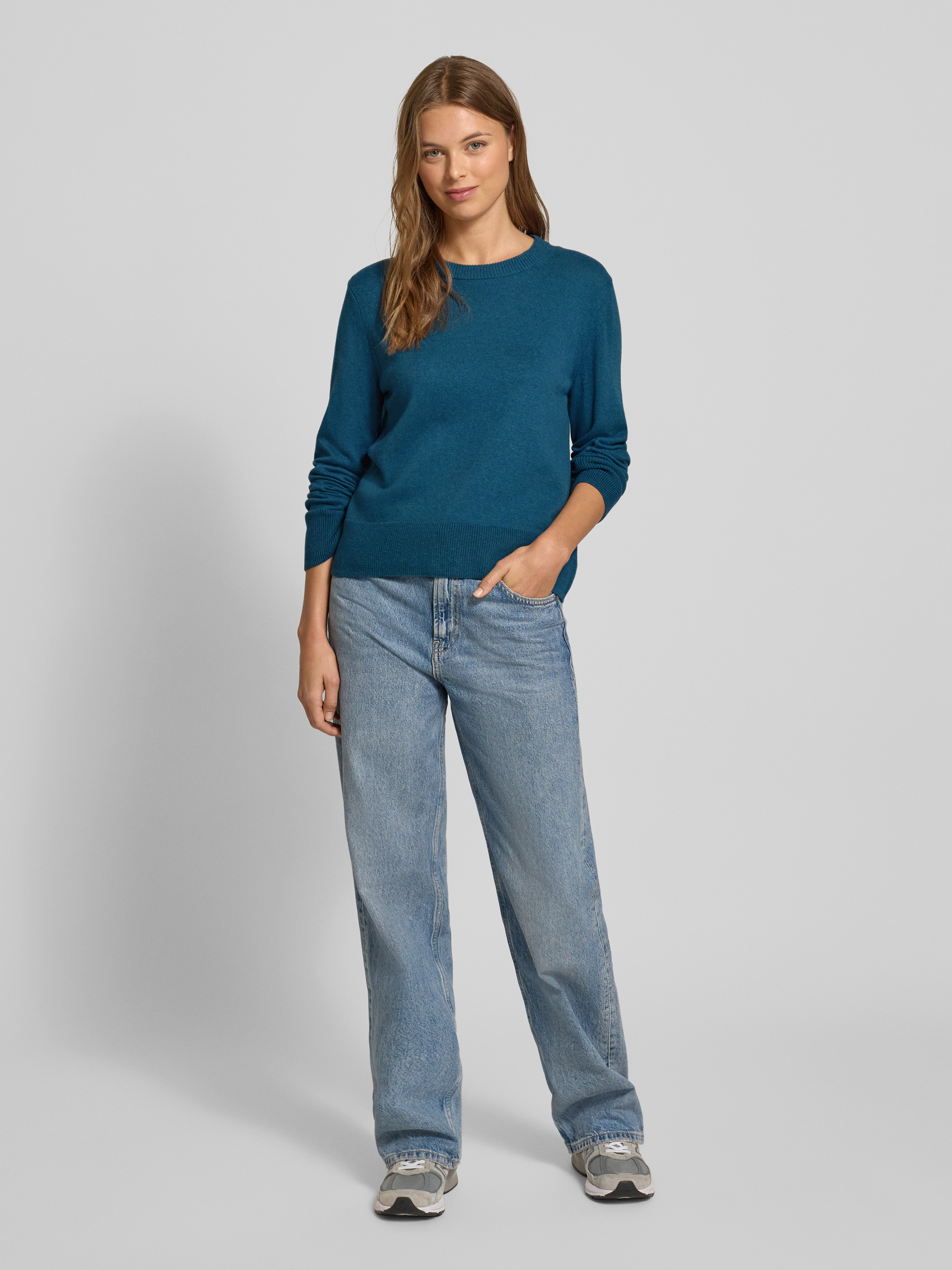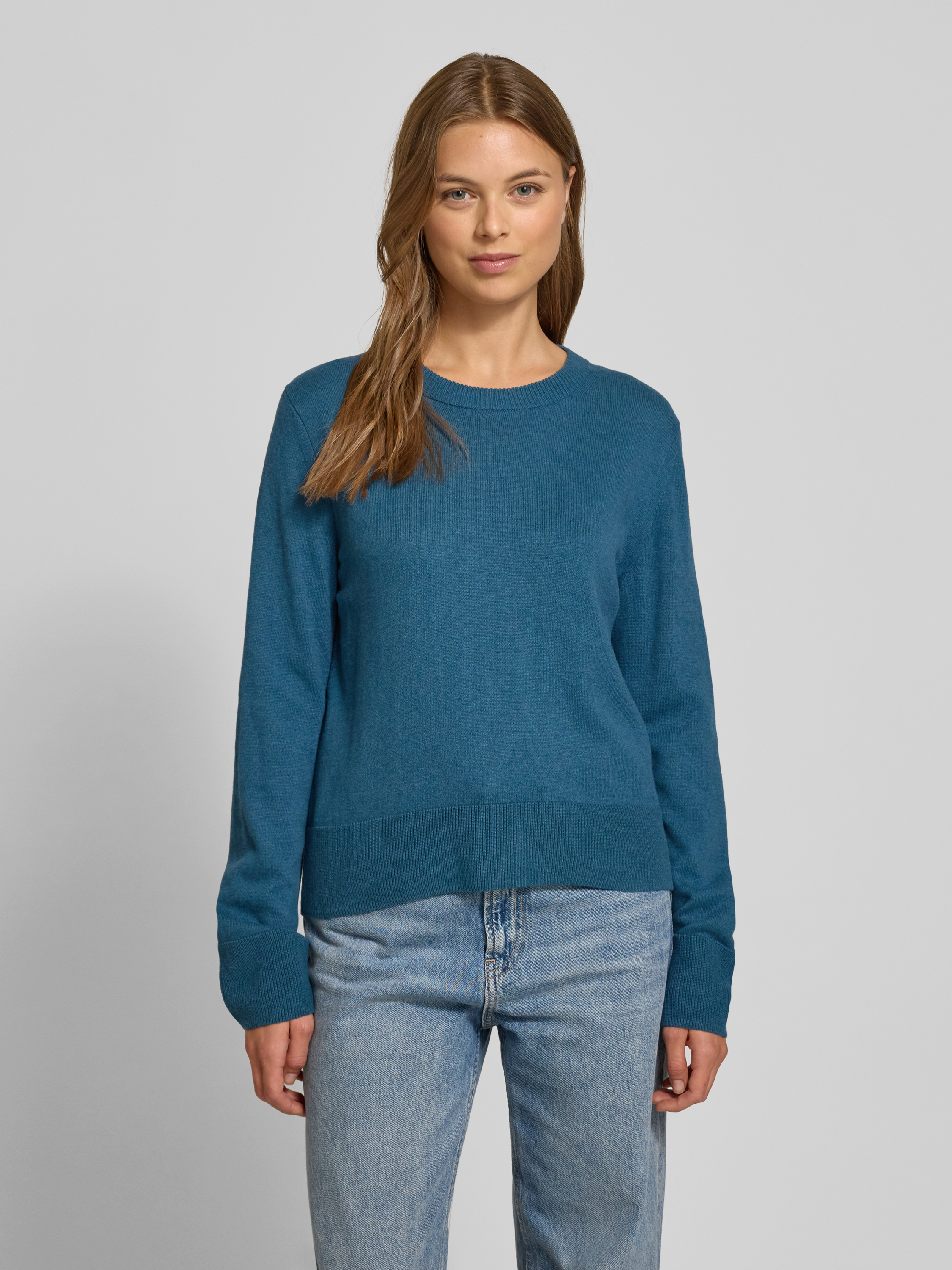 Regular fit gebreide pullover van een mix van katoen en kasjmier in petrol gemêleerd