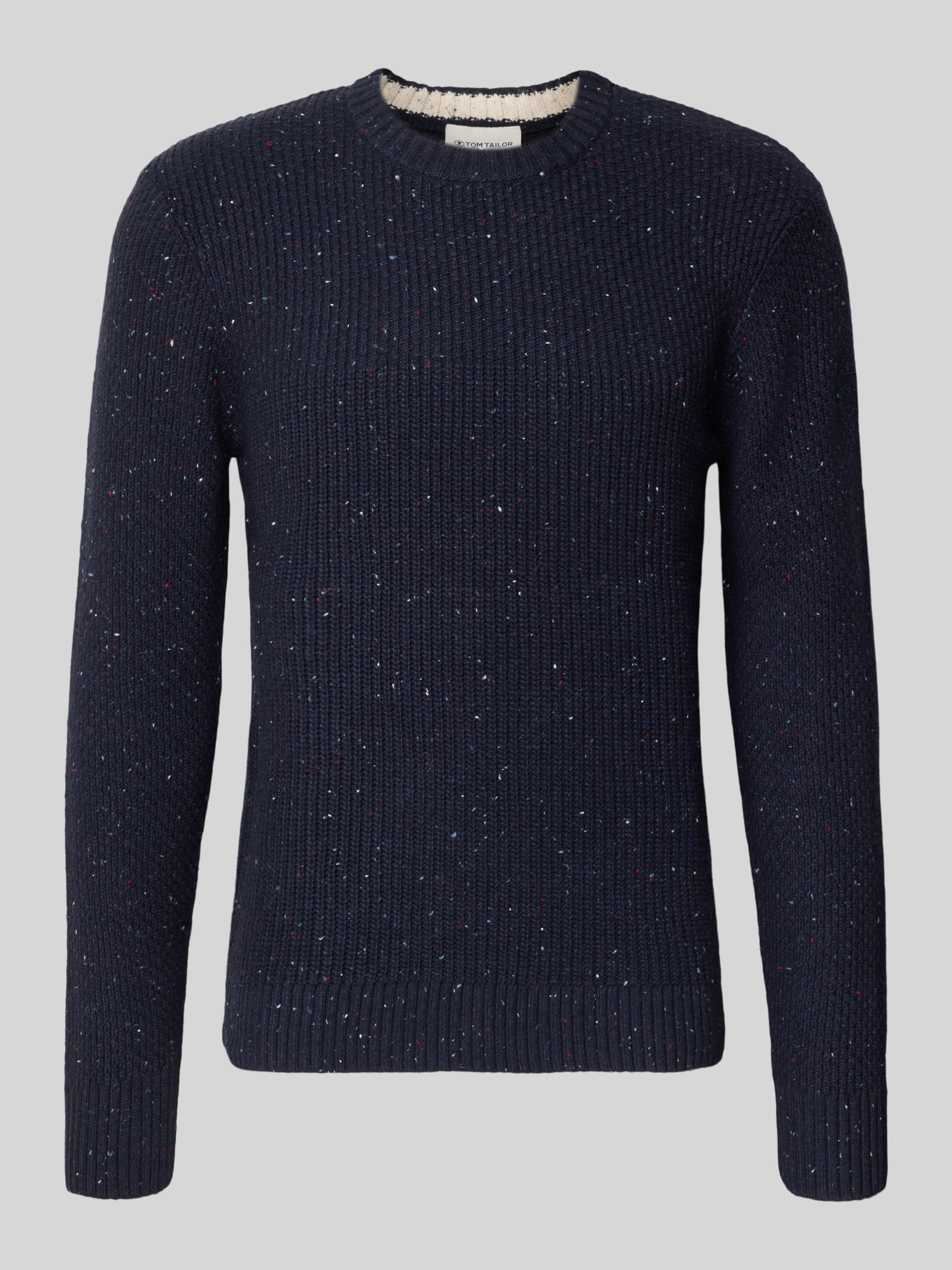 Regular fit gebreide pullover van katoenmix in marineblauw