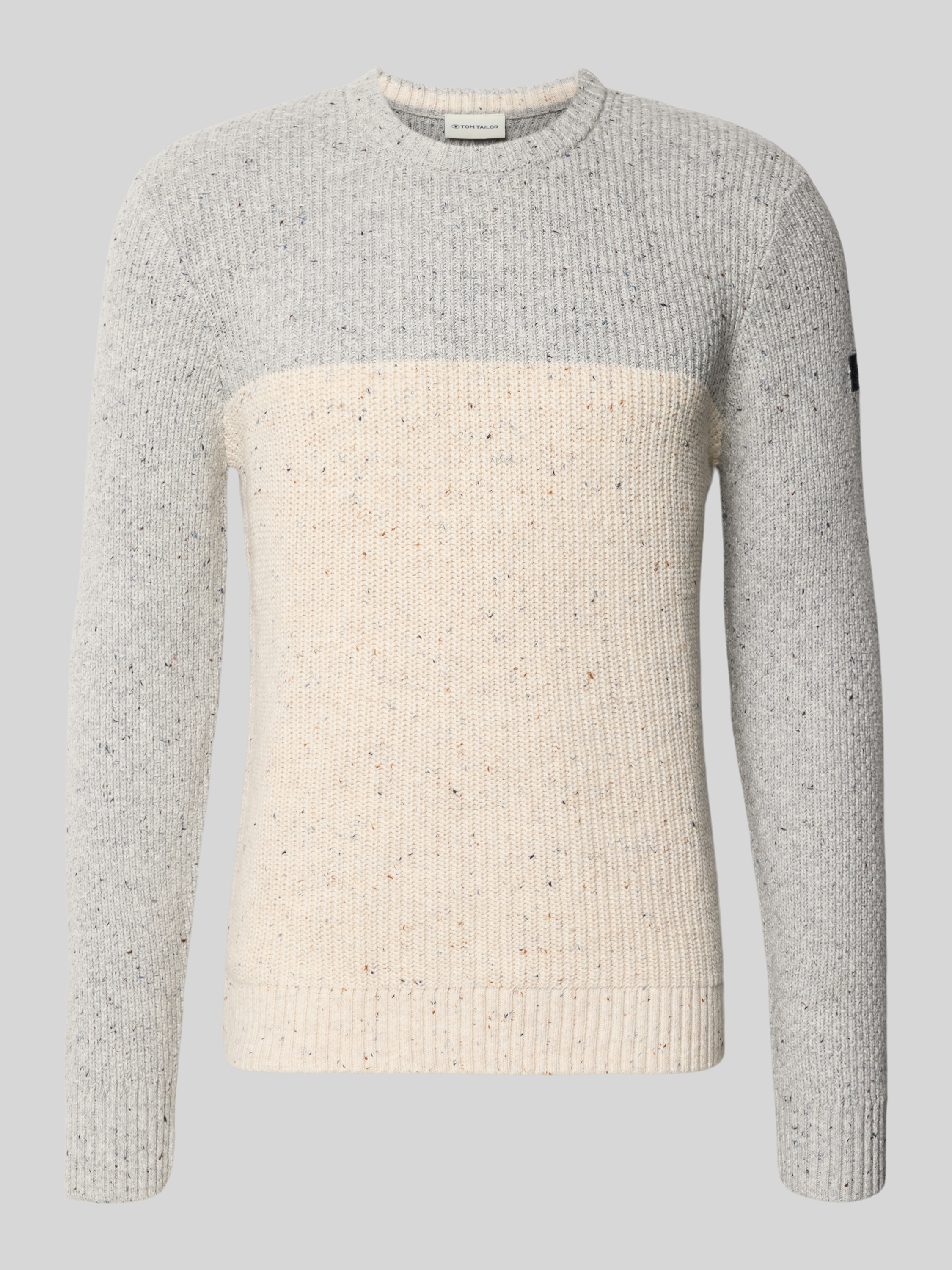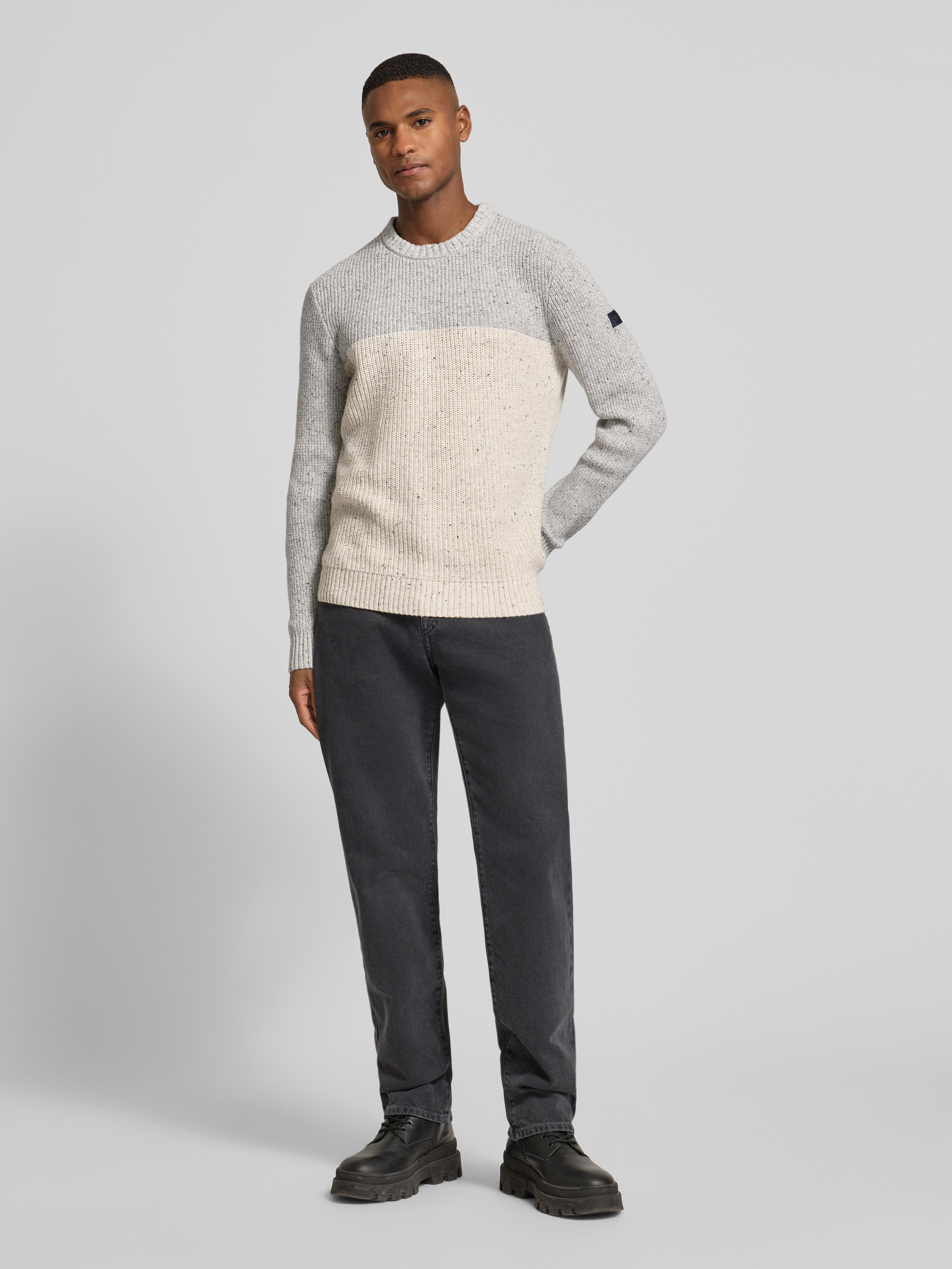 Regular fit gebreide pullover van katoenmix in offwhite gemêleerd
