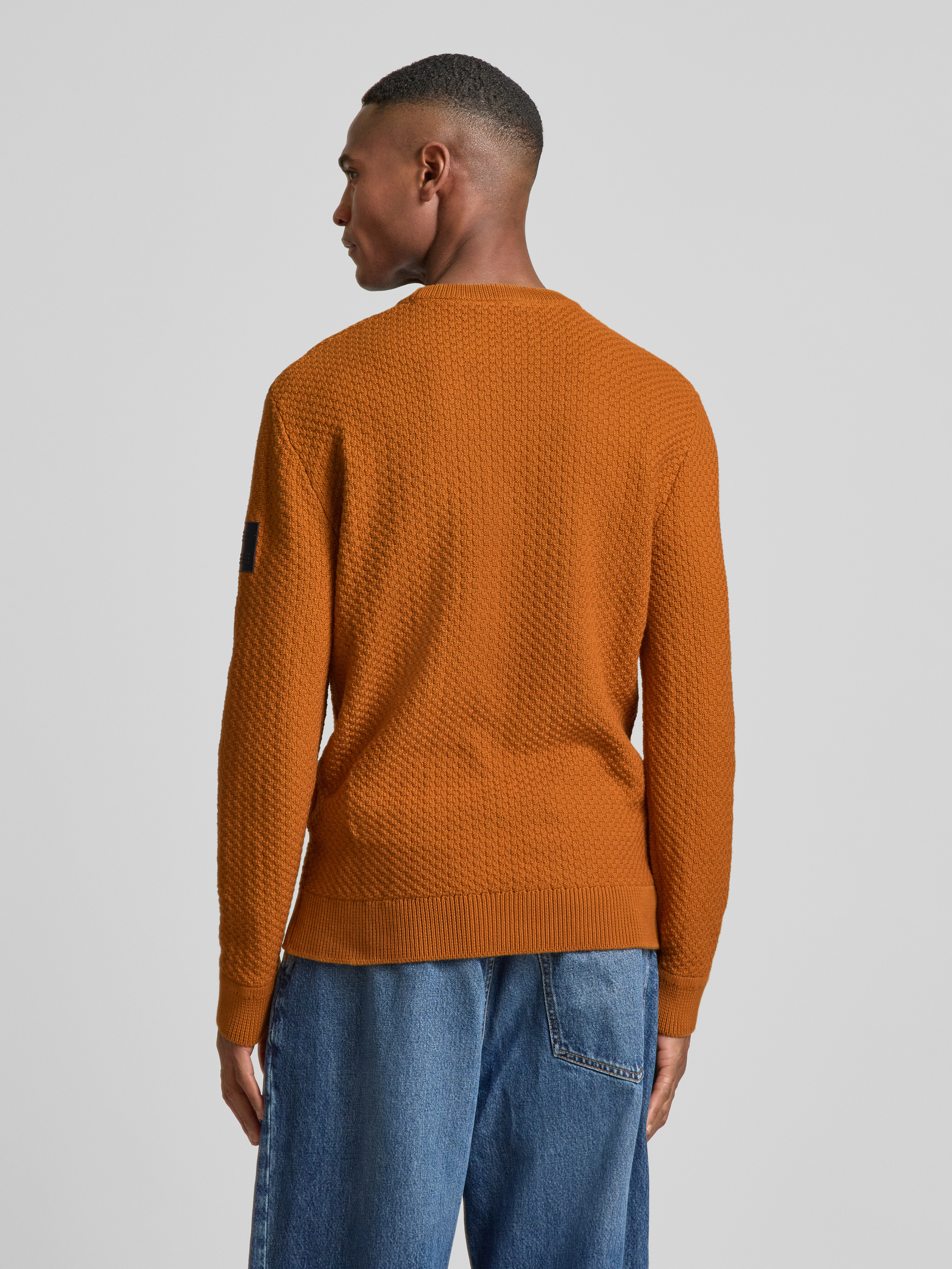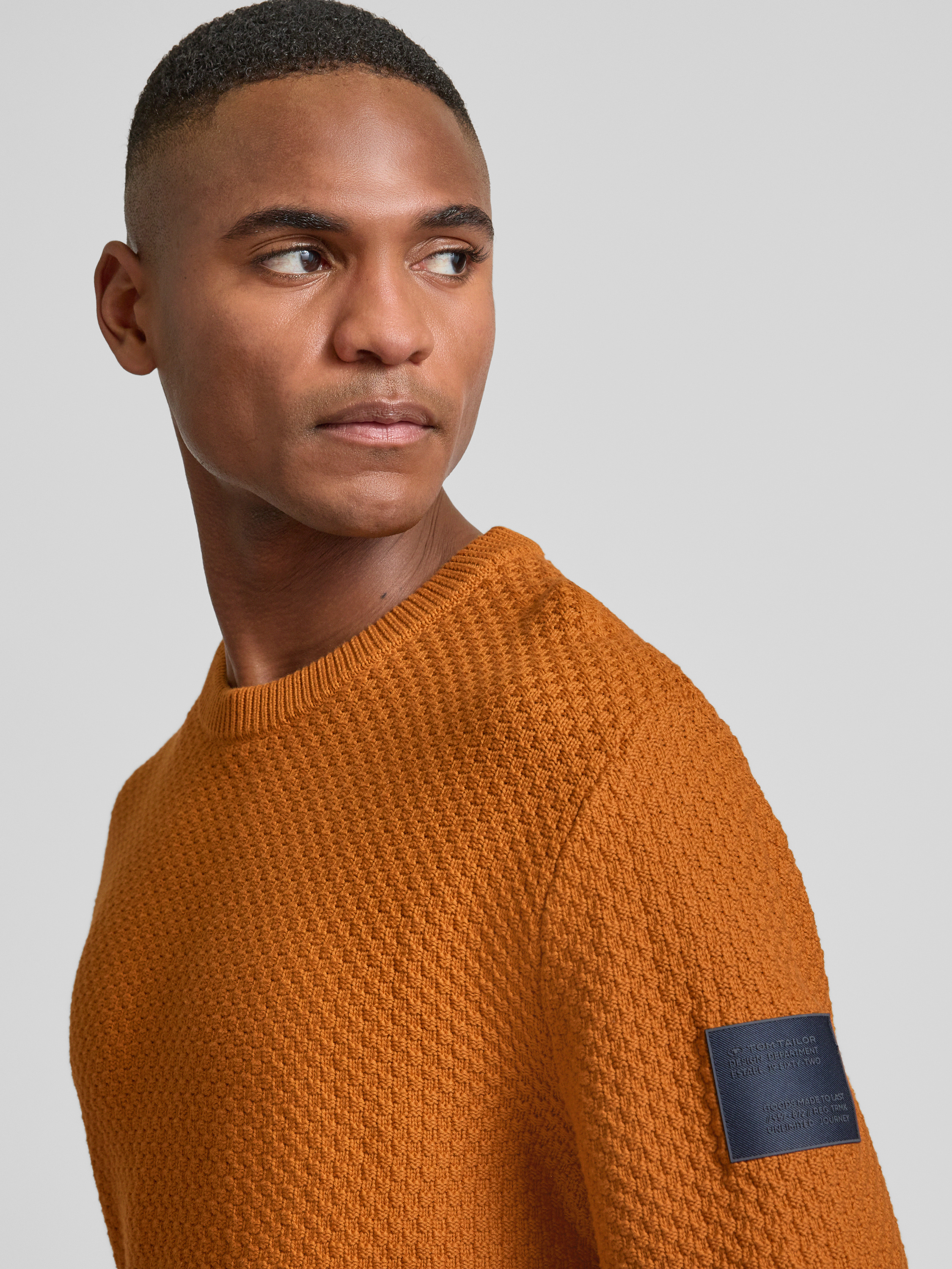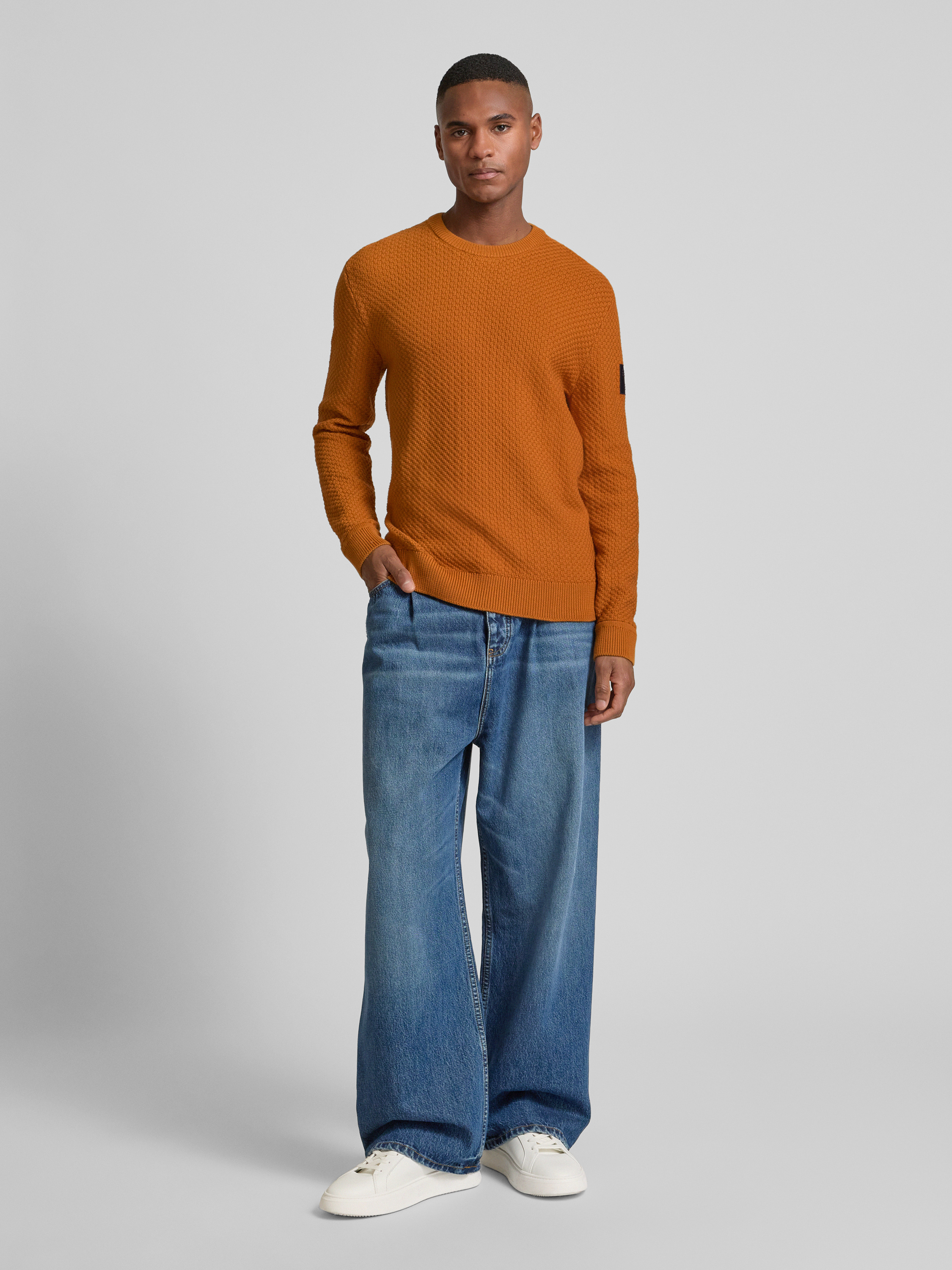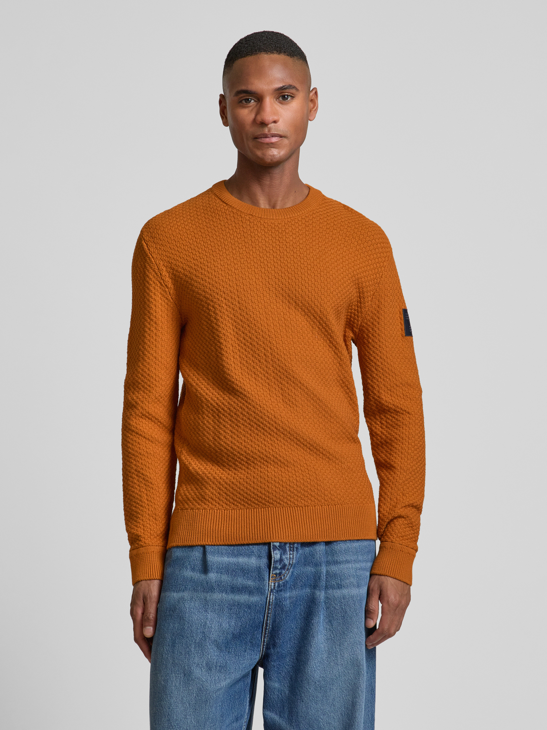 Regular fit gebreide pullover van puur katoen met breipatroon in donkergeel