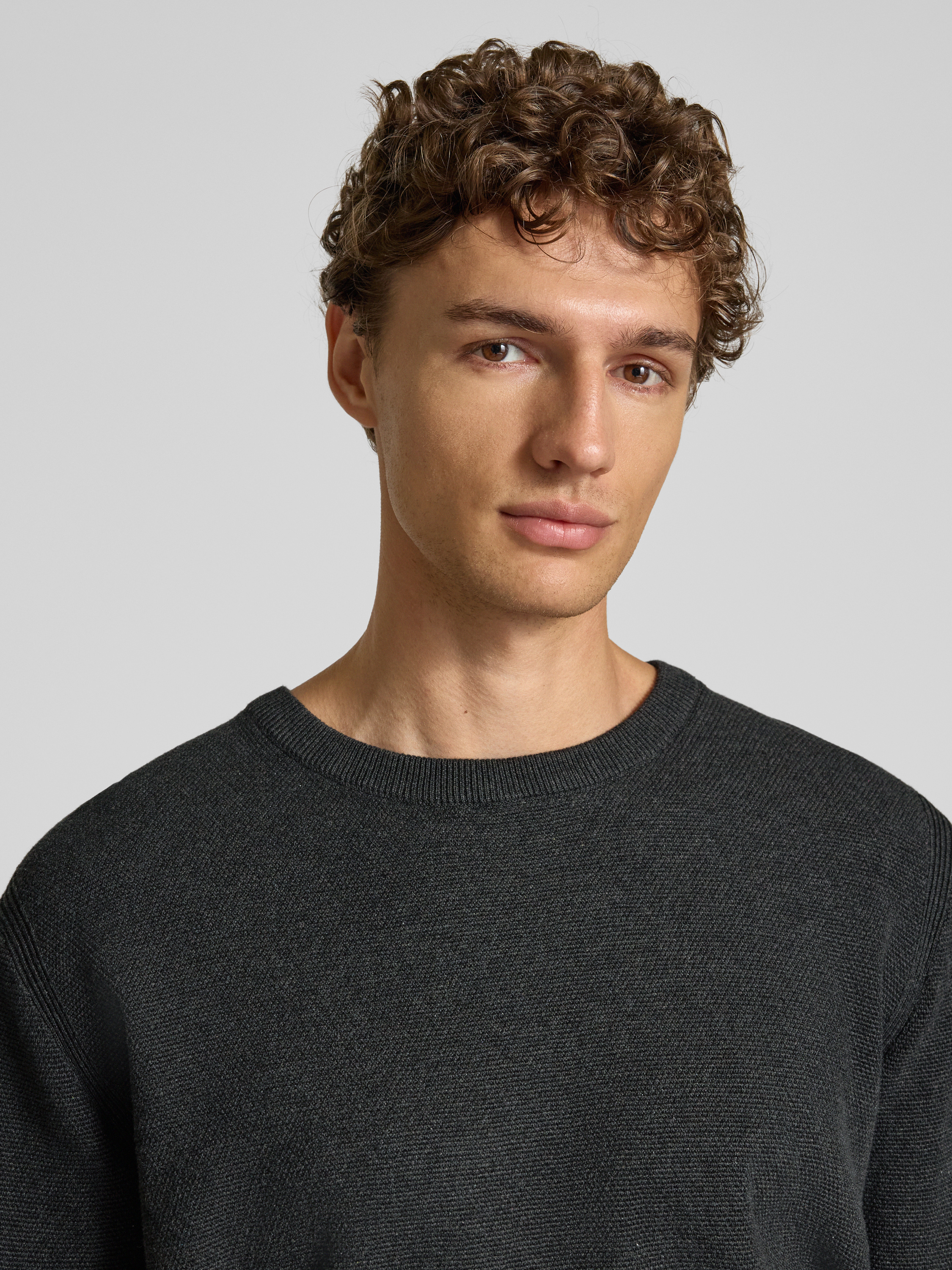 Regular fit gebreide pullover van zuiver katoen in donkergrijs
