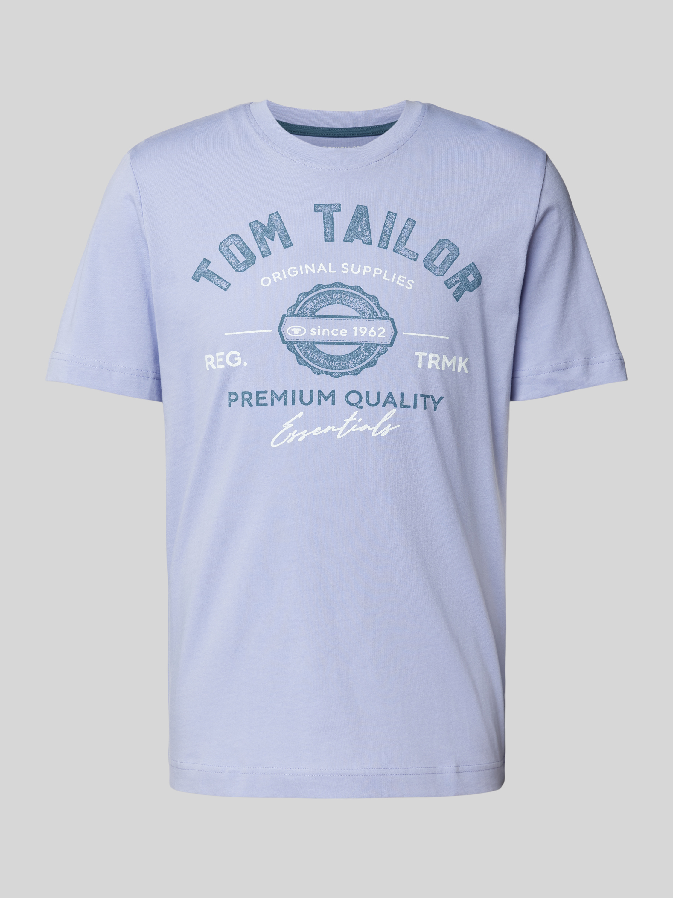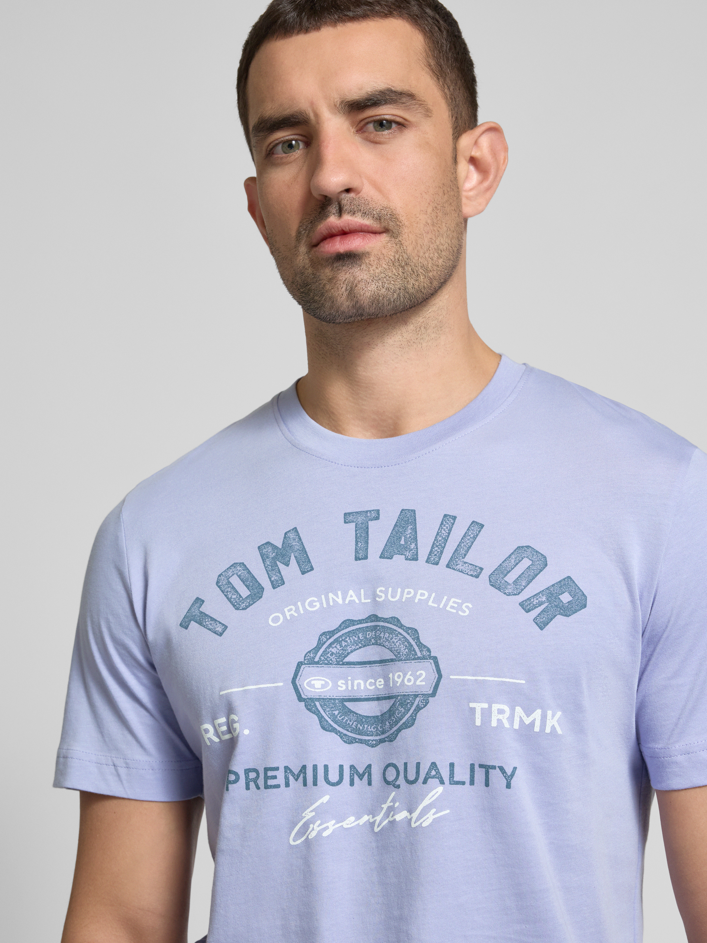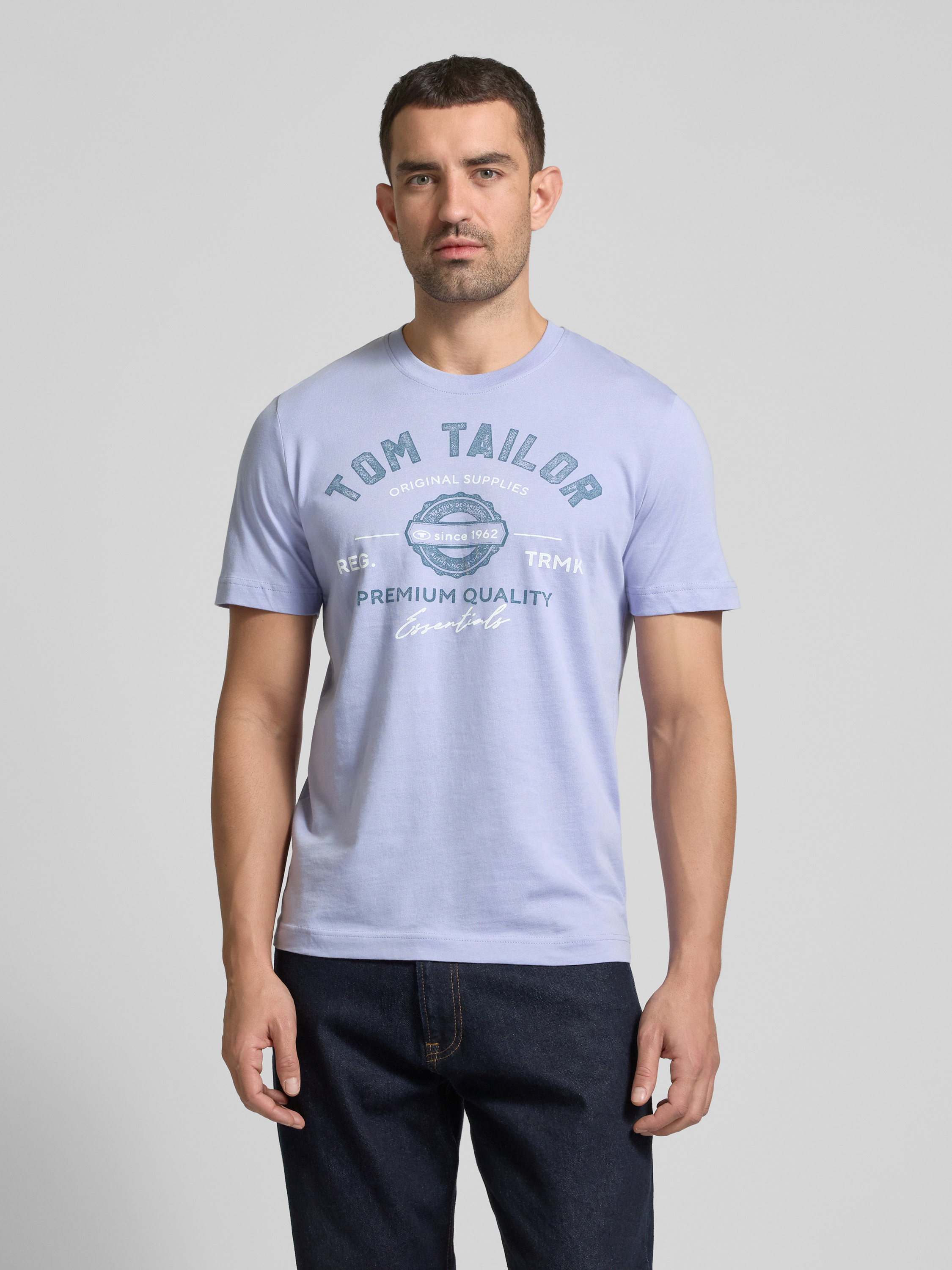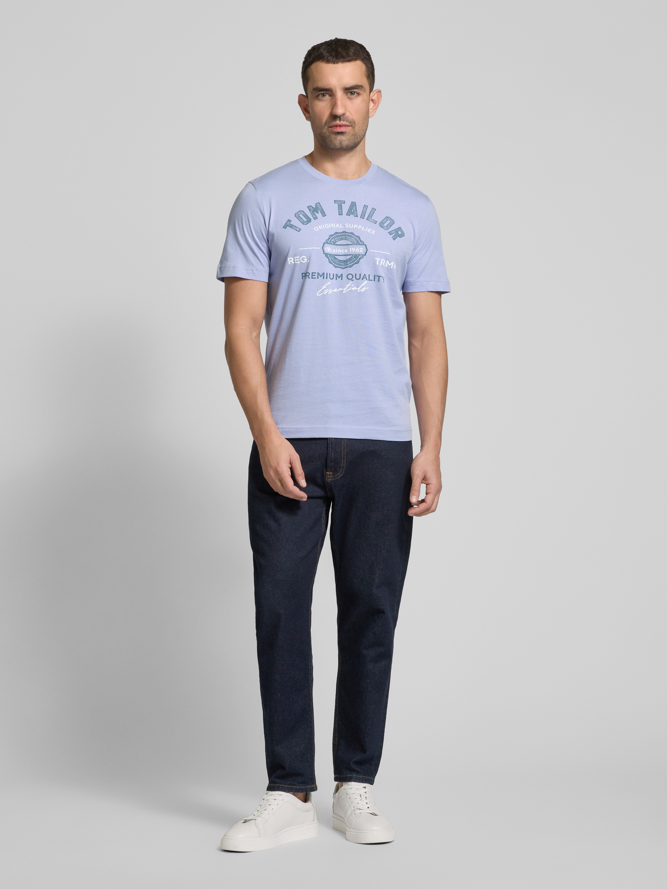 Regular fit T-shirt van puur katoen met labelprint in lila