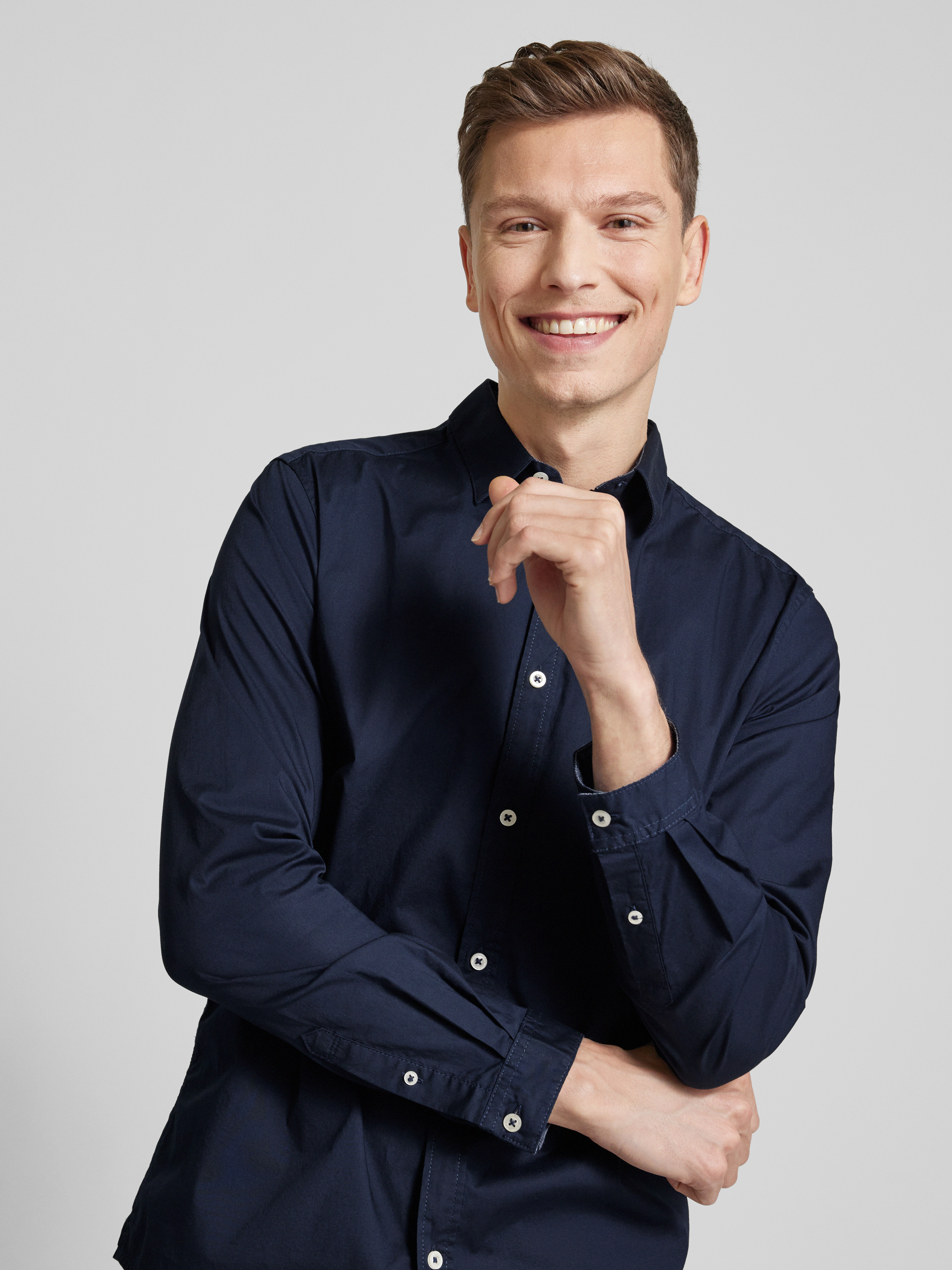Regular fit vrijetijdsoverhemd met kentkraag in donkerblauw