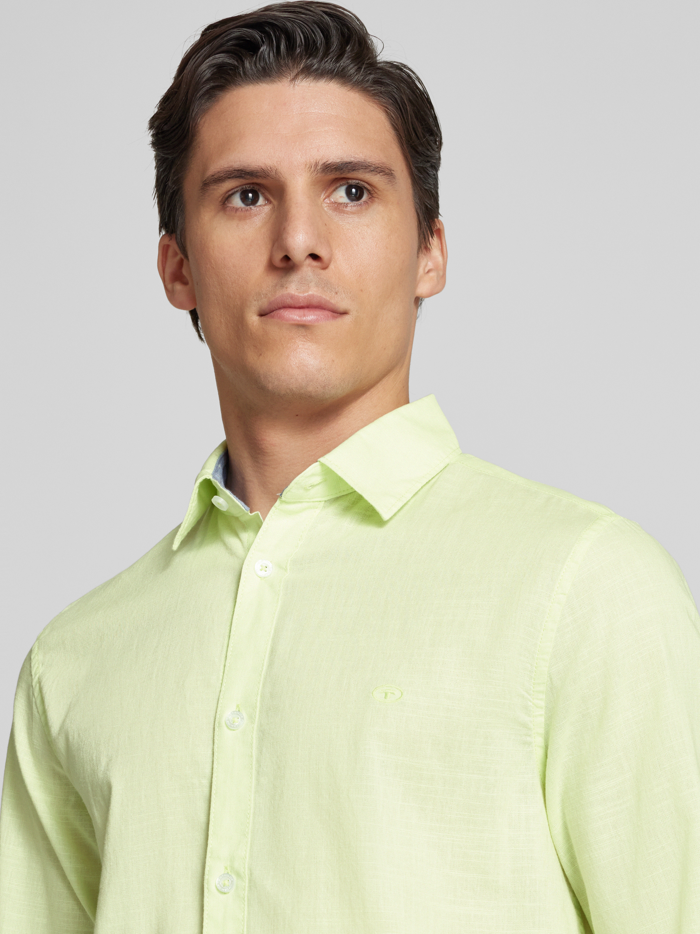 Regular fit vrijetijdsoverhemd van chambray in neongeel gemêleerd