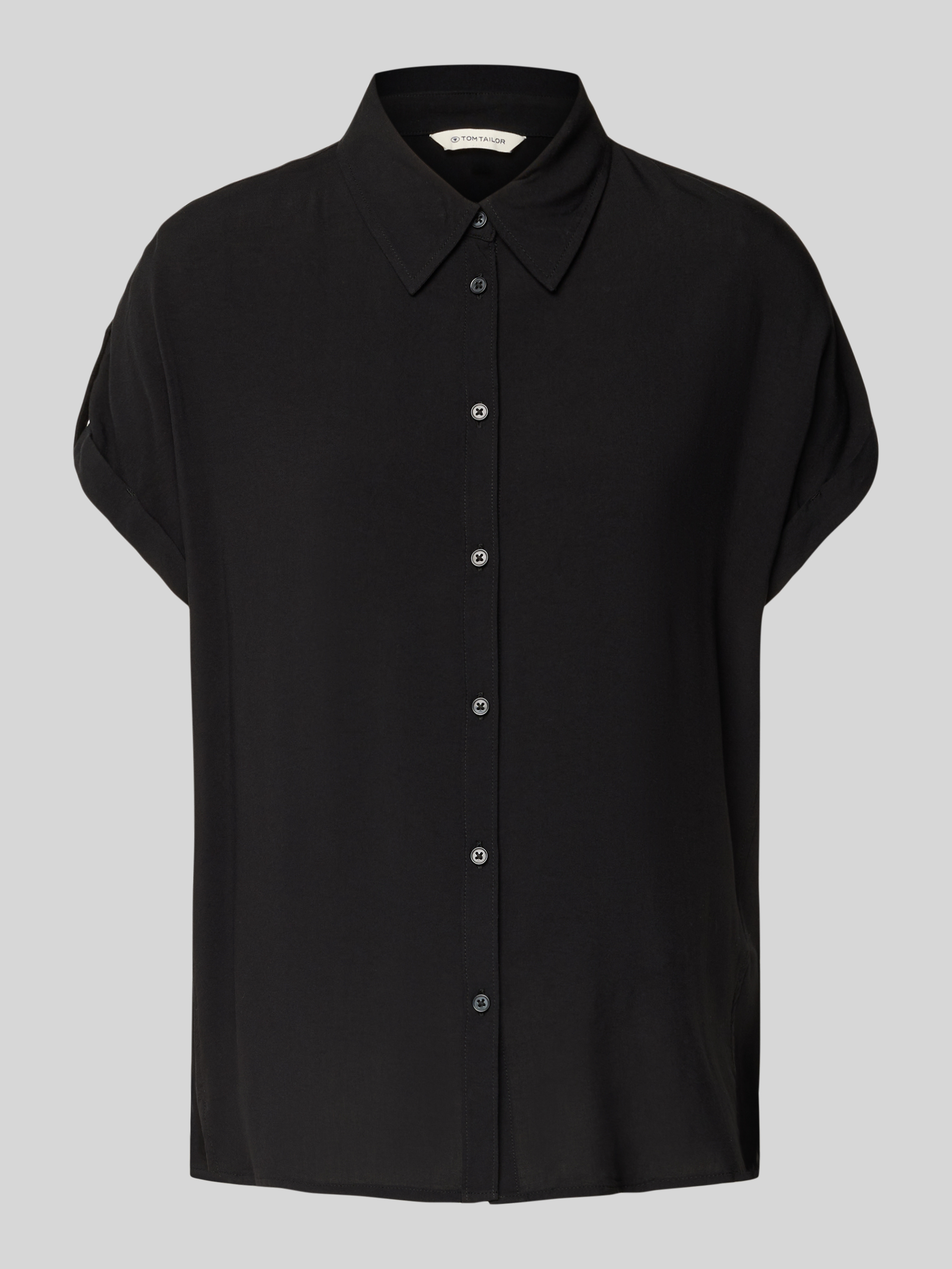 Relaxed fit overhemdblouse van pure viscose in zwart