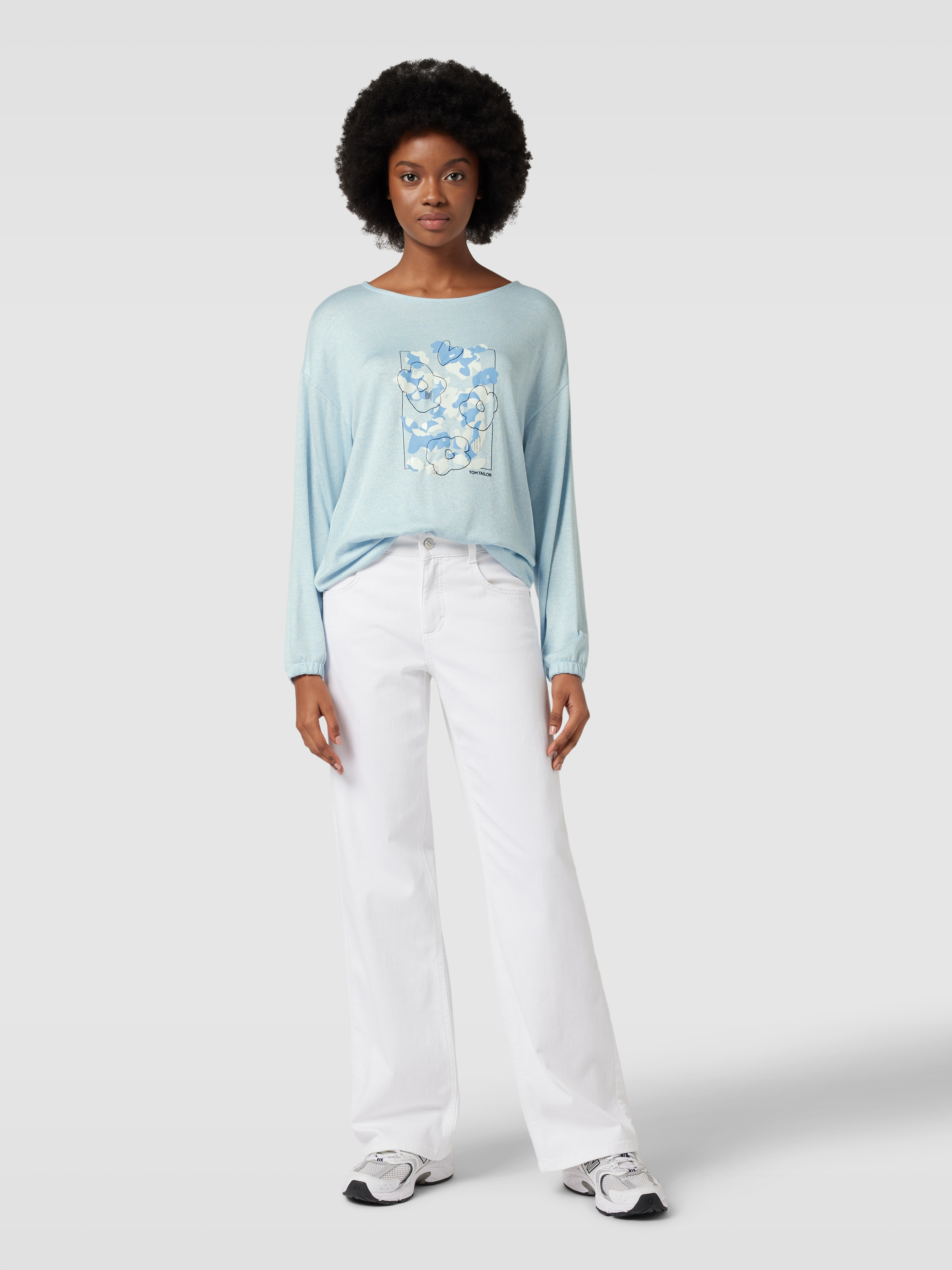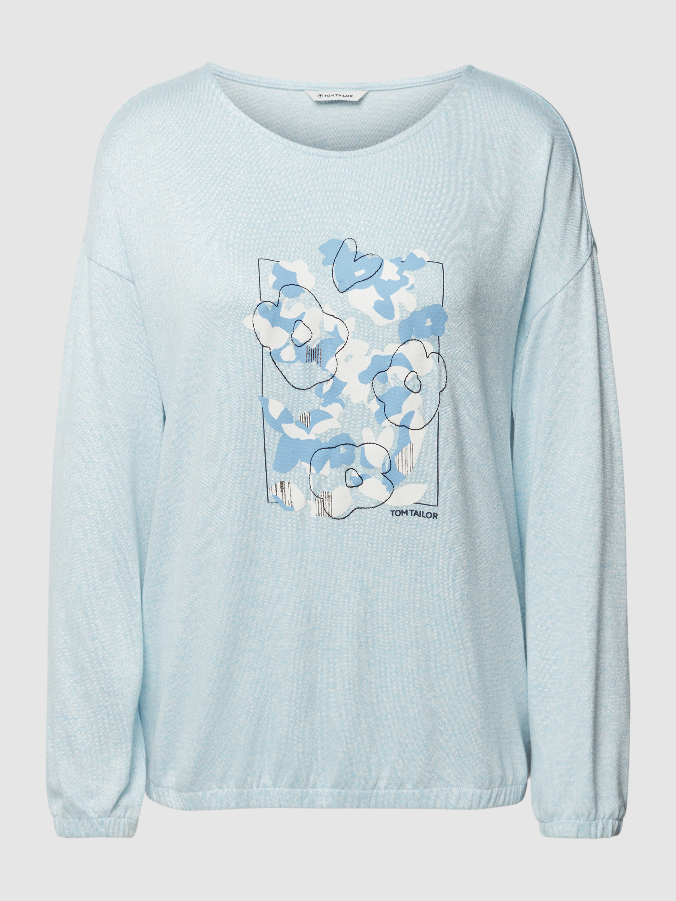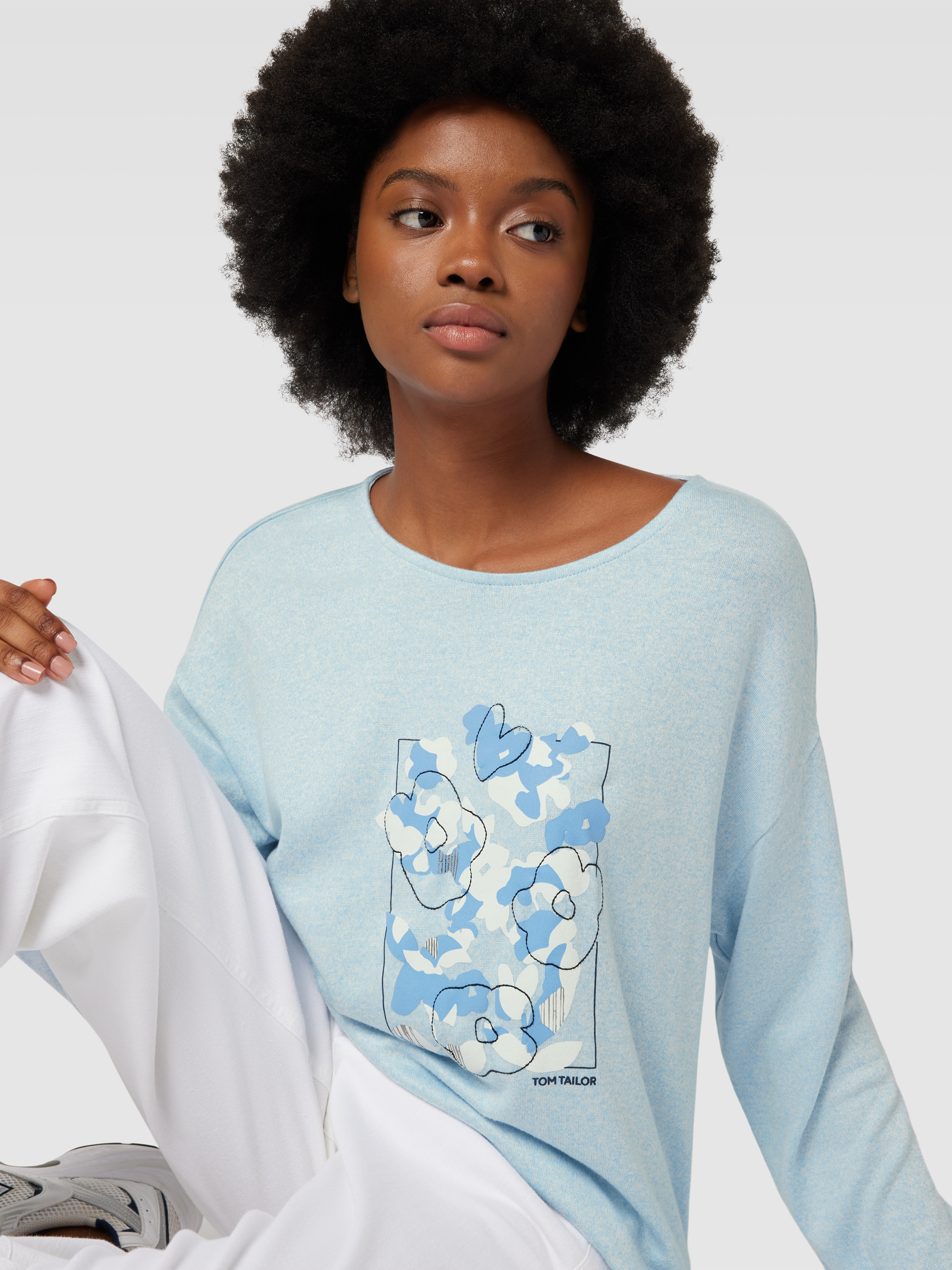 Tom TailorShirt met lange mouwen, motiefprint en extra brede schouders in lichtblauw
