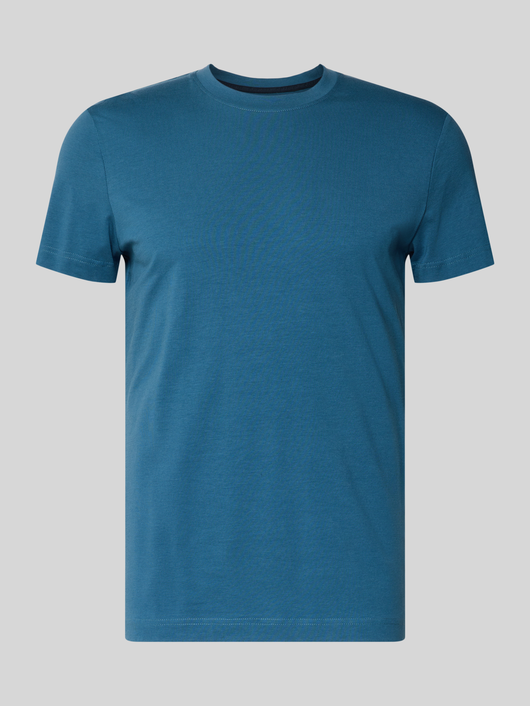 Slim fit T-shirt van katoenmix in oceaanblauw