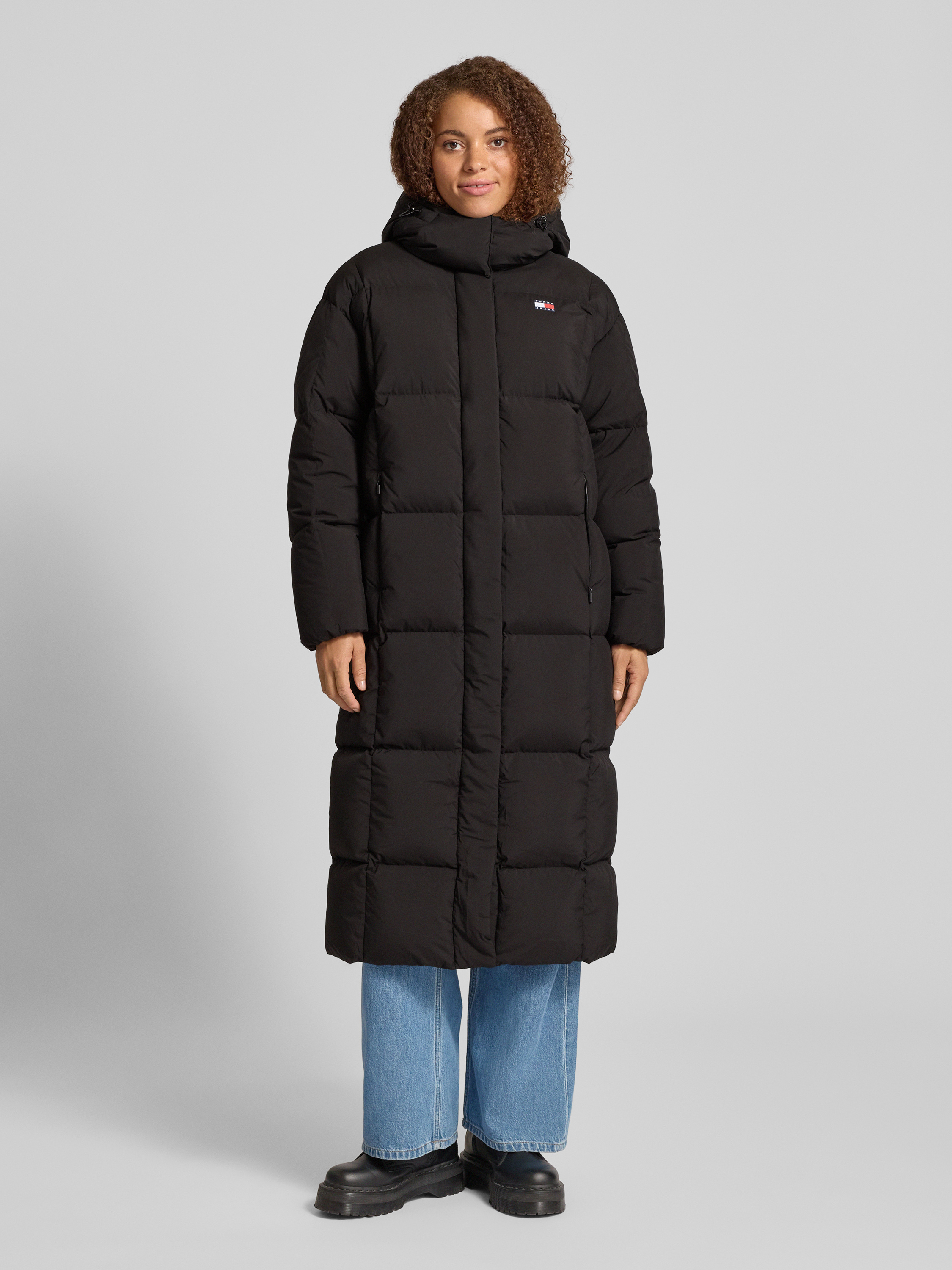 Comfort fit lange donsjas met afneembare capuchon, model 'ALASKA' in zwart