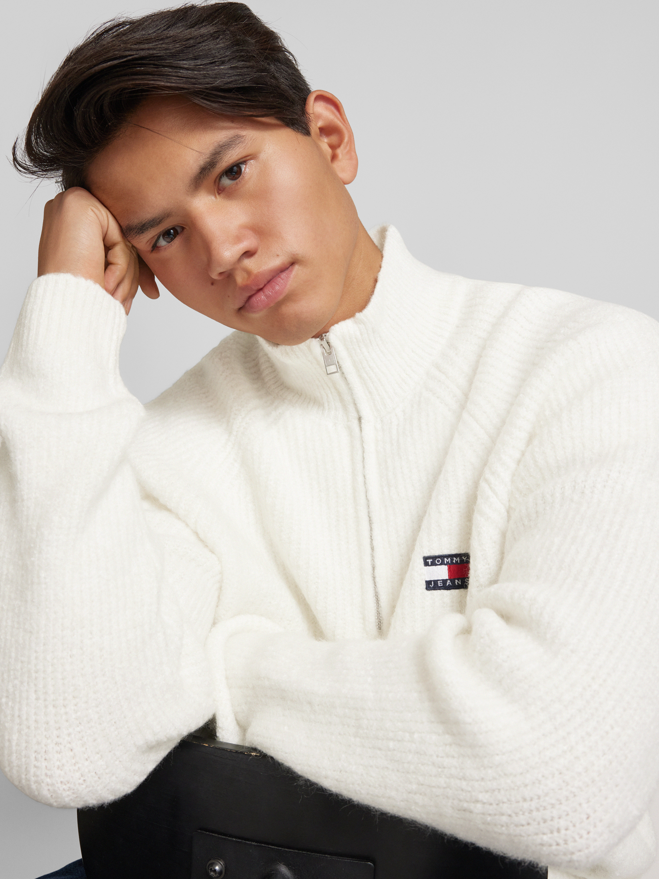 Tommy JeansGebreide pullover met opstaande kraag in offwhite