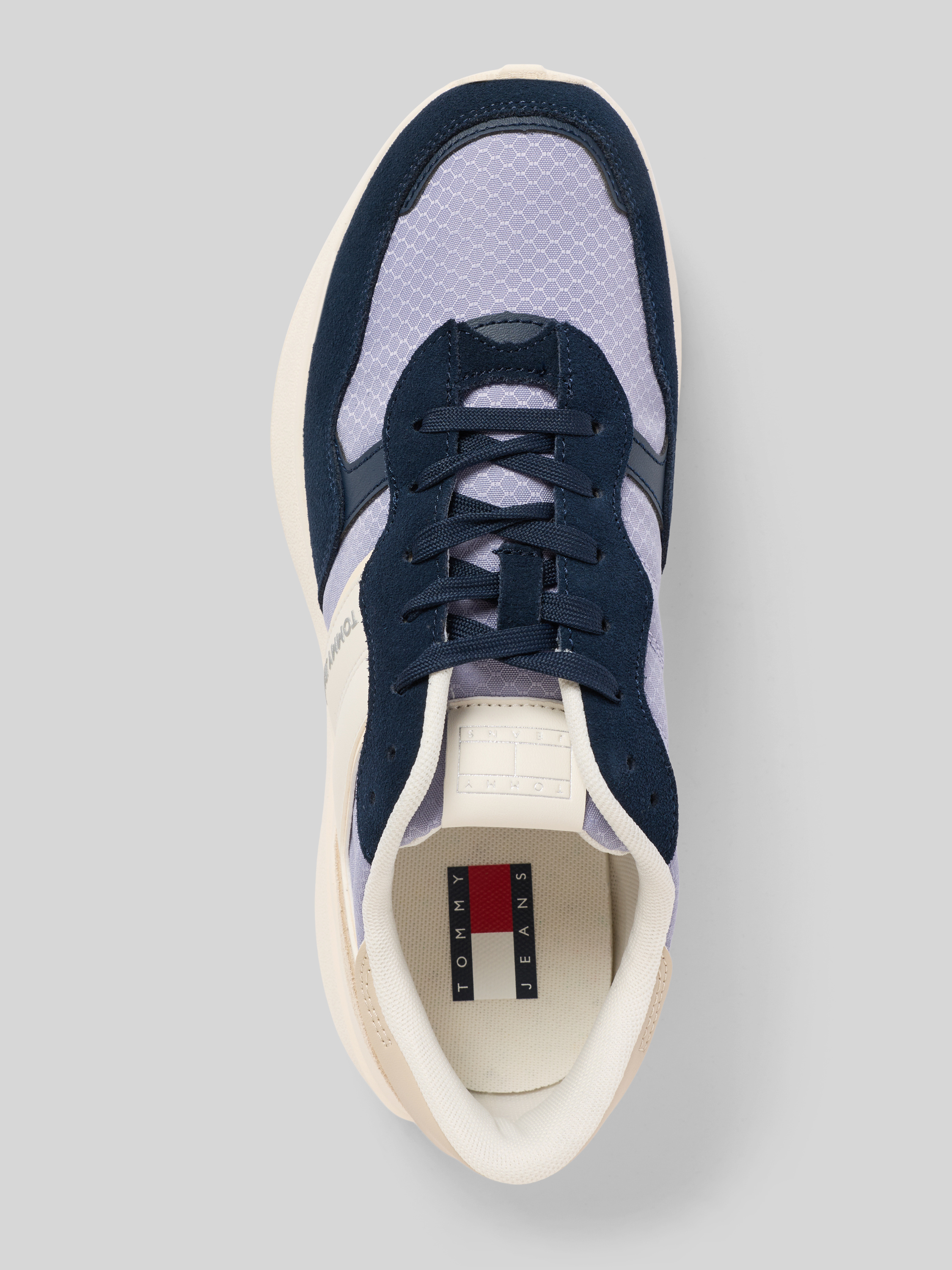 Lage sneaker met labeldetail en vetersluiting in donkerblauw