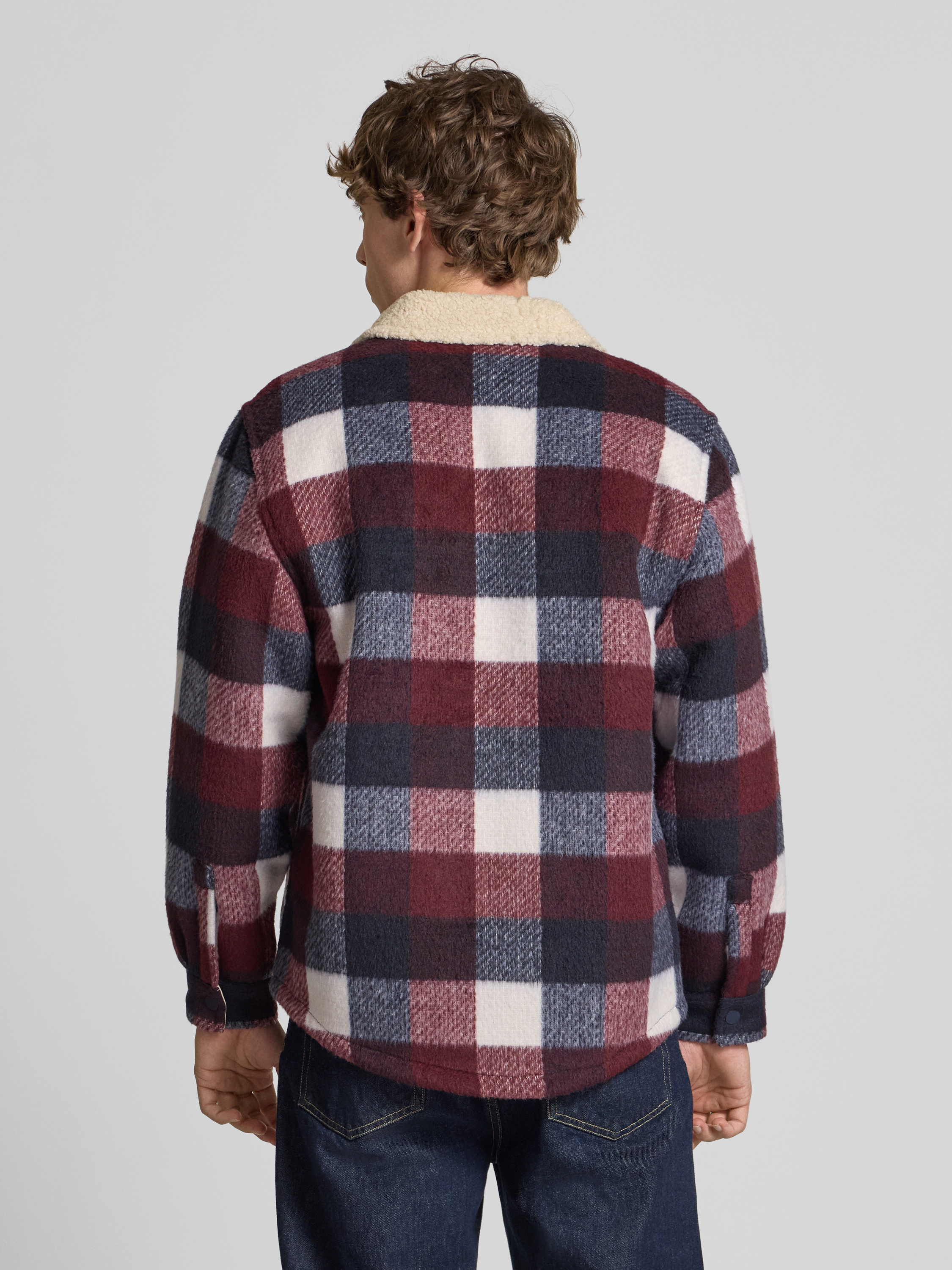 Oversized overhemdjack met teddyfleece in marineblauw