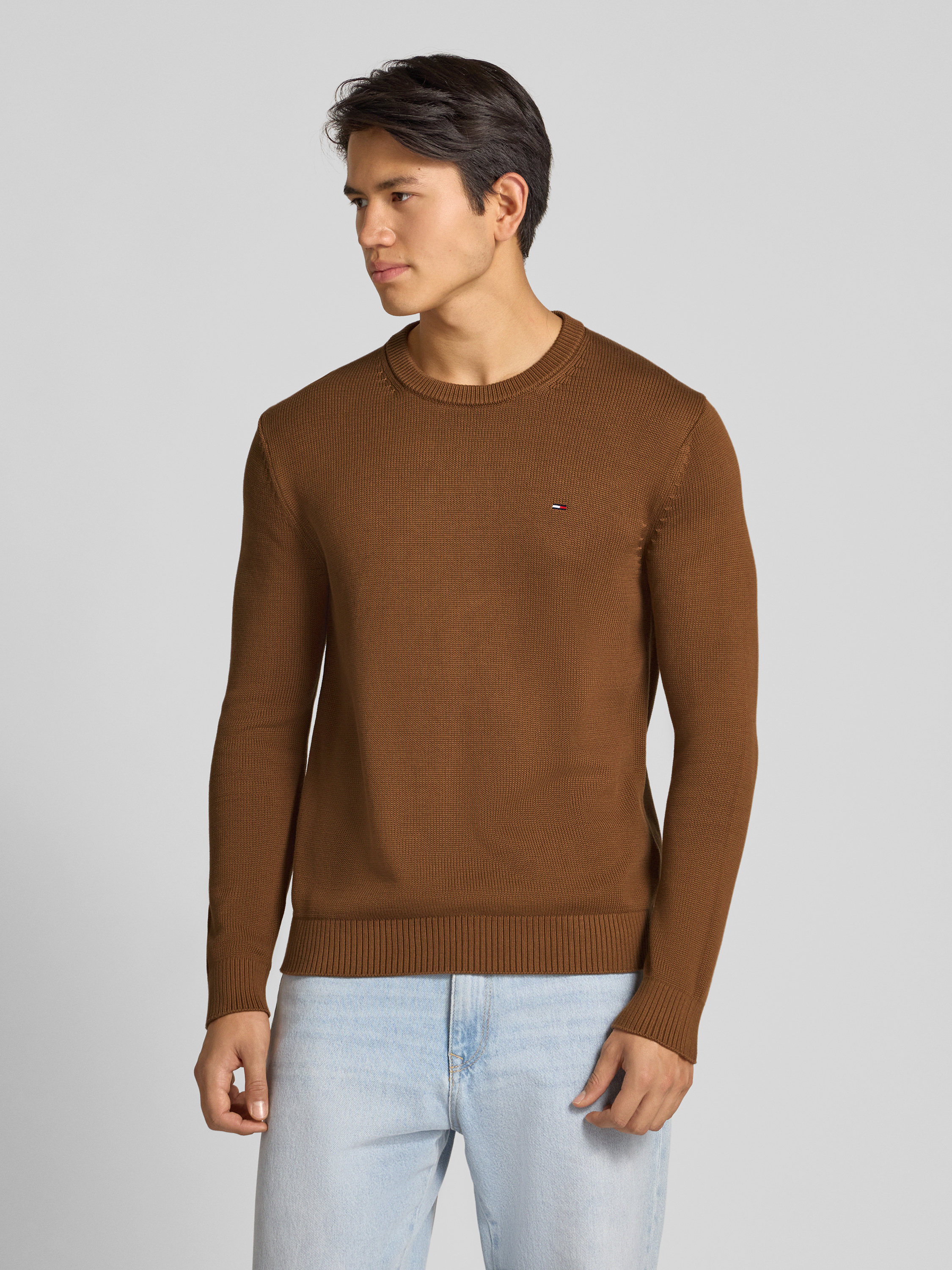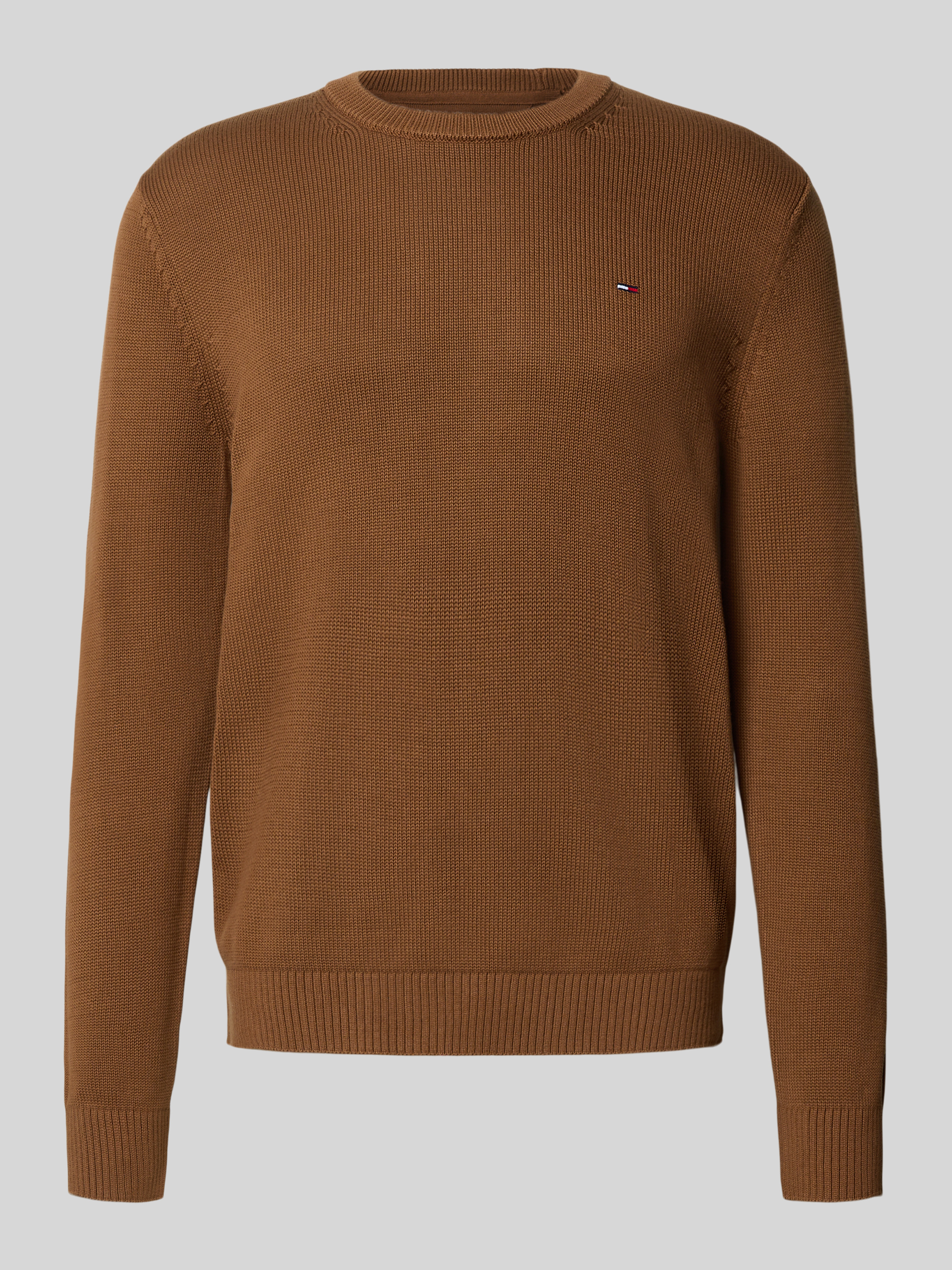 Regular fit gebreide pullover van zuiver katoen in middenbruin