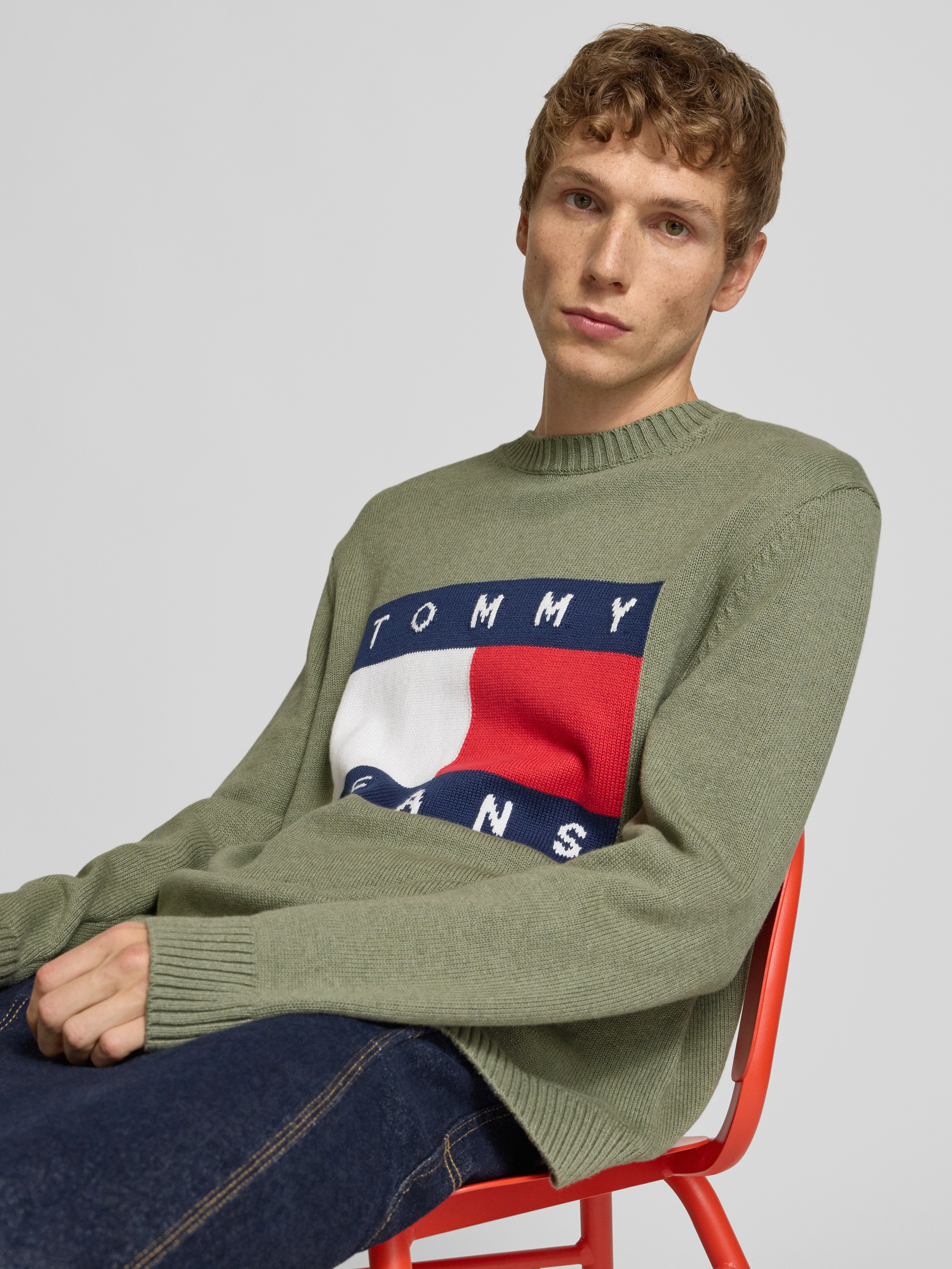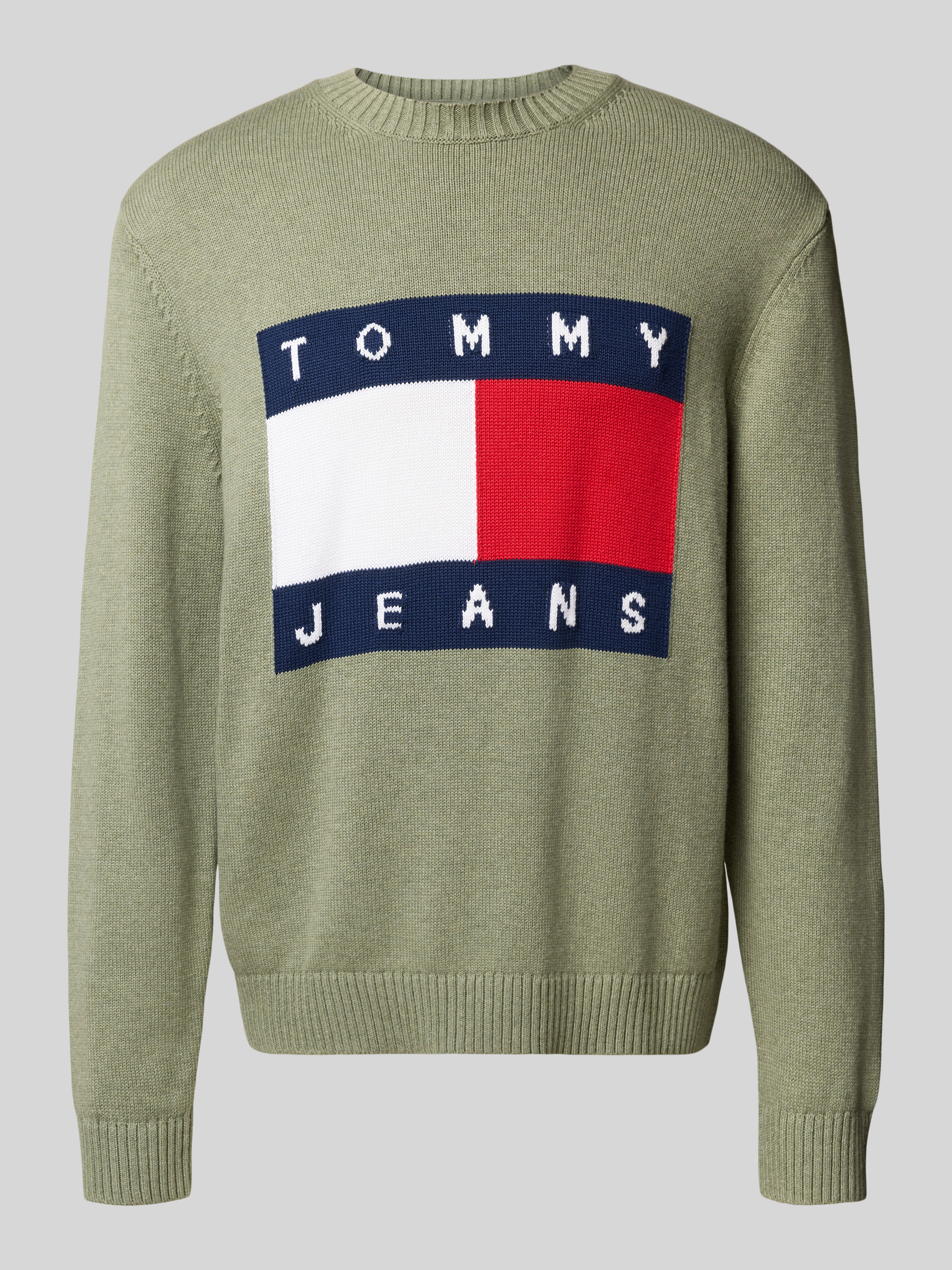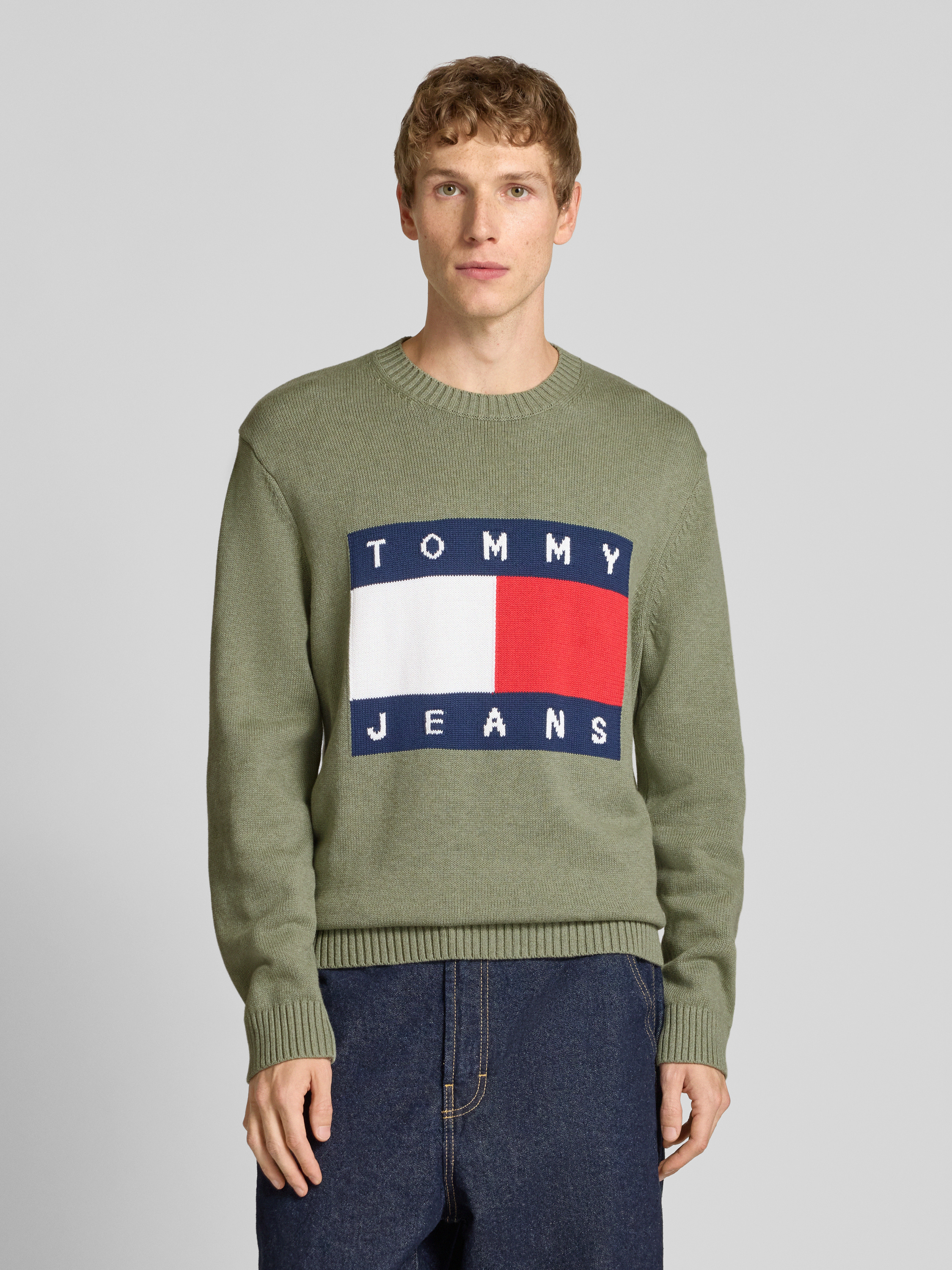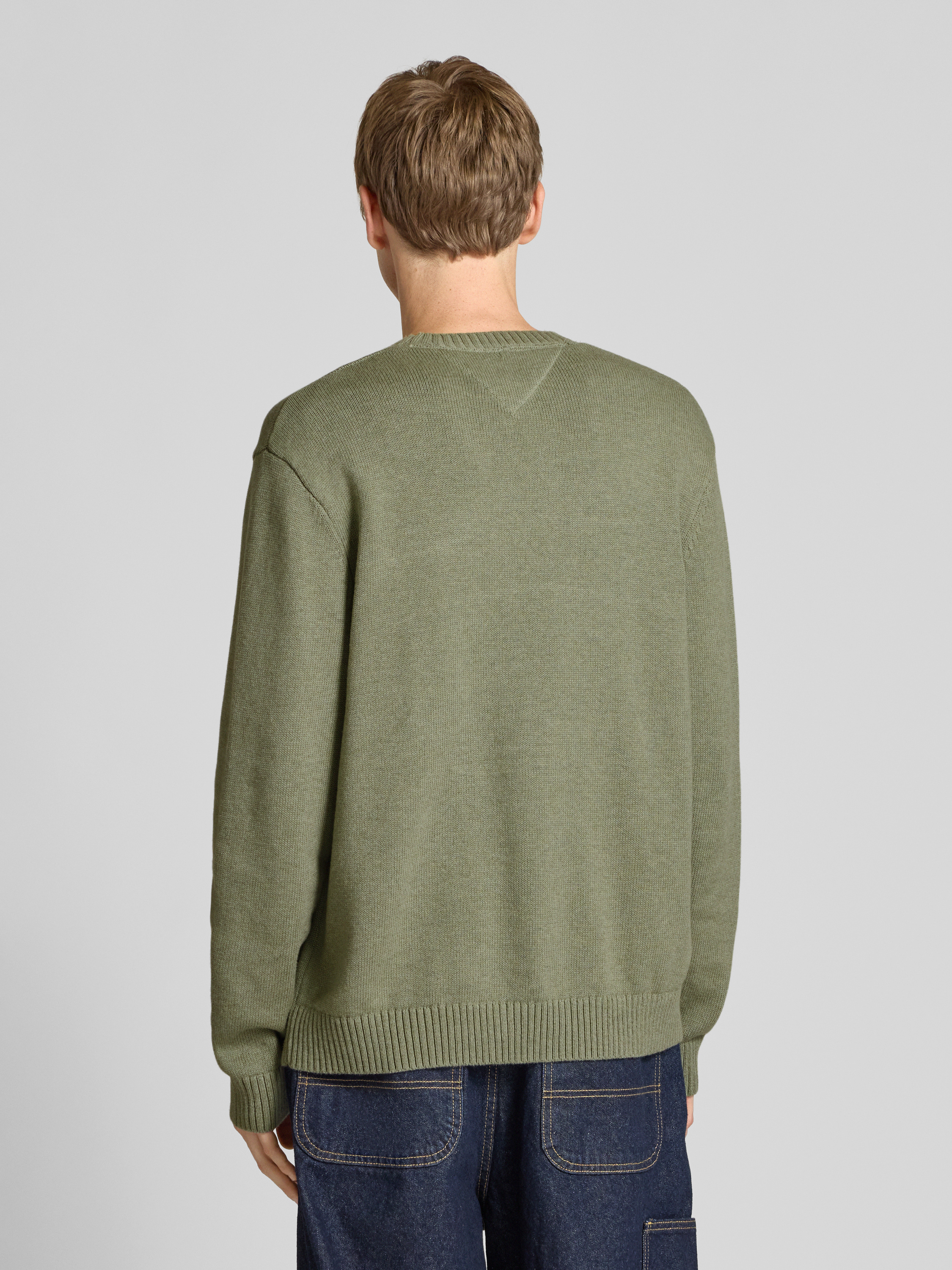 Regular fit gebreide pullover van zuiver katoen in olijfgroen gemêleerd